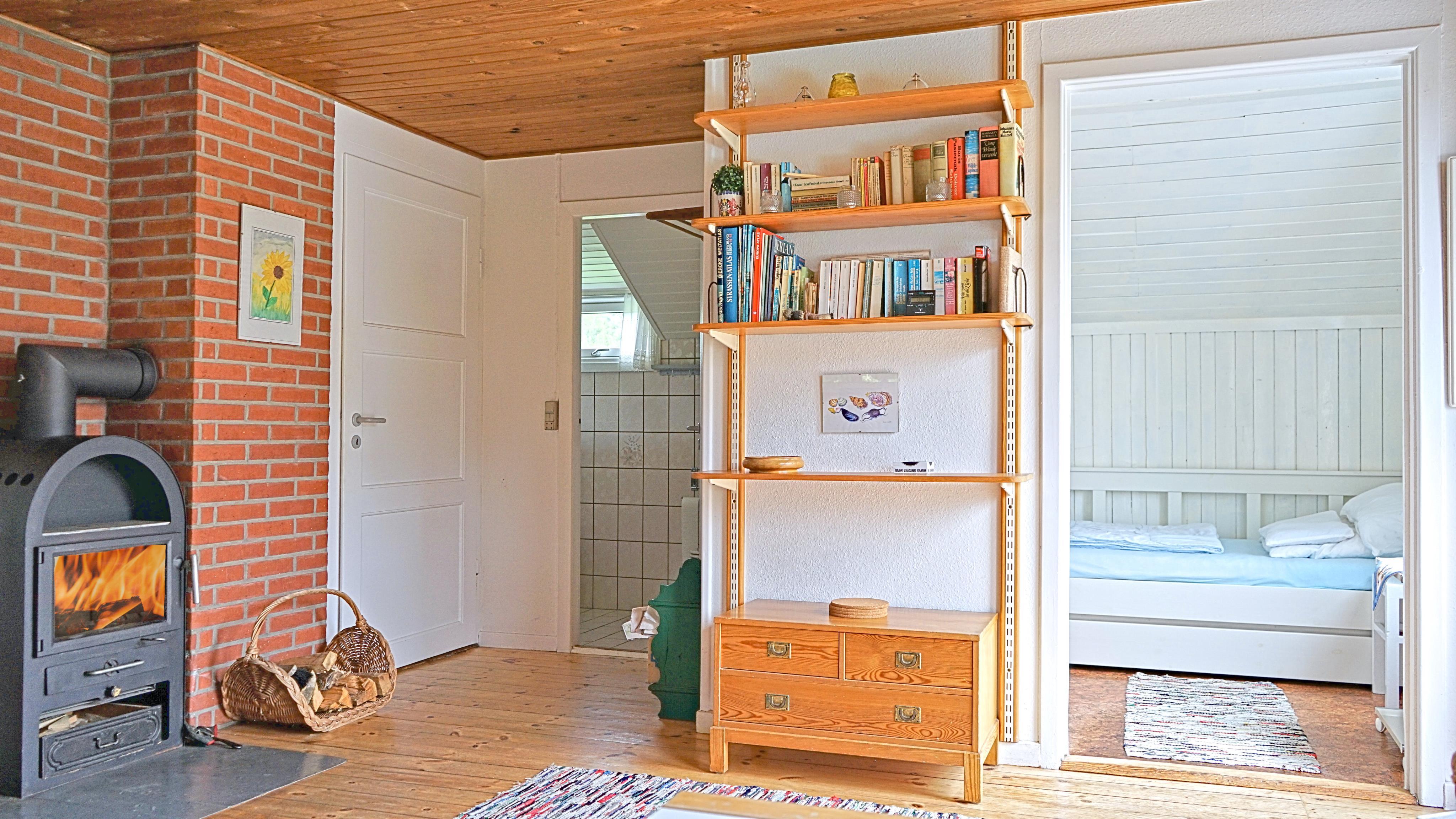 Charming cottage for 3 people, located on closed dune land at the end of a cul-de-sac in quiet surroundings, approx. 450 meters from the beach. The house contains: Charming living room with wood-burning stove, television with Danish channels (DR programs) and satellite dish. Radio and CD player. Wi-Fi. Separate kitchen with cooker with ceramic hobs, microwave and fridge with small cupboard freezer. Small cellar with utility room. From the kitchen you enter the bathroom, which appears with an open shower, sink, wc and open shelves for storing toiletries. The house has 2 bedrooms: DB + 1B. From the living room you step directly out onto a cozy terrace with good garden furniture. From the plot there is a staircase of 7 steps up to the terrace and the house. Only one small dog (30 cm) is allowed. Smoking is not allowed. Year of construction 1953, partially renovated in 2006.