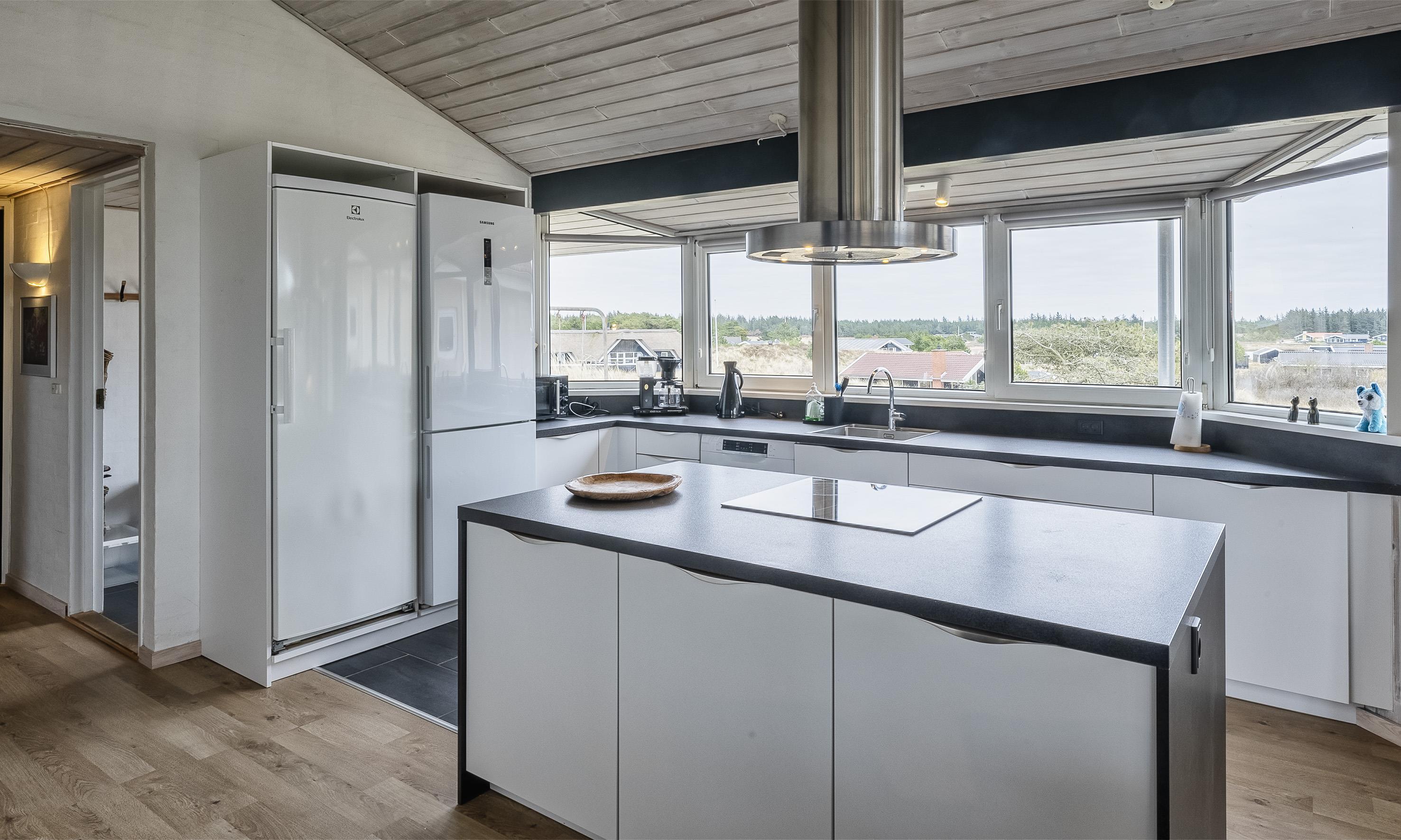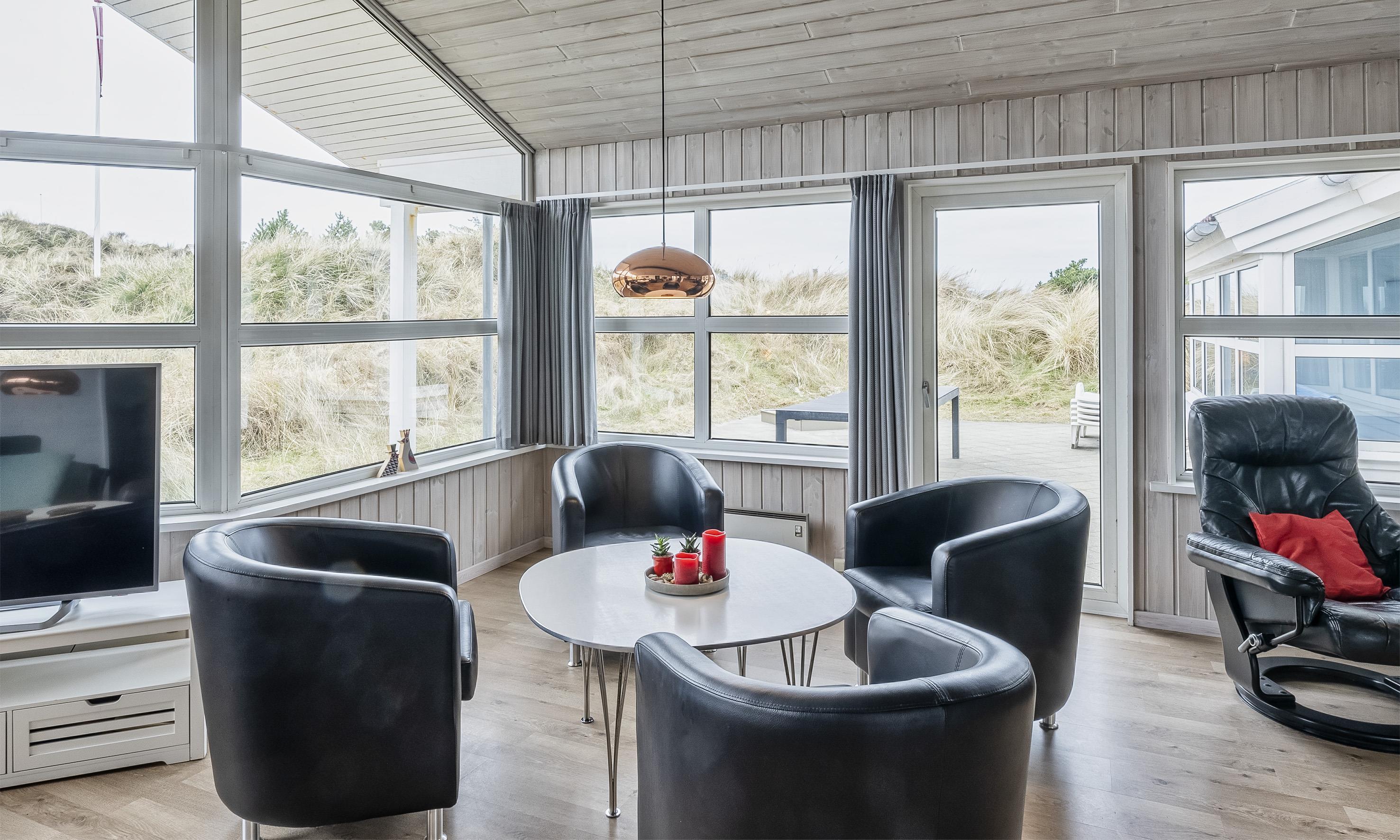 The holiday home offers a total area of 223 m2 with a delightful atmosphere both outdoors and indoors, providing high comfort for the entire family, both big and small, throughout the year. The house is approximately 700 meters from the beach and 200 meters from the lakes at Jafdalvej, with a lovely view.