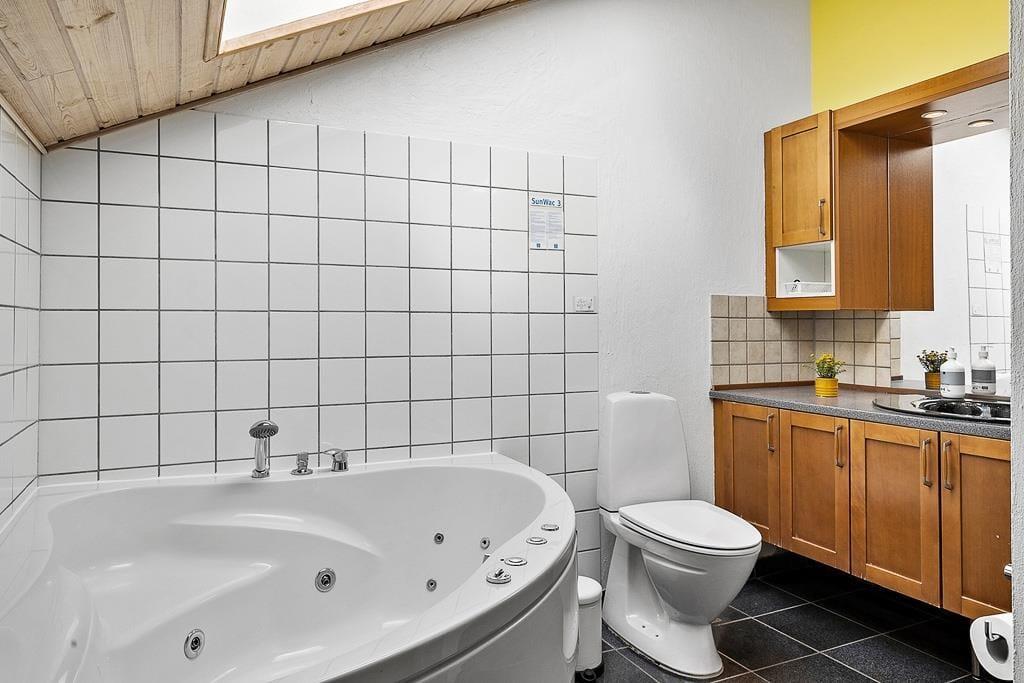 Auch draußen setzt sich das gute Urlaubsgefühl fort, denn das Haus bietet mehrere schöne Terrassenbereiche, die zum Leben im Freien einladen – ob in der Sonne oder im Schatten. Auf der südlich ausgerichteten, geschlossenen Terrasse kannst du windgeschützt zu Mittag essen, während Kinder und Hunde sicher und fröhlich um dich herum spielen. Die nordöstlich gelegene Terrasse bietet Morgensonne und ruhige Momente mit einer Tasse Kaffee und Vogelgezwitscher im Hintergrund. Wenn die Sonne hoch am Himmel steht, lockt die überdachte Terrasse mit angenehmem Schatten und bequemen Sonnenliegen – perfekt, um mit einem guten Buch abzuschalten oder die Gedanken schweifen zu lassen. Und natürlich gibt es reichlich Gelegenheit, lange Sommerabende mit Grill und Lachen zu genießen – egal, ob ihr den ganzen Tag draußen seid oder zwischen Sonne, Pool und drinnen wechselt.