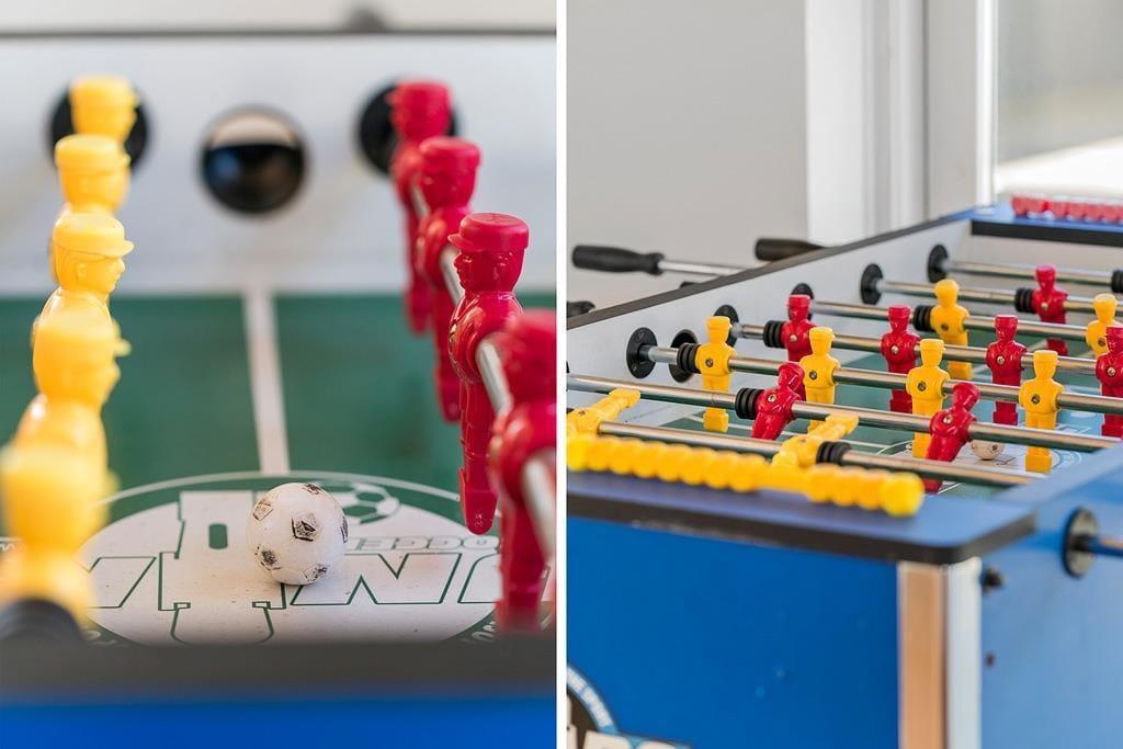 Hinter der klassischen Ferienhausfassade verbirgt sich ein einladendes und geräumiges Inneres, in dem Komfort und Gemütlichkeit Hand in Hand gehen. Schon beim Betreten spürt man, dass hier sowohl an Erholung als auch an Aktivitäten gedacht wurde – allen voran im Poolbereich, wo du den Tag mit einem erfrischenden Bad beginnen und ihn in der wohltuenden Wärme der Sauna ausklingen lassen kannst. Wenn die Kleinen genug geplanscht haben, könnt ihr euch im separaten Aktivitätsraum treffen, in dem Tischfußball, Fernseher und viel Platz für Spiel und Spaß auf euch warten. Das Haus verfügt über insgesamt drei Badezimmer, was den Aufenthalt mit mehreren Personen besonders angenehm macht – und die Küche ist nicht nur optisch ansprechend, sondern auch mit gutem Service ausgestattet und bietet Raum für gemeinsames Kochen. Mittelpunkt ist natürlich das Wohnzimmer, wo weiche Sofas, große Fenster und eine warme Atmosphäre zum Entspannen einladen.