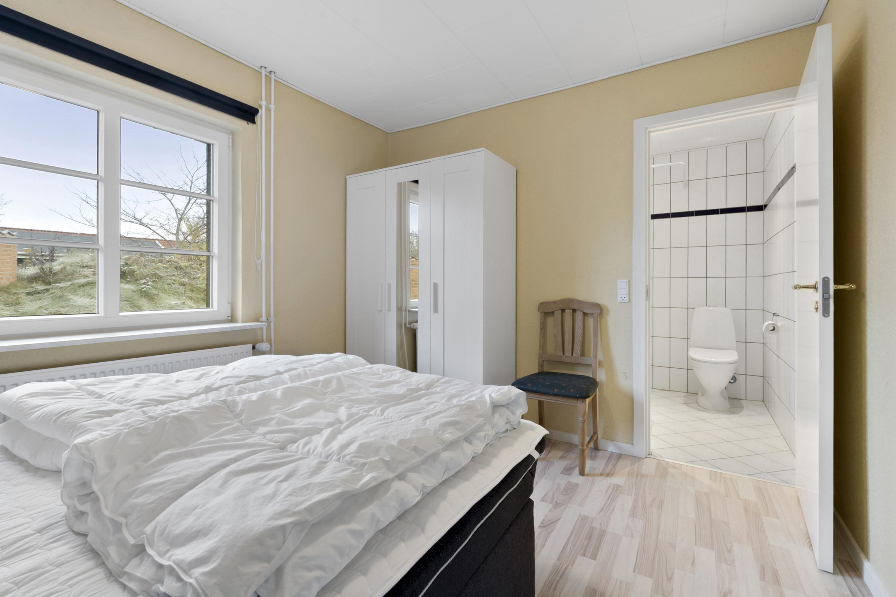 Take your entire family or some friends with you on an extended weekend or a holiday in Vejlby Fed near Middelfart. The holiday home Hovkrogvej is for 16 people and has a living room, furnished with a sofa arrangement and dining table, so everyone can eat and enjoy themselves together. The kitchen is open to the living room. In addition, there are 6 bedrooms with double beds and 2 bedrooms with 2 single beds. All rooms have their own bathroom and toilet. On rainy days, you can easily find time to go indoors with the house's table football and table tennis table or get warm in the house's sauna and 2-person spa. The house has a terrace with garden furniture and a barbecue. It is also possible to hold a larger event, as the house can be rented together with the neighboring house and a party tent. This can accommodate 40 overnight guests. Get more information at the agency.