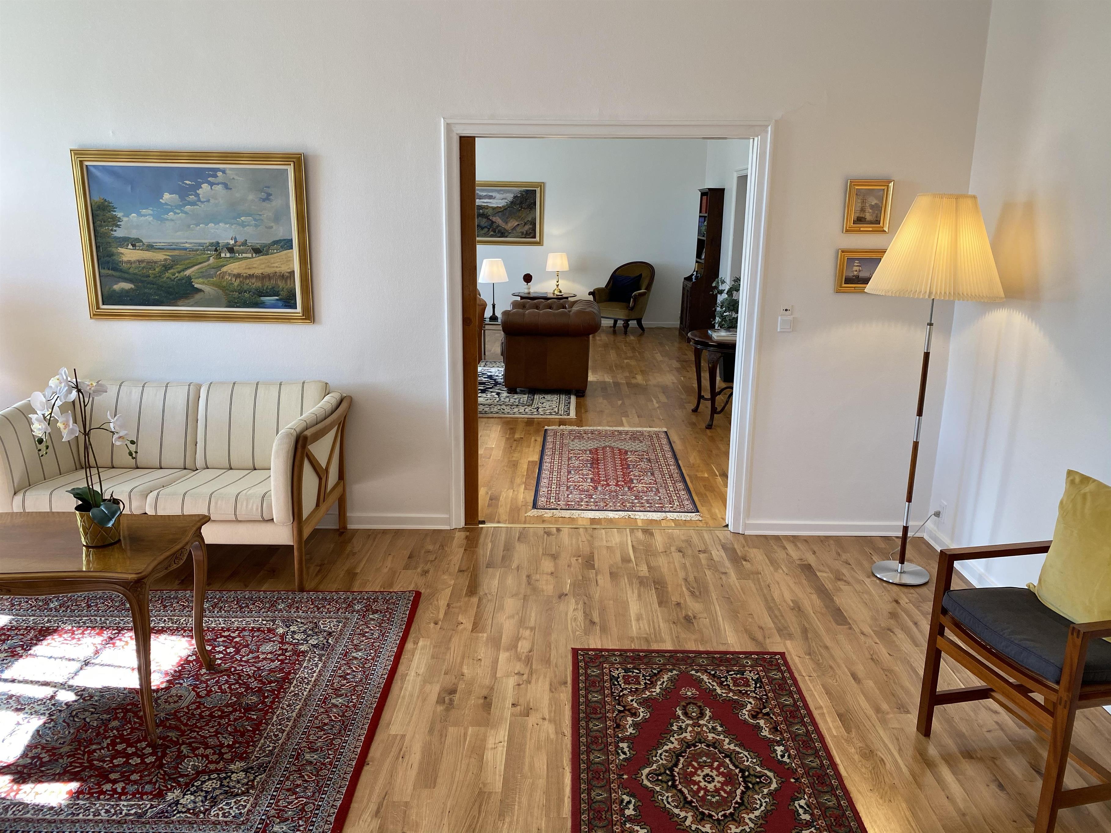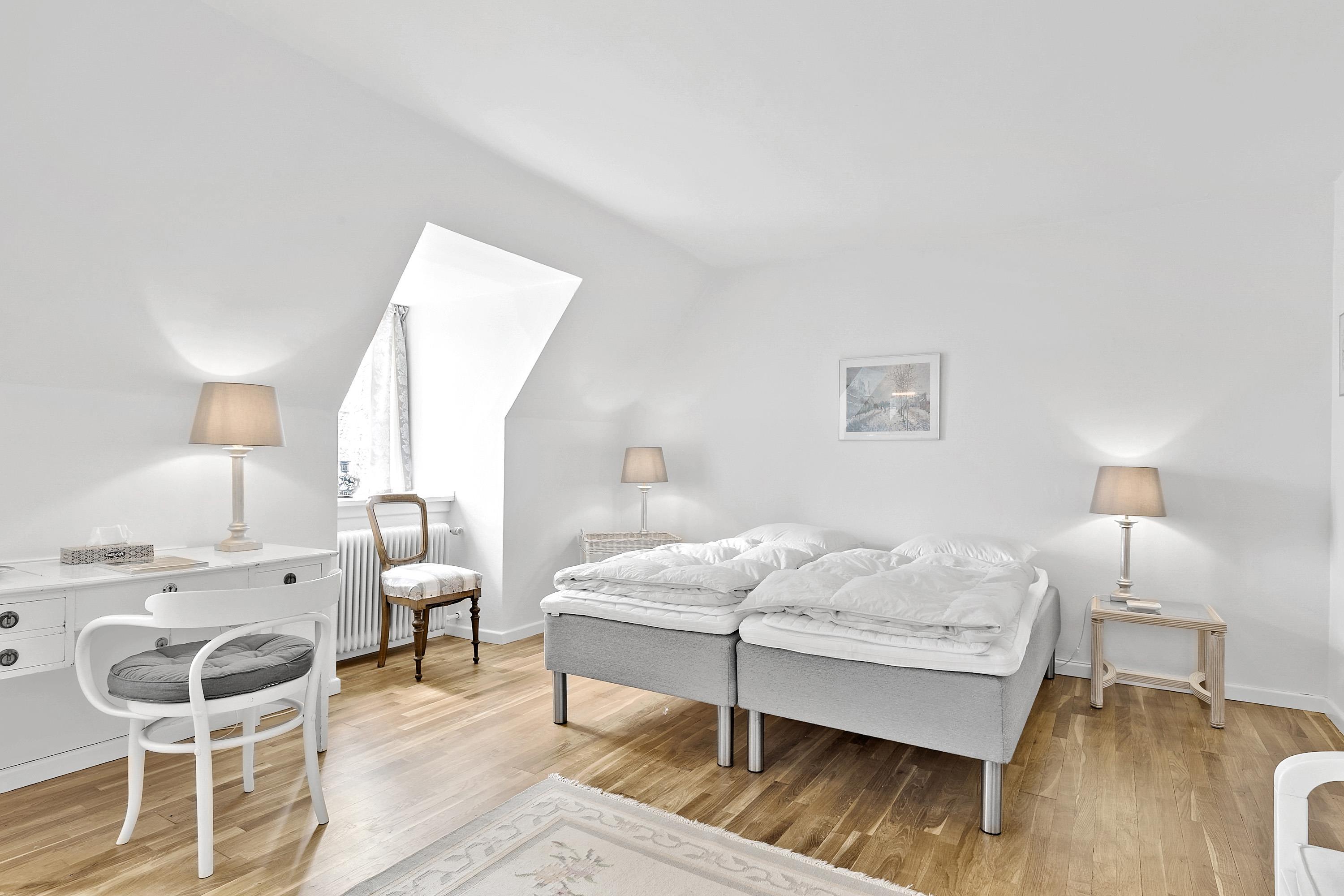 As part of Lerchenborg, the ”Inspector residence” is an independent residence with a garden with a large grassy area. The inspector residence has 7 rooms all located in the first floor. Five of these rooms has washbasins, bathrooms with toilet and shower in the hallway. In the Inspector House there is a separate kitchen with dishwasher and fridge with freezer. There is also a dining room and a living room with color TV.