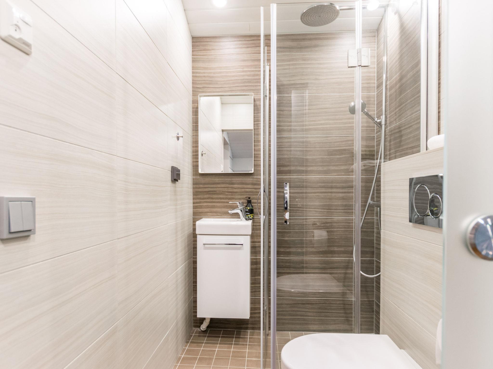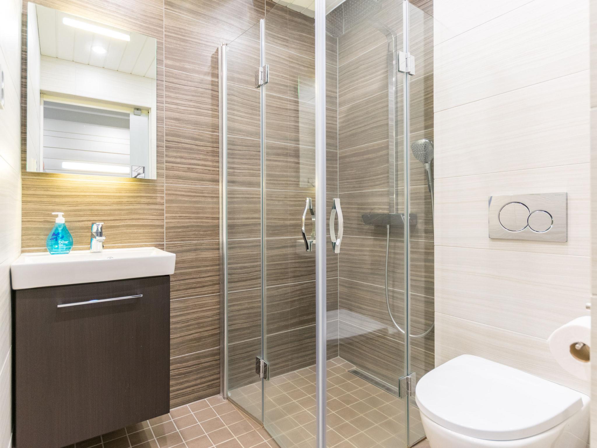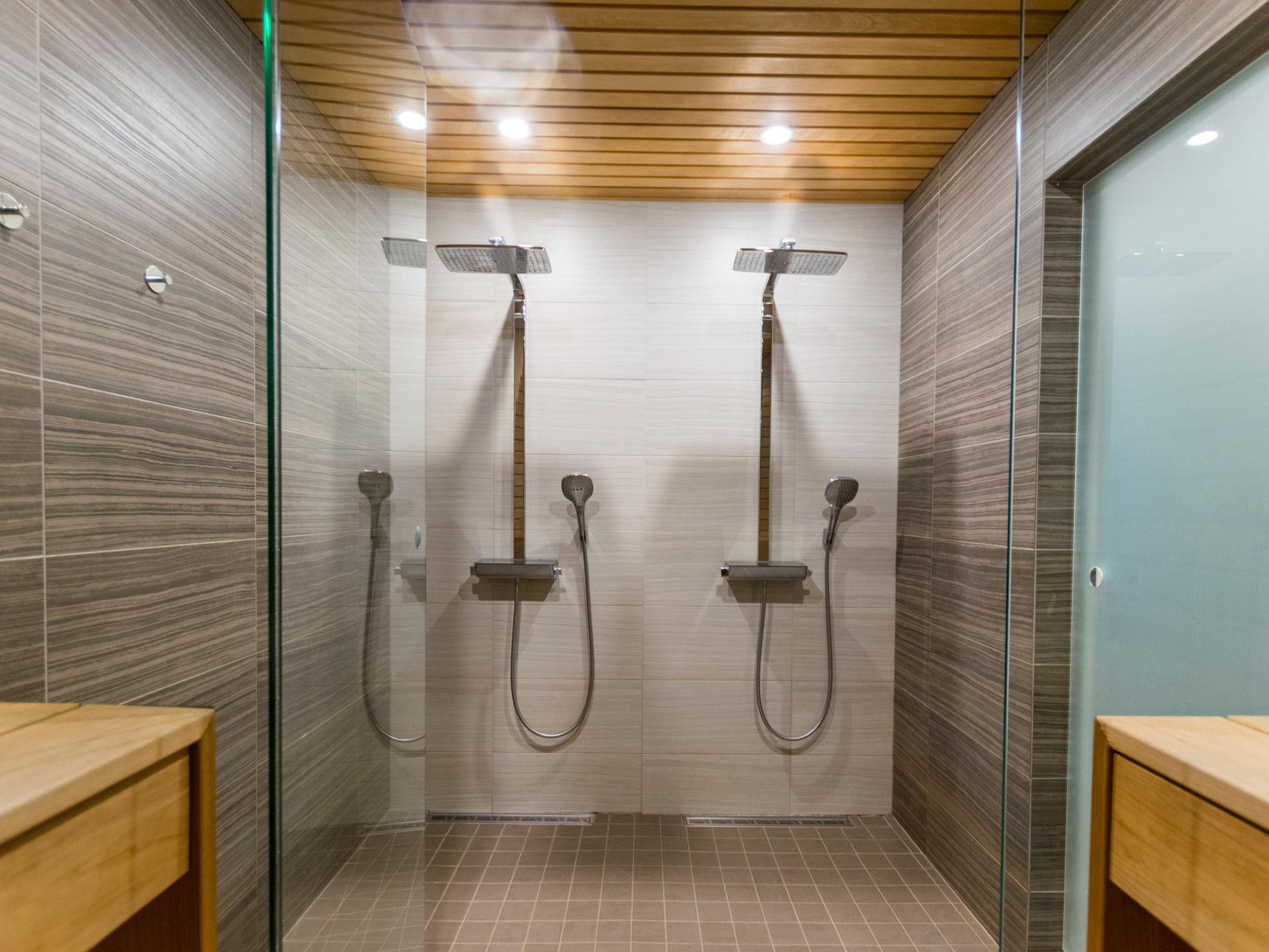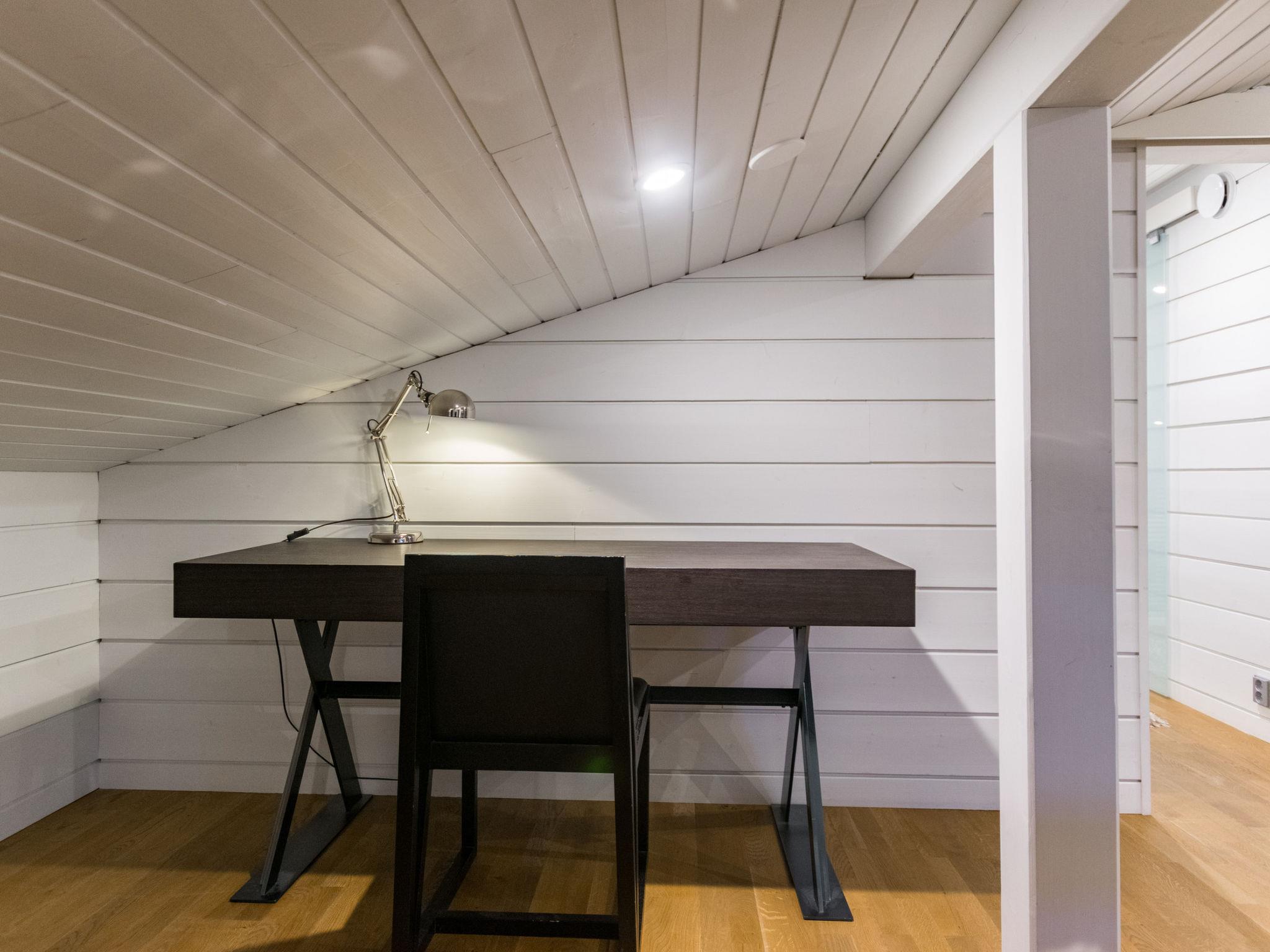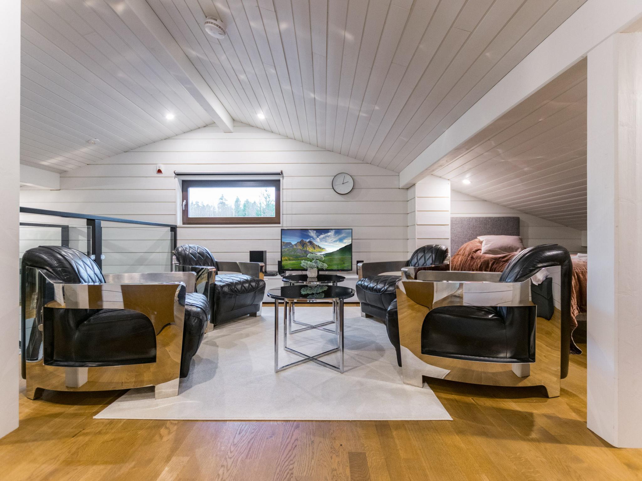 Upstairs bedroom 4: 2 x 80 cm beds, private toilet and shower. bedroom 5: 2 x 80 cm beds, private toilet and shower. In the upstairs lobby there are 2 90 cm wide beds. In the lobby there is another seating area with sofa furniture, TV and desk. The cottage has high-quality WiFi connection.
