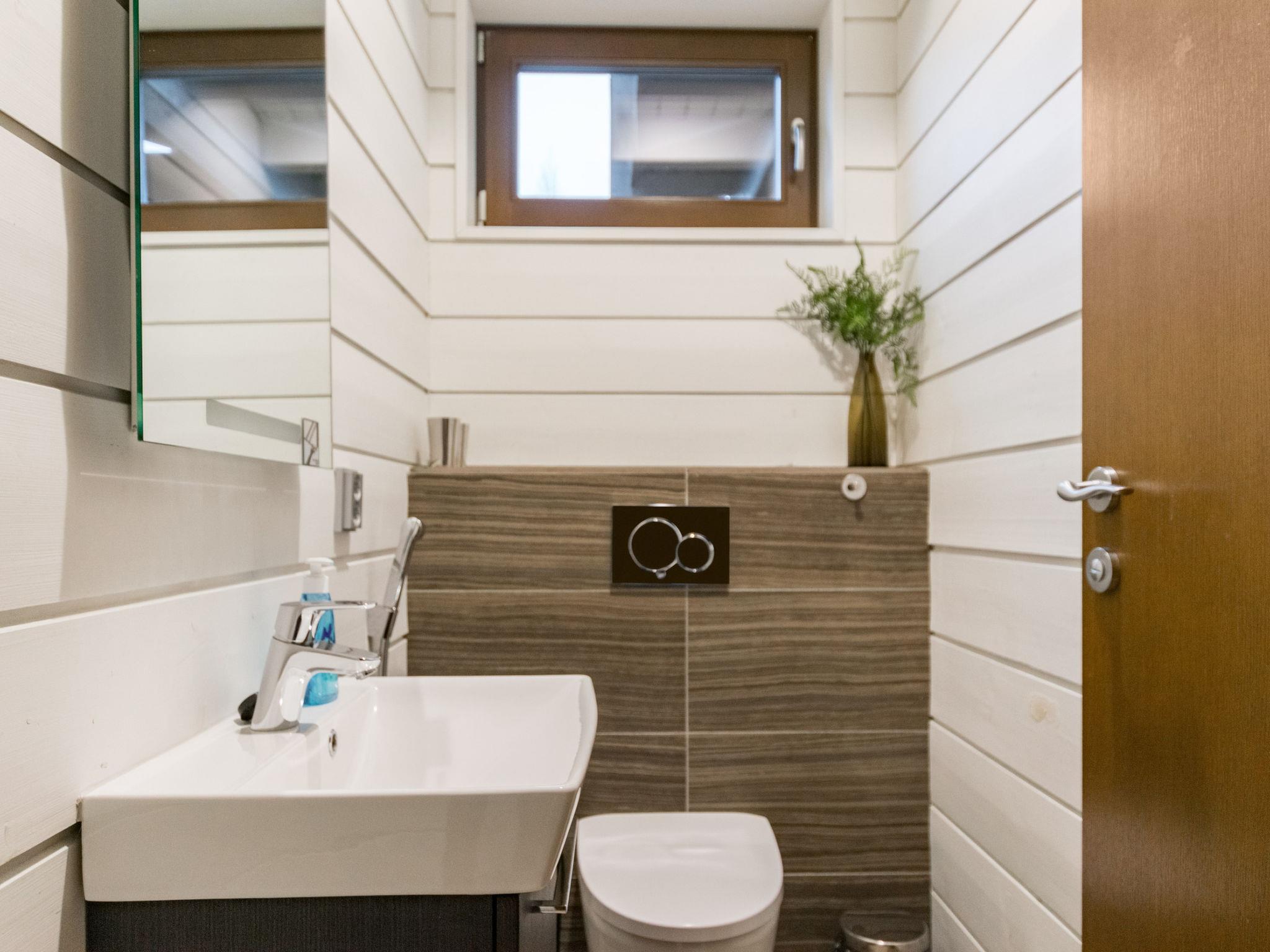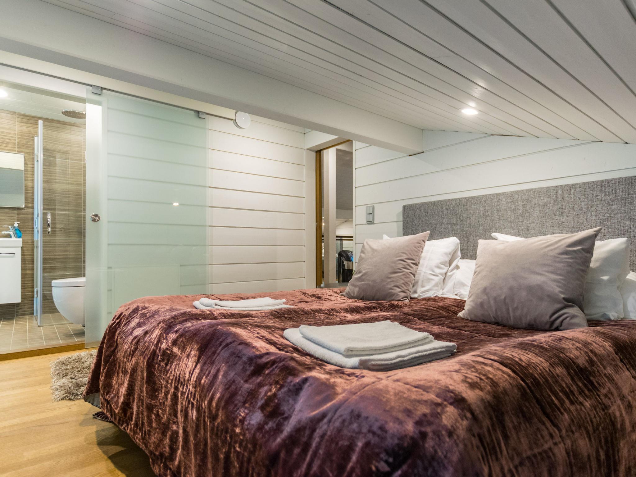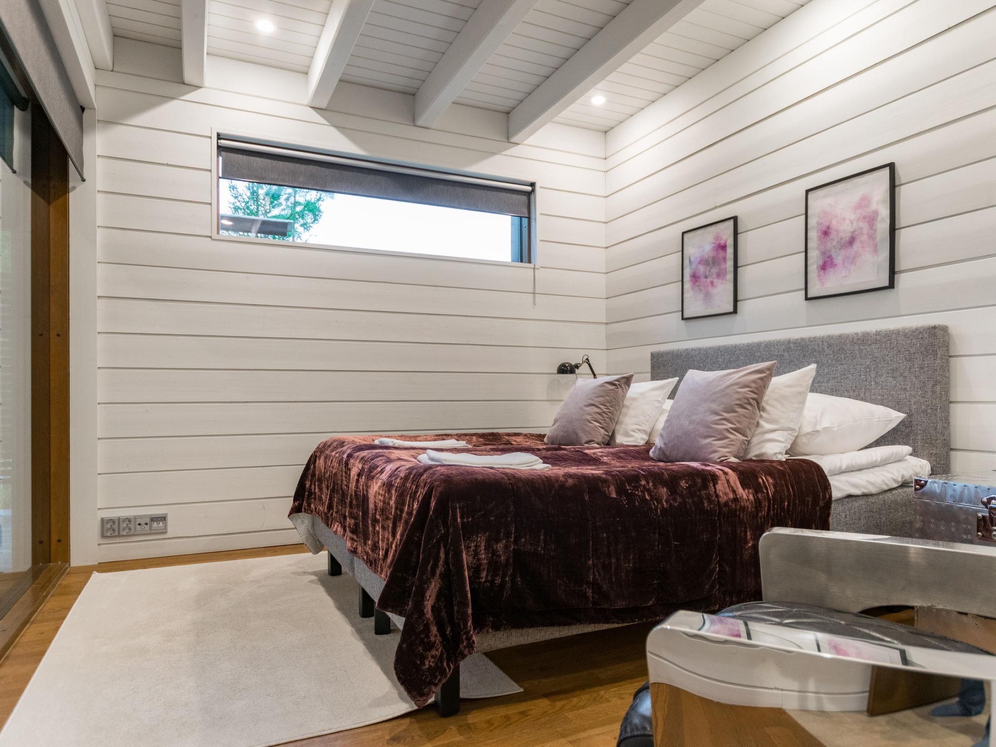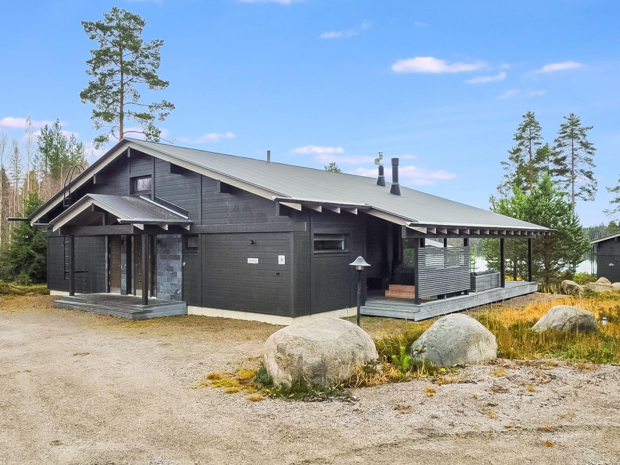 Wooden cottage built in 2015, spacious living room and kitchen-living room. Living room with a light fireplace and sofa furniture. The kitchen is well equipped. Downstairs there is a sauna with an electrically heated stove. The cottage has five bedrooms, three of which have their own bedroom-specific toilet. Five toilets in total. Downstairs bedrooms: bedroom 1: 2 x 90 cm beds, private toilet and shower. bedroom 2: 2 x 80 cm beds and private toilet. bedroom 3: 140 cm wide double bed.