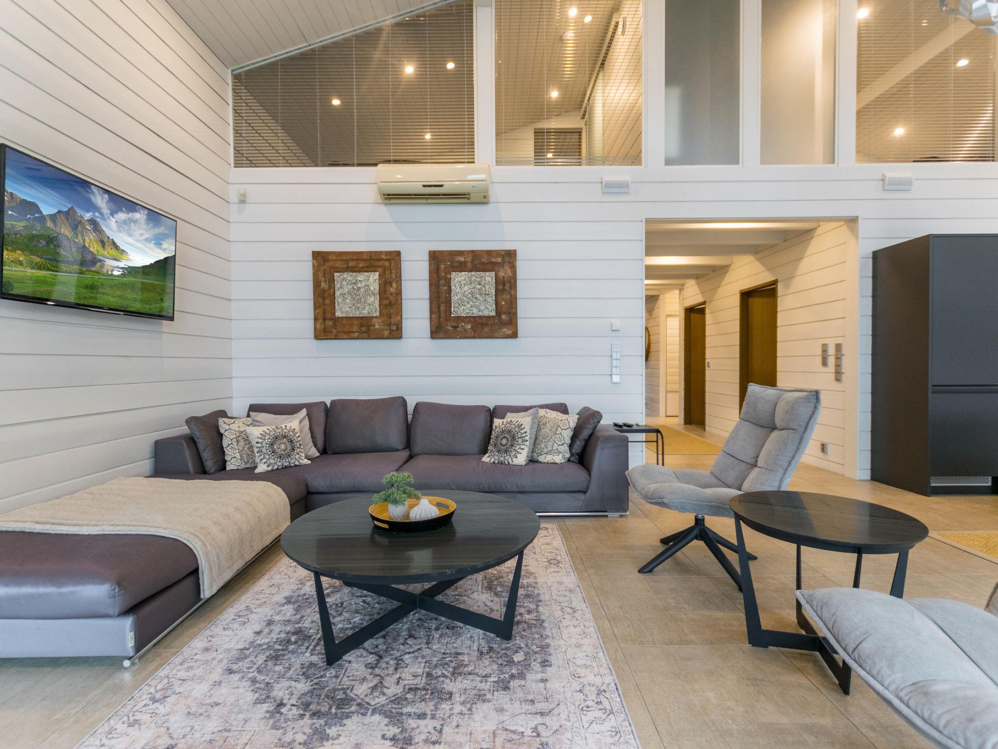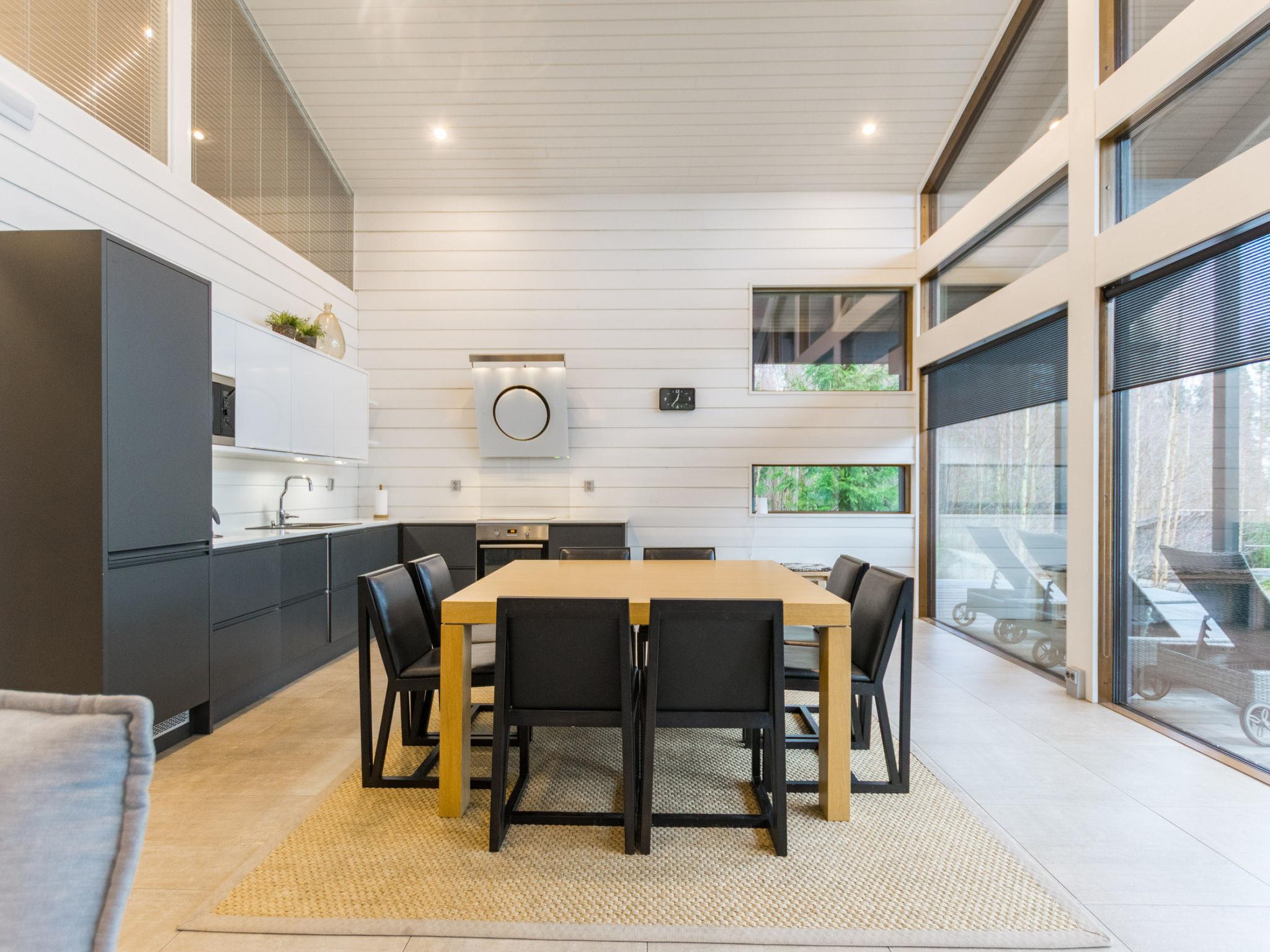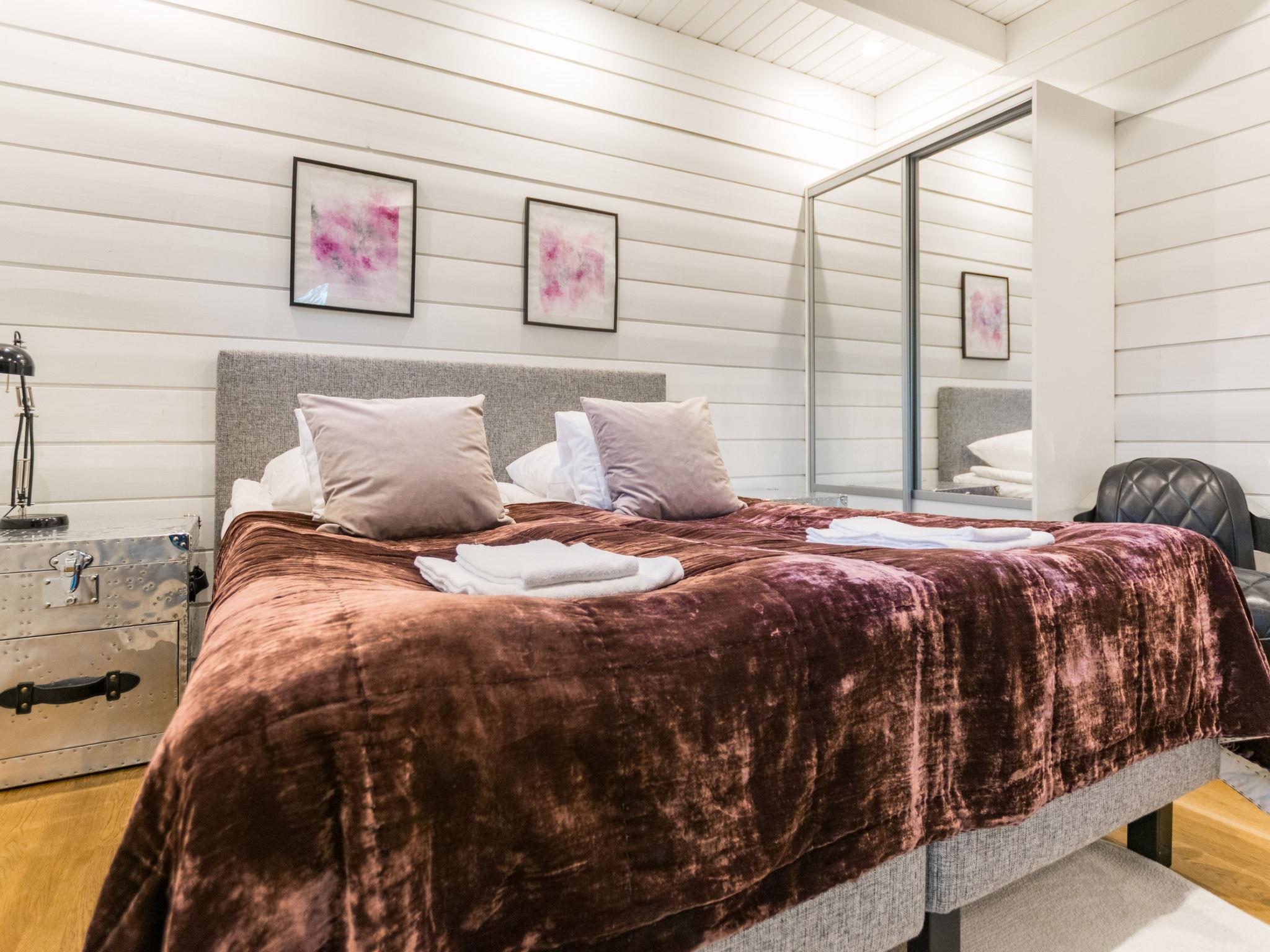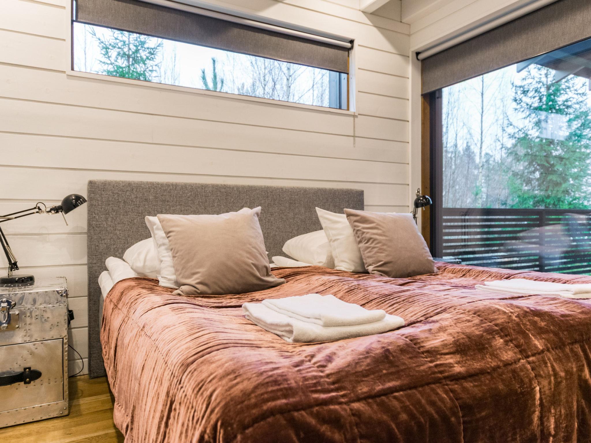 Wooden cottage built in 2015, spacious living room and kitchen-living room. Living room with a light fireplace and sofa furniture. The kitchen is well equipped. Downstairs there is a sauna with an electrically heated stove. The cottage has five bedrooms, three of which have their own bedroom-specific toilet. Five toilets in total. Downstairs bedrooms: bedroom 1: 2 x 90 cm beds, private toilet and shower. bedroom 2: 2 x 80 cm beds and private toilet. bedroom 3: 140 cm wide double bed.
