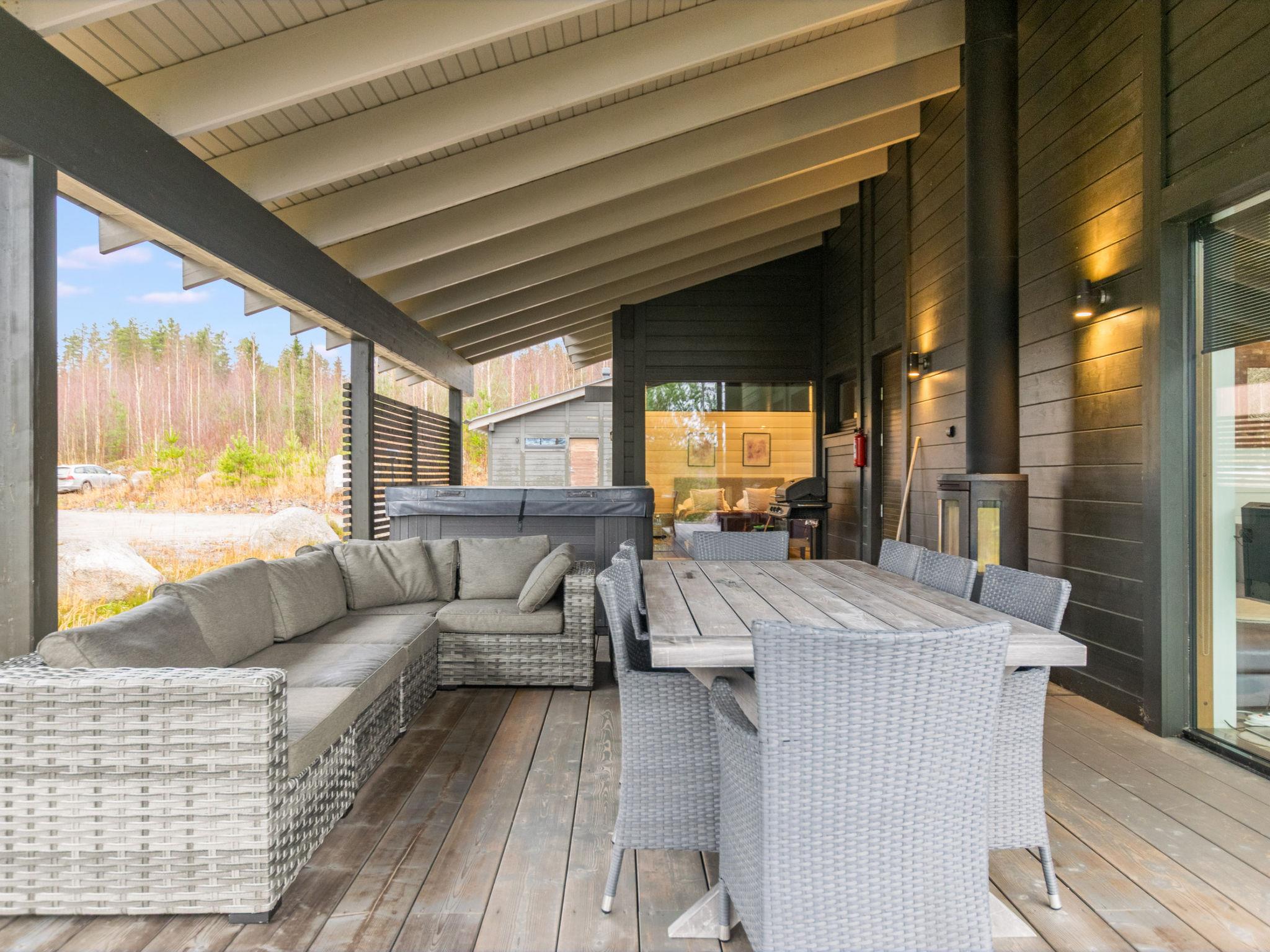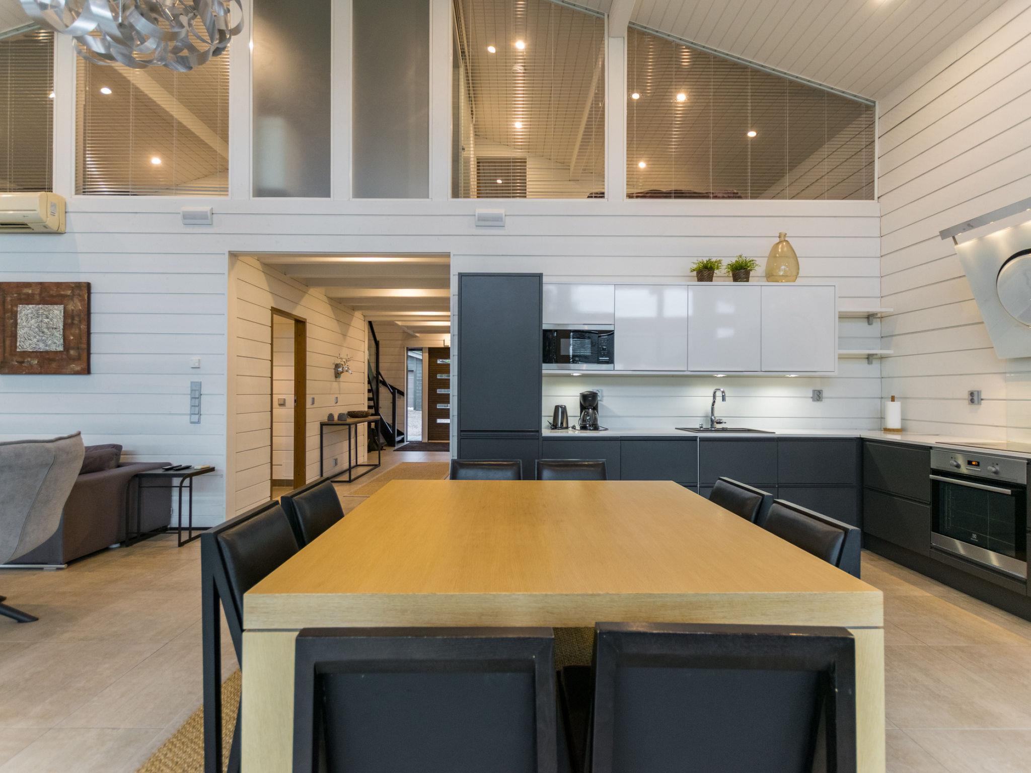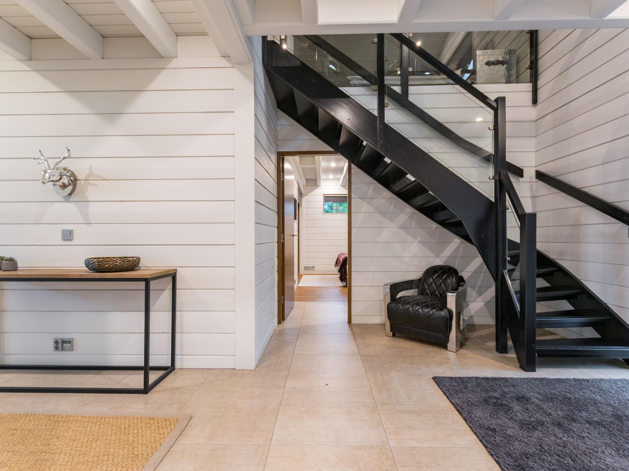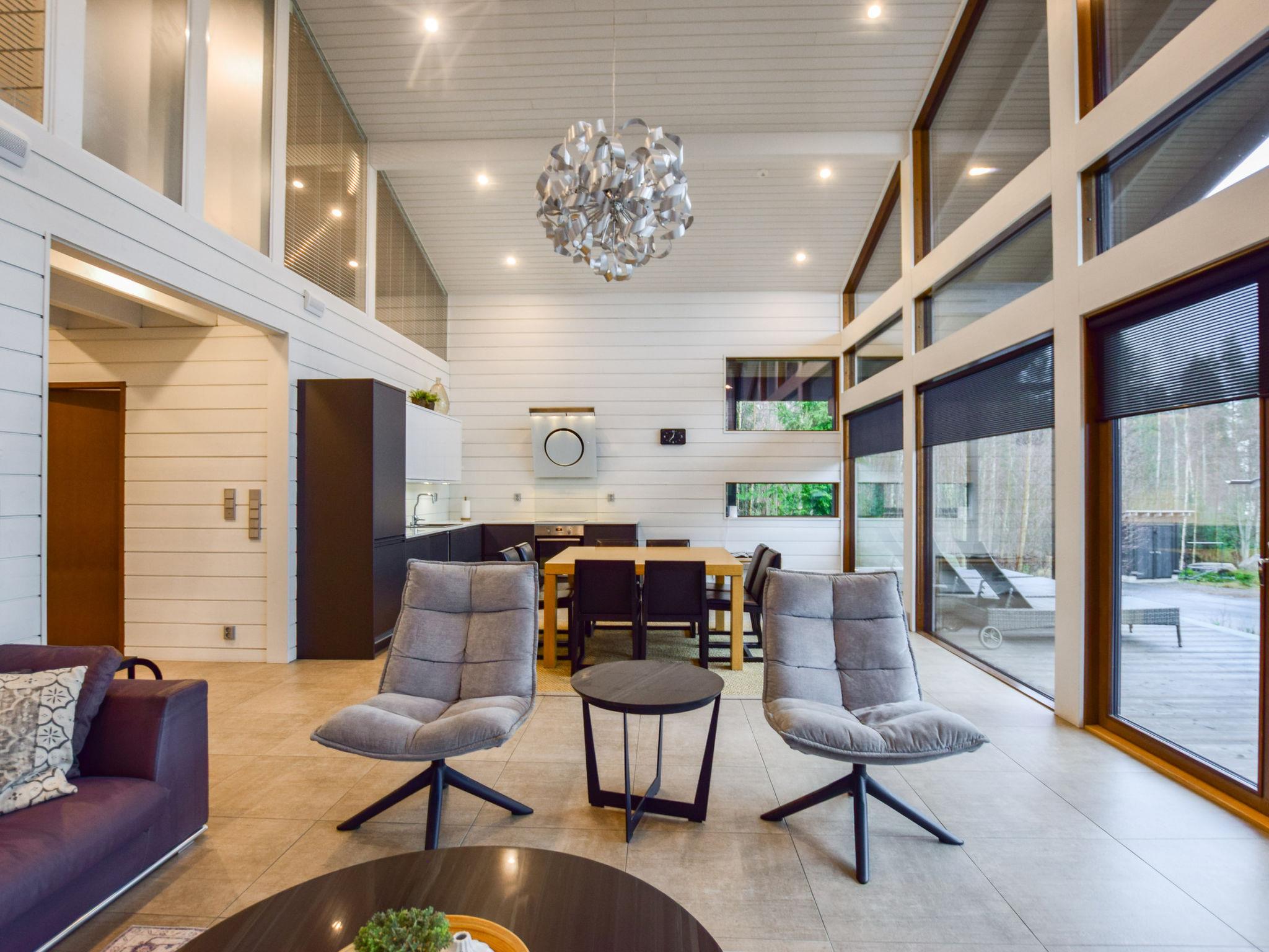 Wooden cottage built in 2015, spacious living room and kitchen-living room. Living room with a light fireplace and sofa furniture. The kitchen is well equipped. Downstairs there is a sauna with an electrically heated stove. The cottage has five bedrooms, three of which have their own bedroom-specific toilet. Five toilets in total. Downstairs bedrooms: bedroom 1: 2 x 90 cm beds, private toilet and shower. bedroom 2: 2 x 80 cm beds and private toilet. bedroom 3: 140 cm wide double bed.