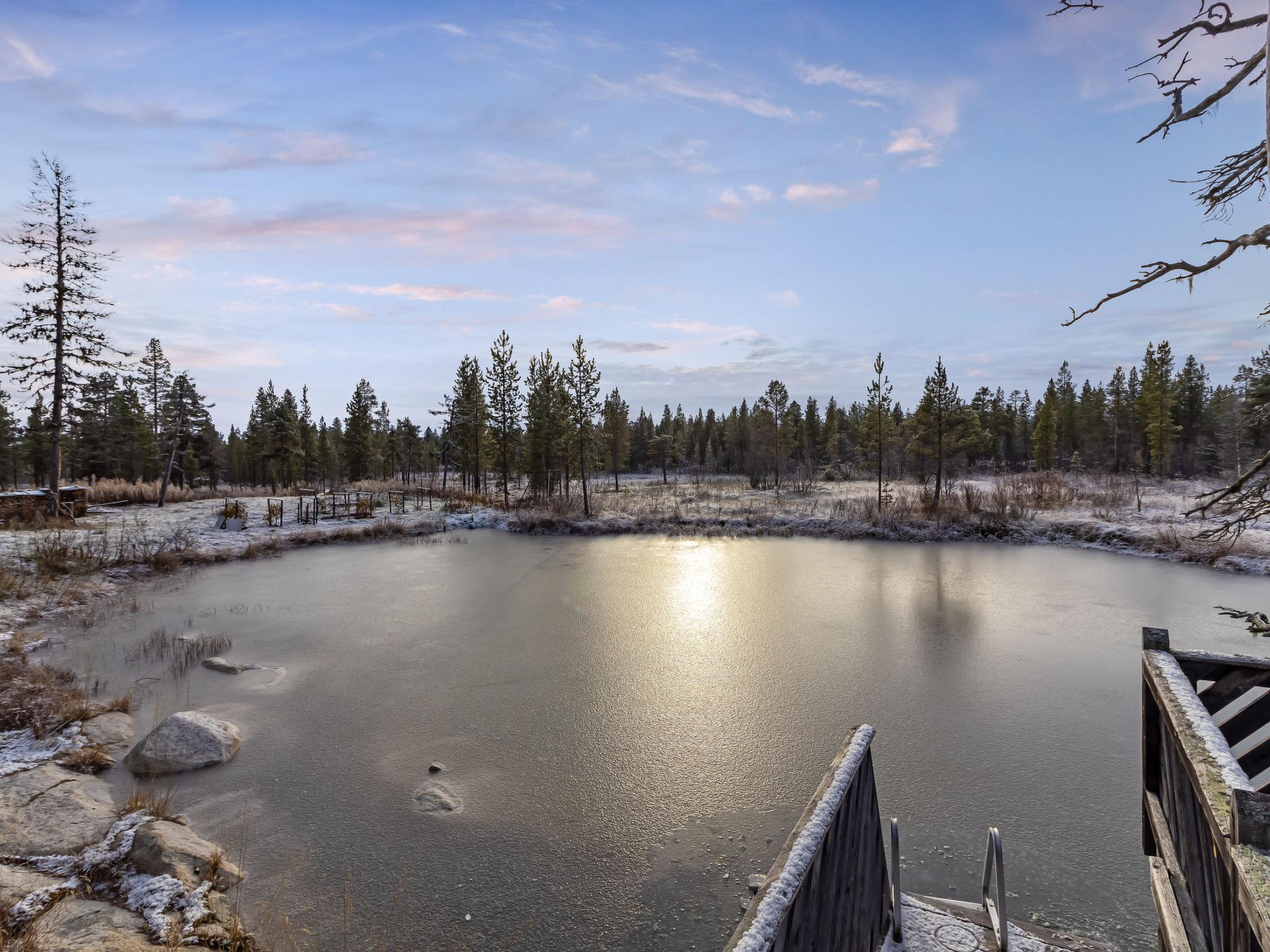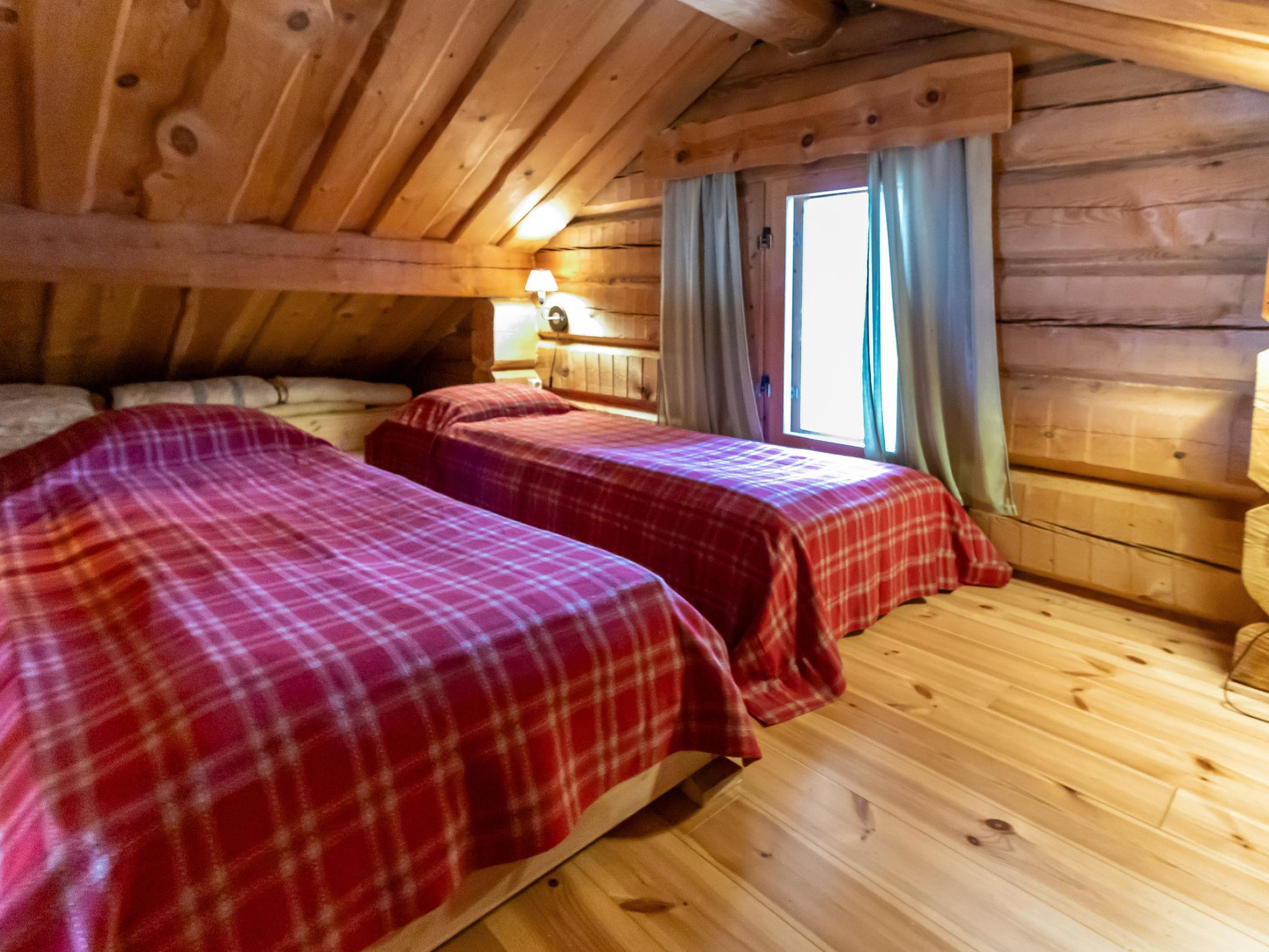 305 km north of Rovaniemi, River Ounasjoki 400 m (path to river bank/shore), own boat and 2 canoes. Log cottage 1993, living room/kitchen, small bedroom with double bed (width 120 cm), sleeping loft 3 beds, sauna (electric stove), washroom, separate WC, heated glazed veranda.