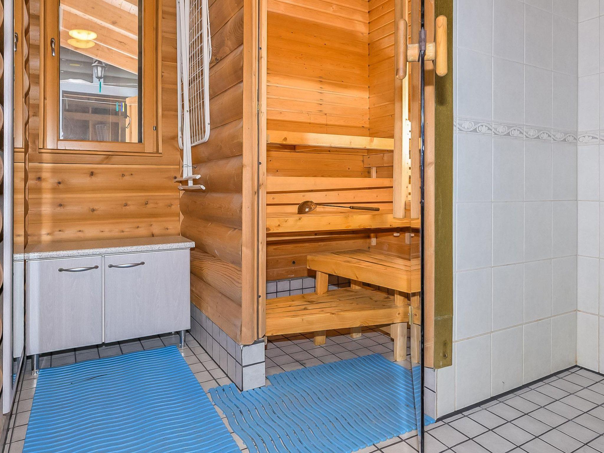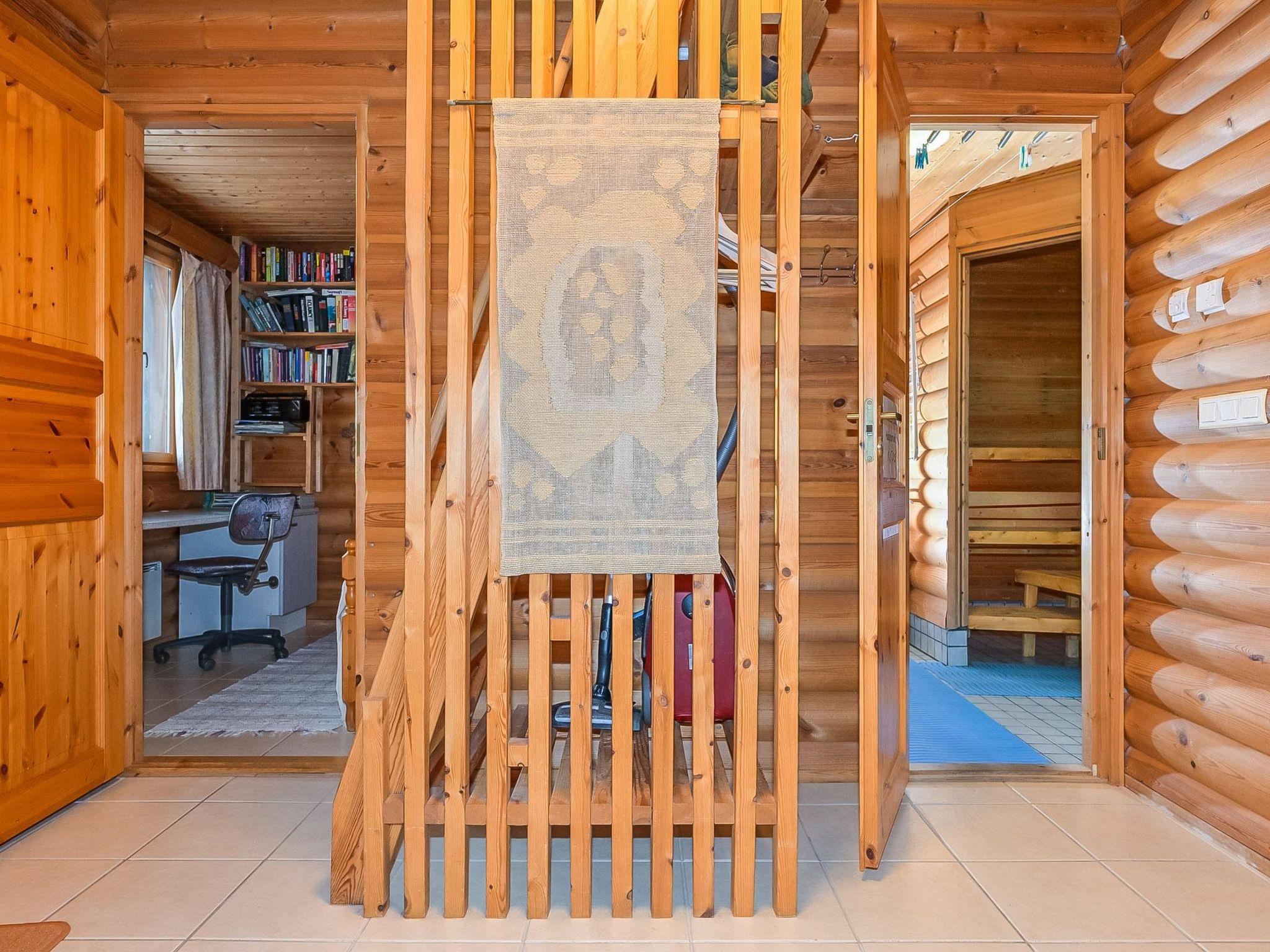 Round log cabin, built in 2006. Sofabed in the living room/kitchen (218 x 140 cm), bunk bed in the bedroom (lower bed is 160 x 200 cm wide, upper bed is 100 x200 cm wide), separate bed and spreadable sofa and 4 mattresses in the loft, steep stairs to the loft. Sauna, washroom and separate WC. Storage.