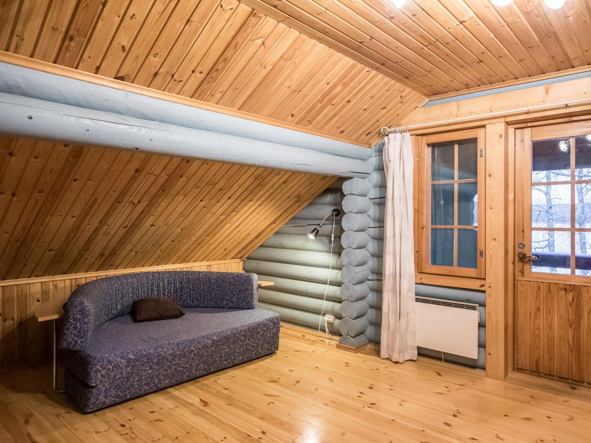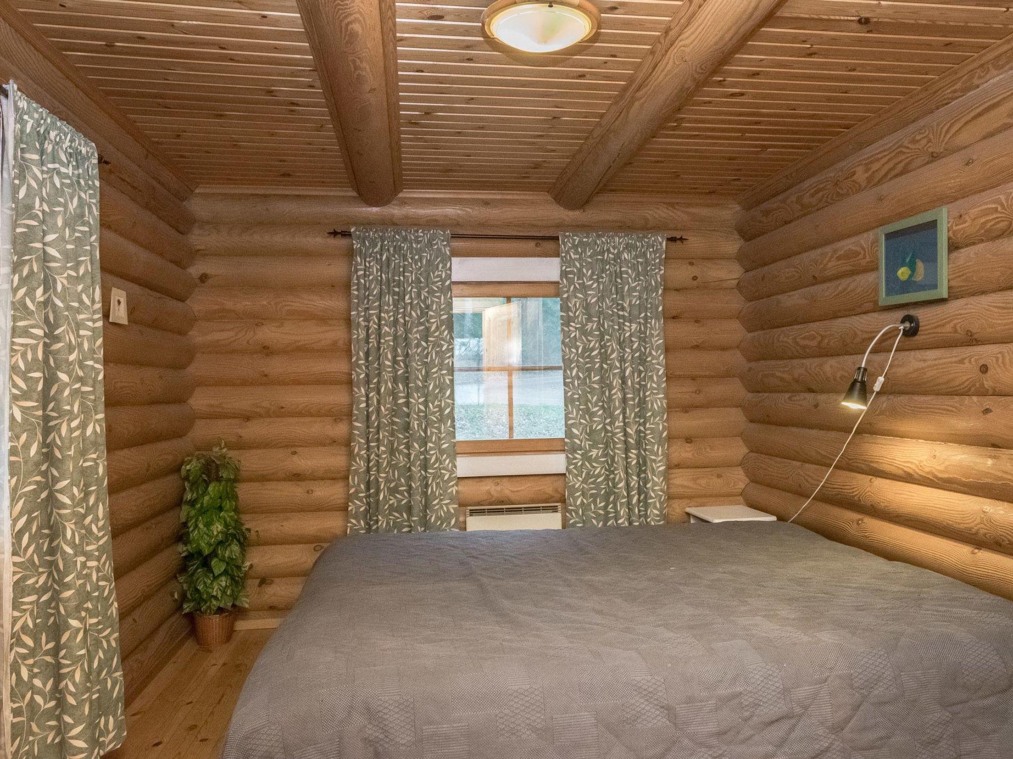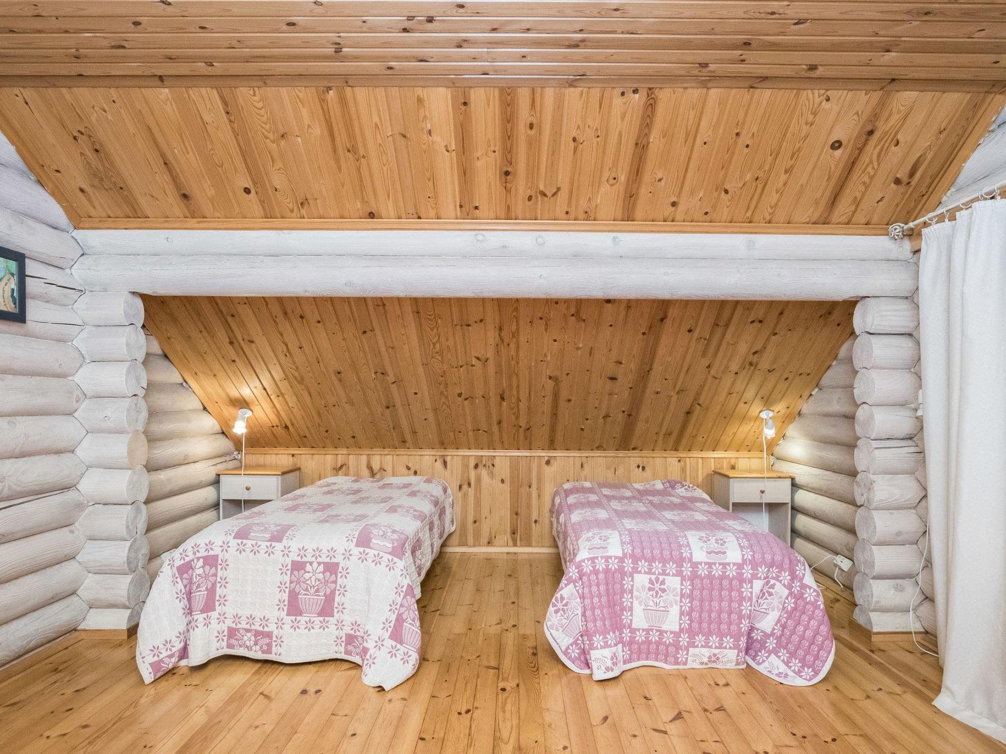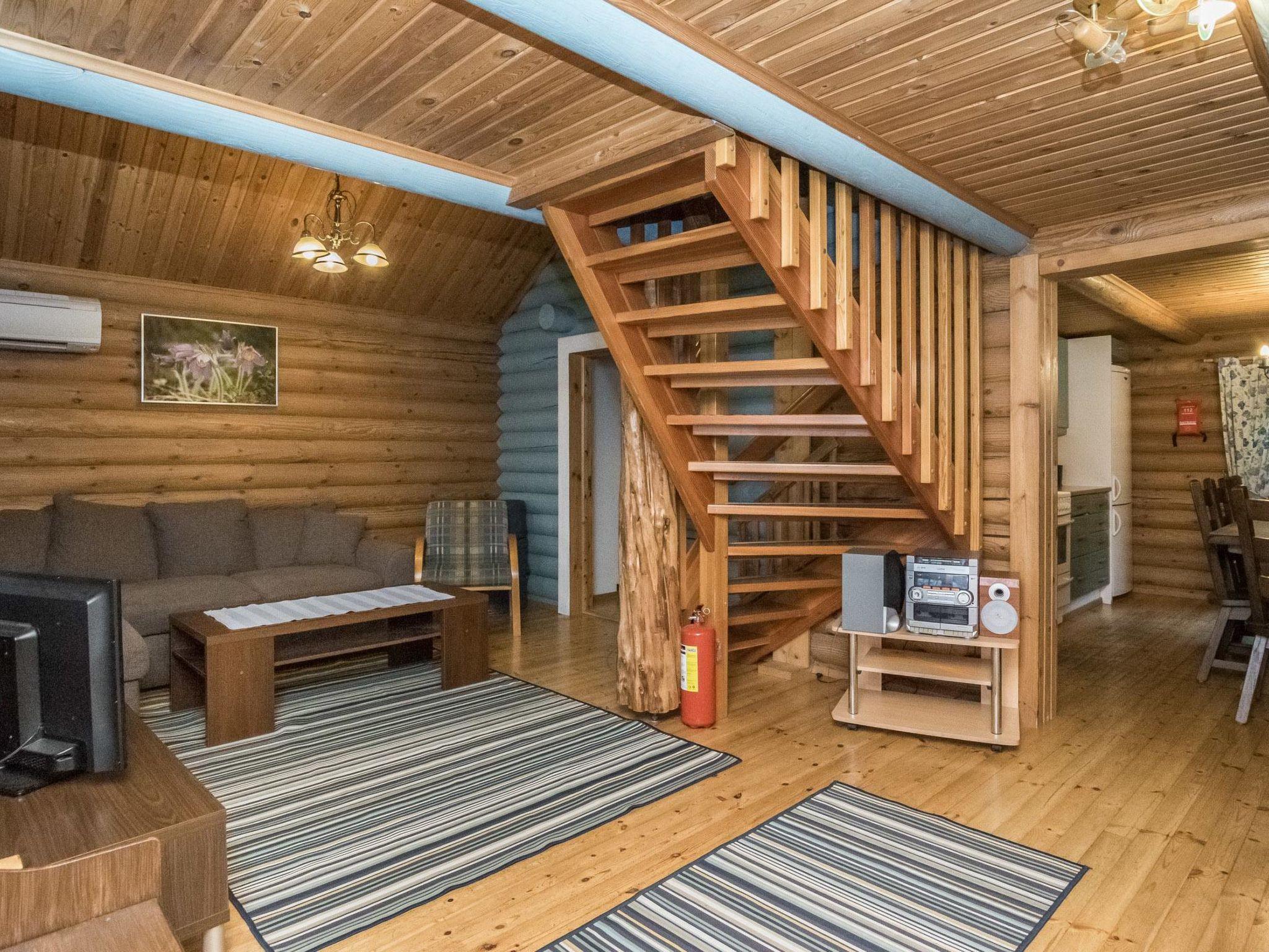 Two-storey log cabin 1999, kitchen, living room with sofa bed, 2 bedrooms with 2 beds in each, upstairs bedroom with 4 beds, sleeping loft with spreadable sofa bed, wood-heated sauna, washroom (WC and shower), covered porch, balcony.