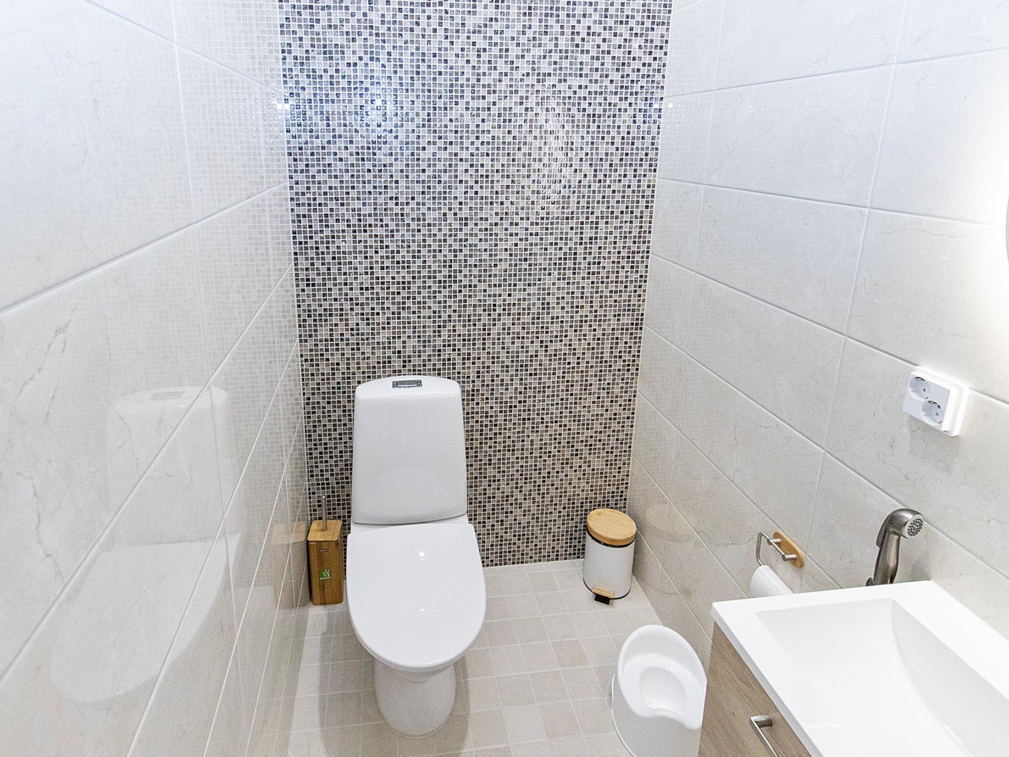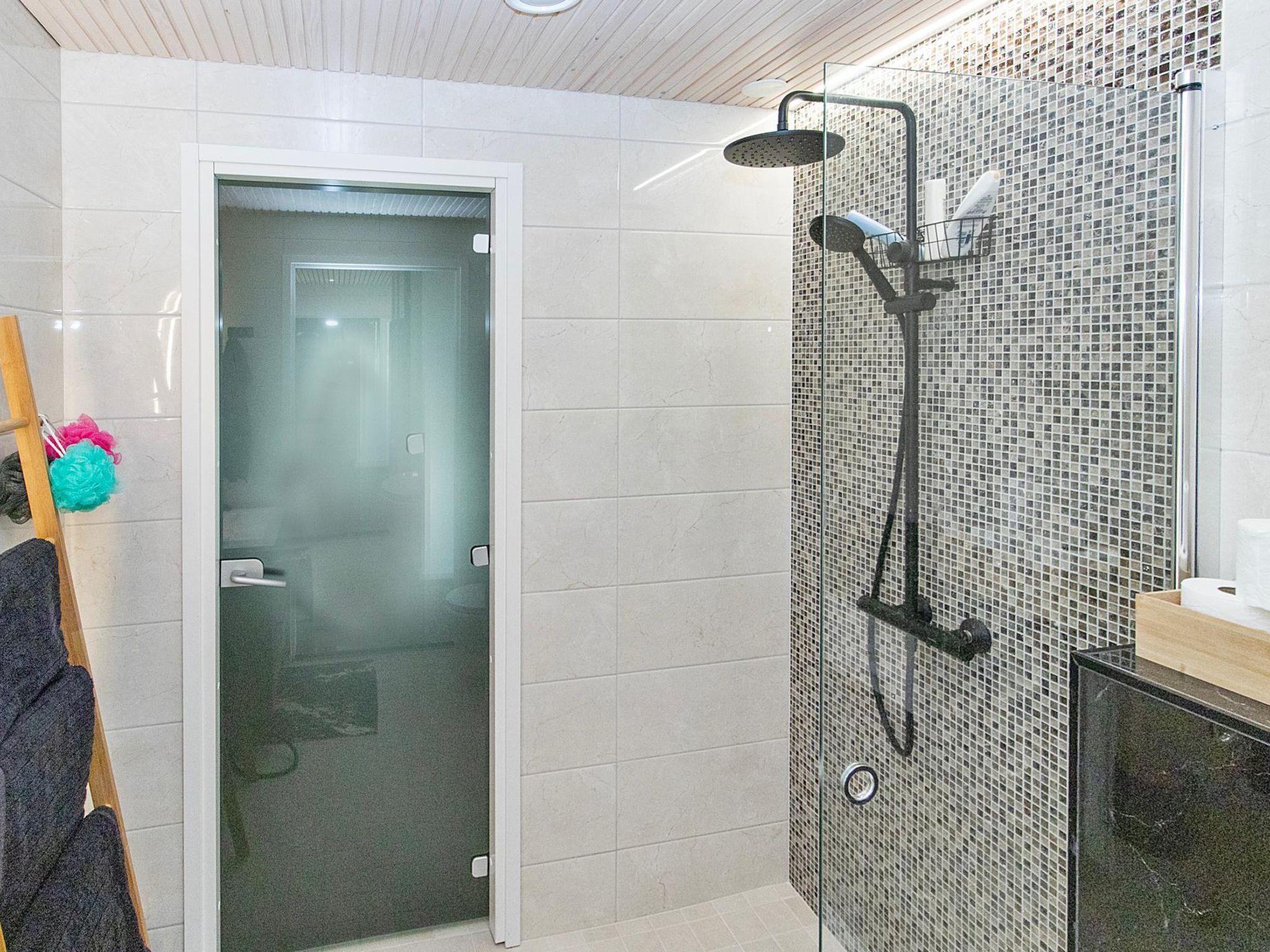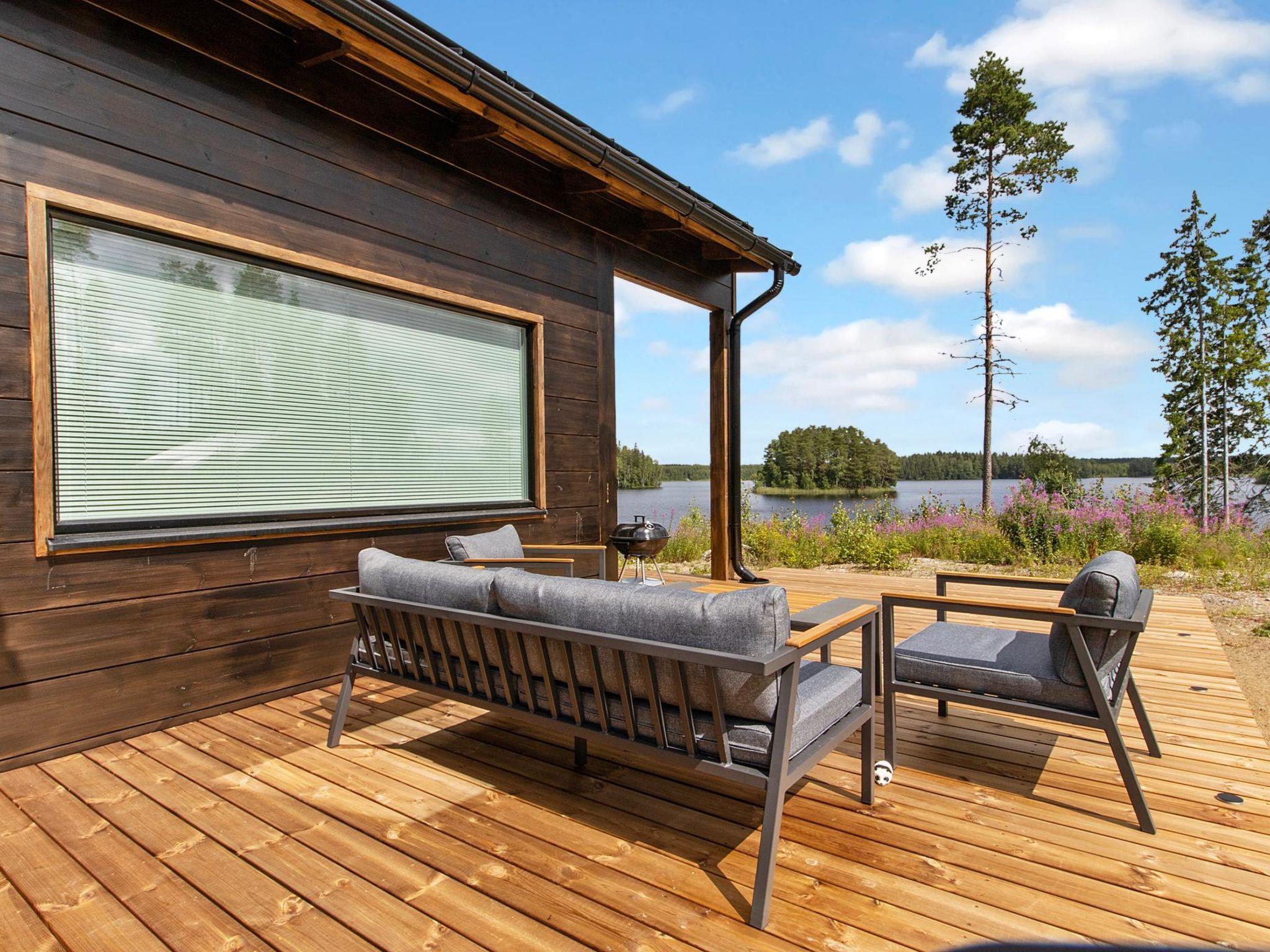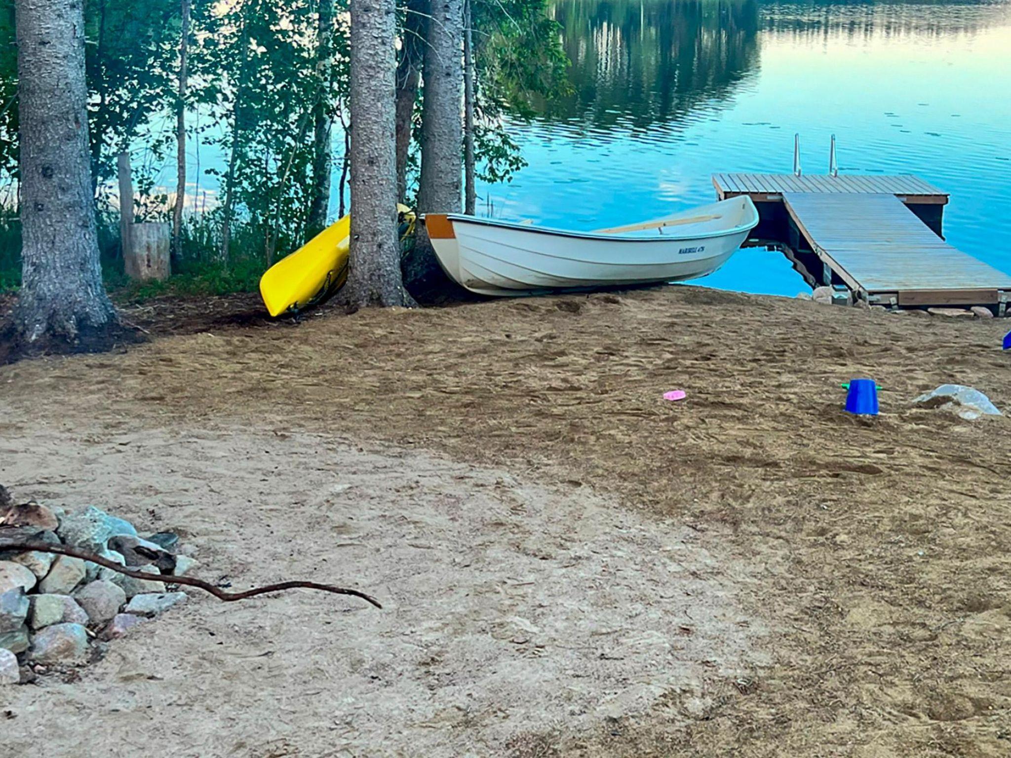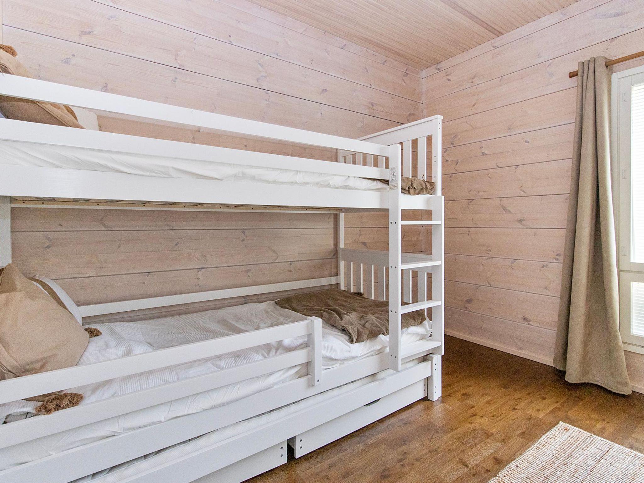 There is a large landscape window which gives a wonderful view of the fishy Lake Sääjärvi. The well-equipped living room and kitchen are open to the ceiling. In addition there are 2 spacious bedrooms on the ground floor. One with double bed (160 cm) and other with bunk bed (2 x 80 cm). Upstairs a large low loft with 2 beds (80 cm). In addition an utility room.