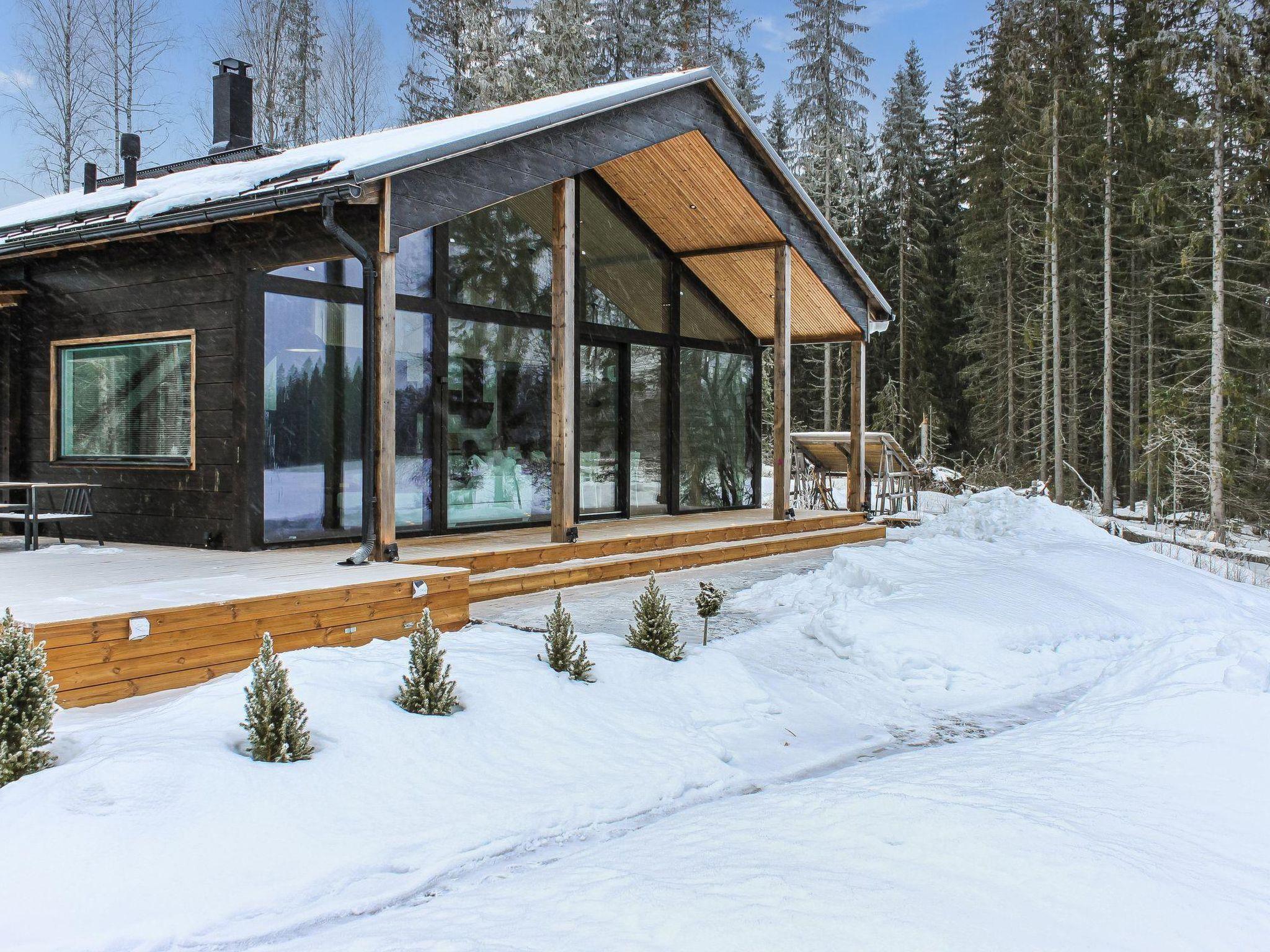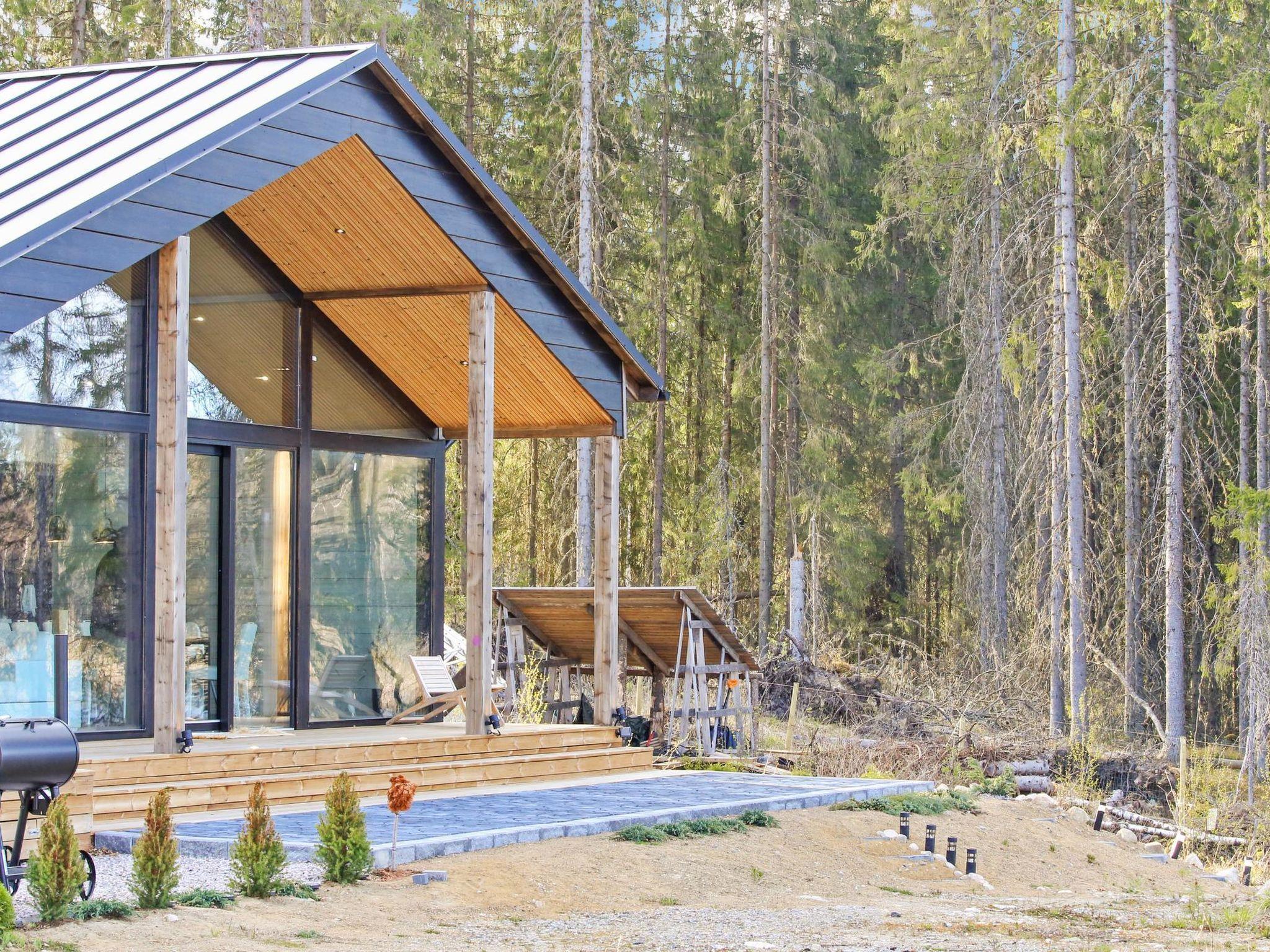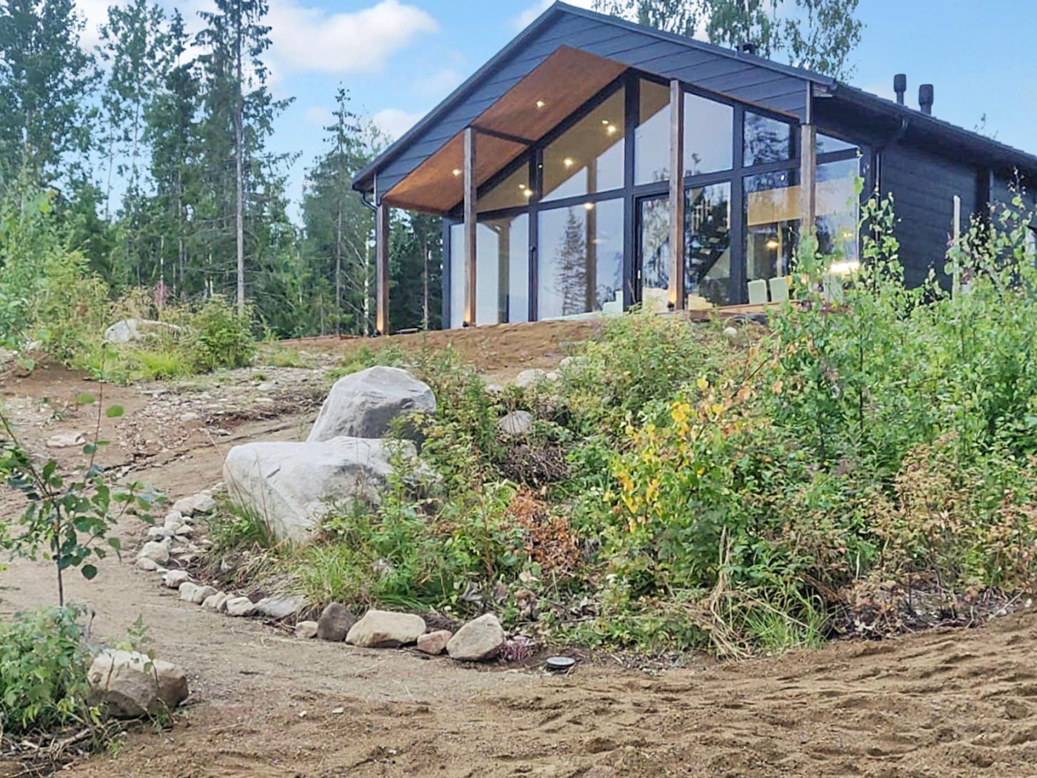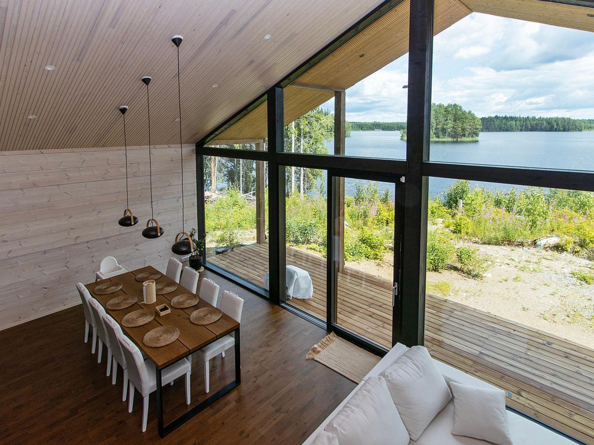 110 km to the north from Helsinki in Harviala, Janakkala, this modern 105 m² lakeside villa was built in 2023 by lake Sääjärvi. There is a campfire site and a pier by the lake. The bottom of the lake is soft near the shore, and you can access it for swimming from the pier.