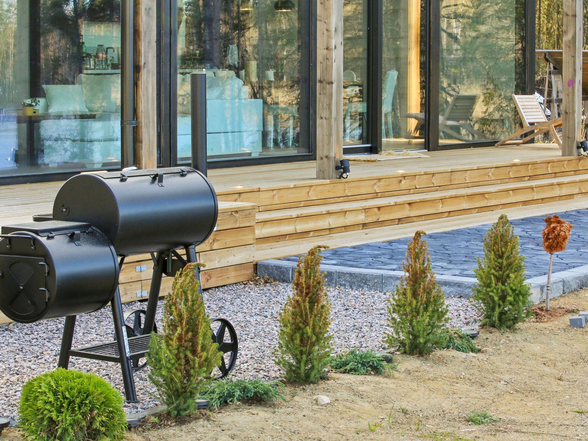 There is a charcoal grill, which has a smoker and a BBQ grill. A kayak and rowing boat are available for use.