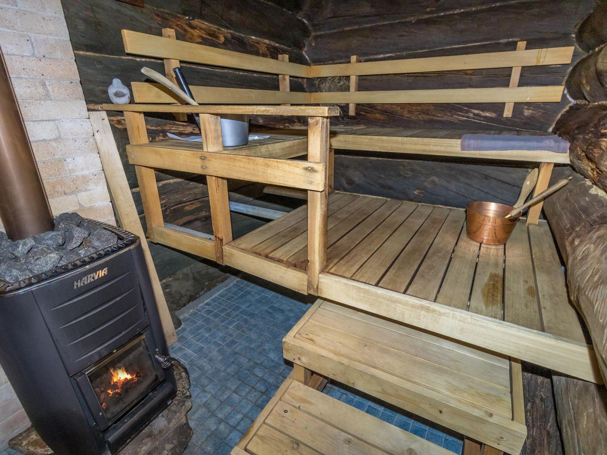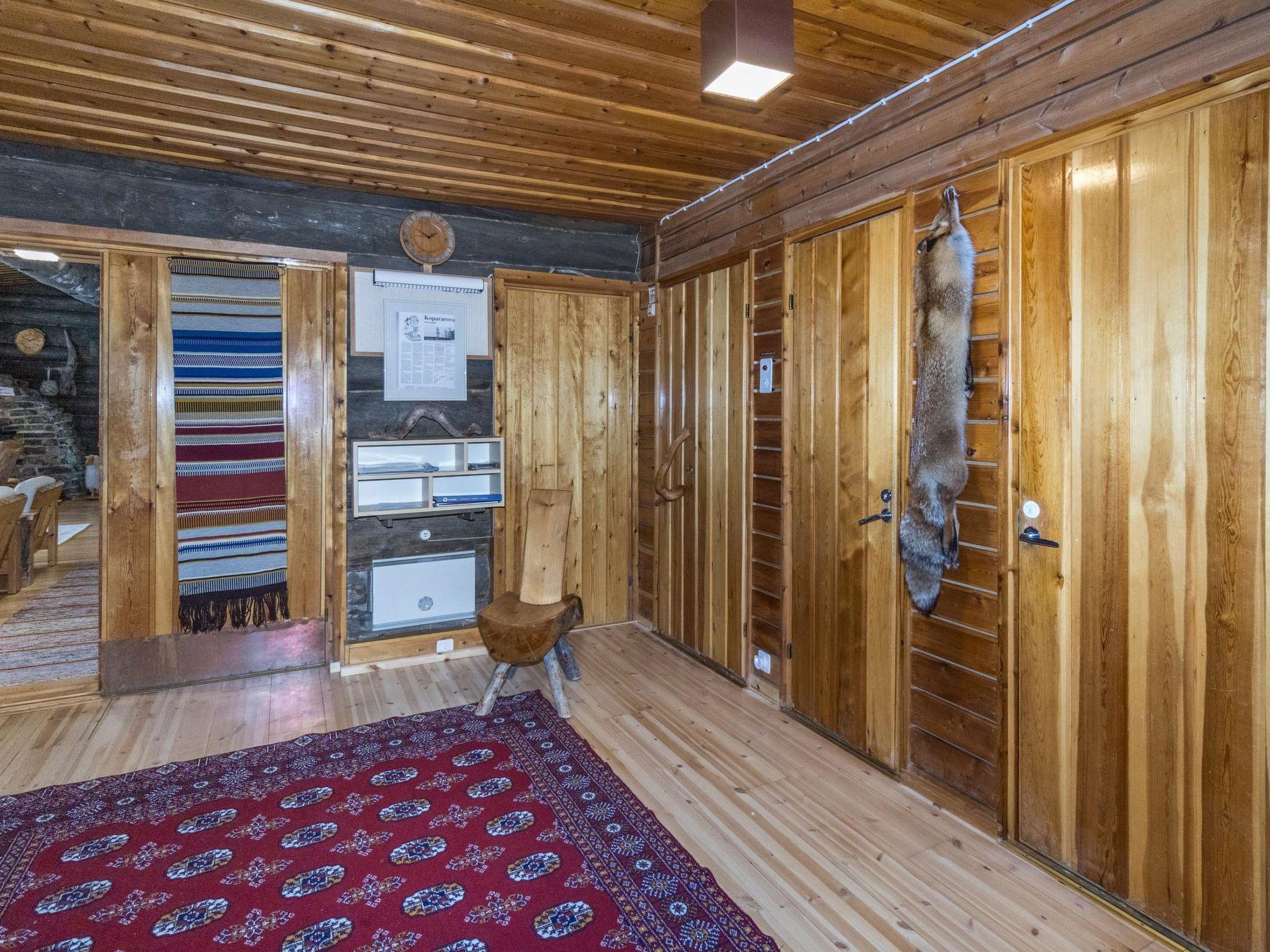 The cabin has a spacious living room and a combined kitchen, with space for spending time together by the atmospheric open fireplace or gathering for a meal. The cabin has a total of six bedrooms, two bathrooms, a drying room for equipment and clothes and a dressing room, a separate toilet, a washroom and a wood sauna in its own peace at one end of the cabin. The cabin has new kitchen appliances and two air-to-air heat pumps, so the cabin offers an excellent level of equipment and the setting for a successful vacation.