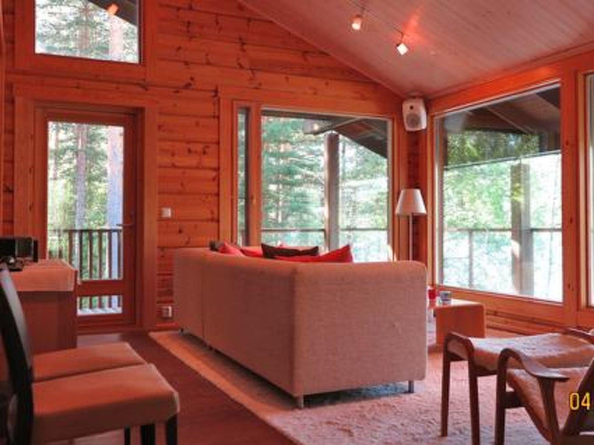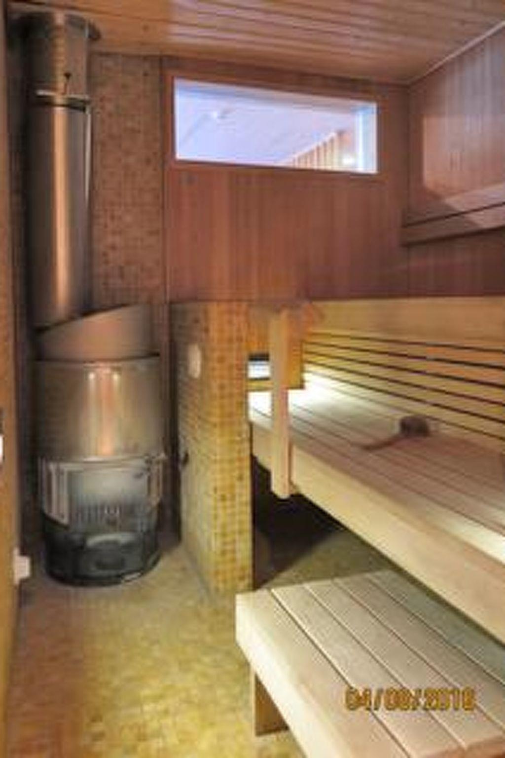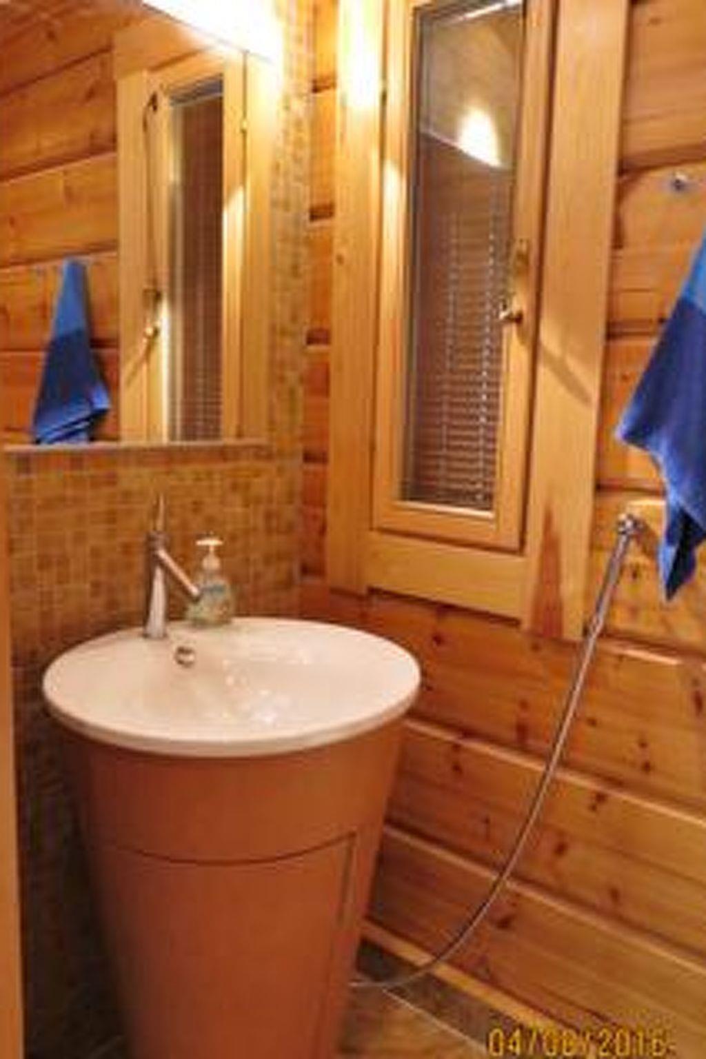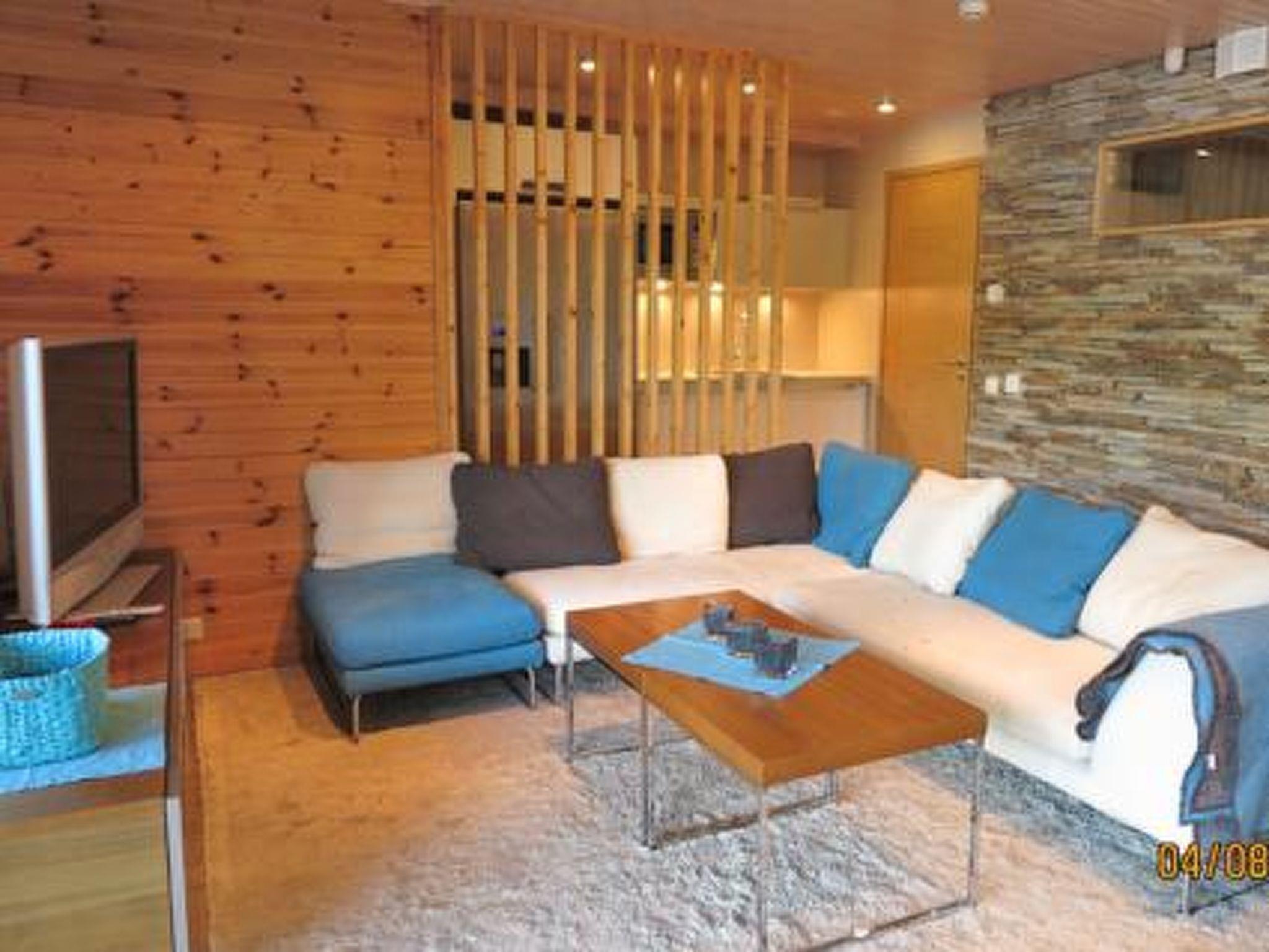 Spacious two-story log house: kitchen, living room, 2 bedrooms with double bed in each, 1 bed room double bed and own shower, WC and TV, in the hallaway second WC. A wide terrace (60 m² of which covered 40 m²). Downstairs livingroom, kitchenette; micro oven, dishwasher, fridge, freezer, ice maker, 2 bed room with double bed in each, dressing room, utility room, washroom, sauna (wooden warming stove), 2 WC, ski storage and terrace. Car heater socket in the carport.