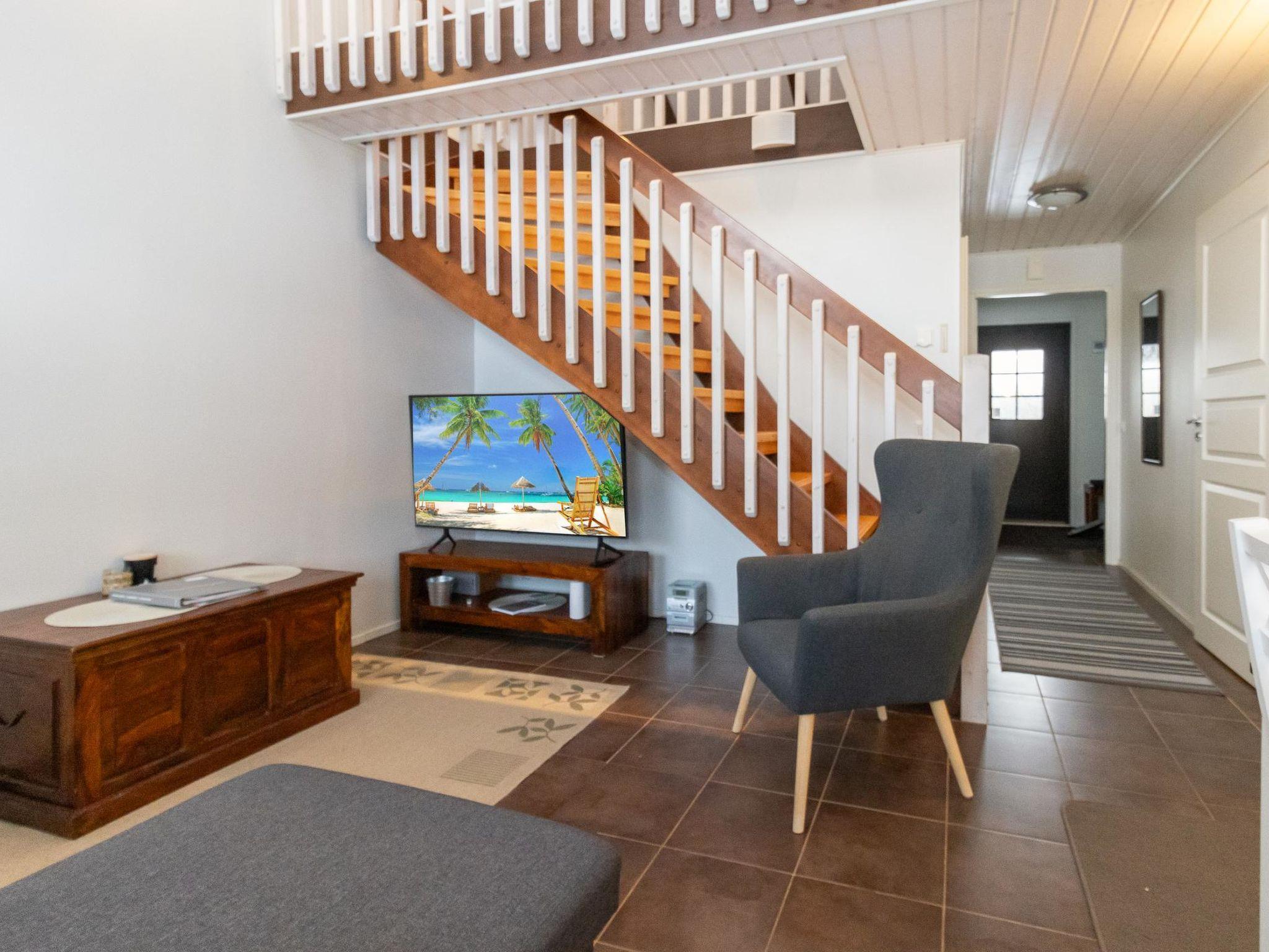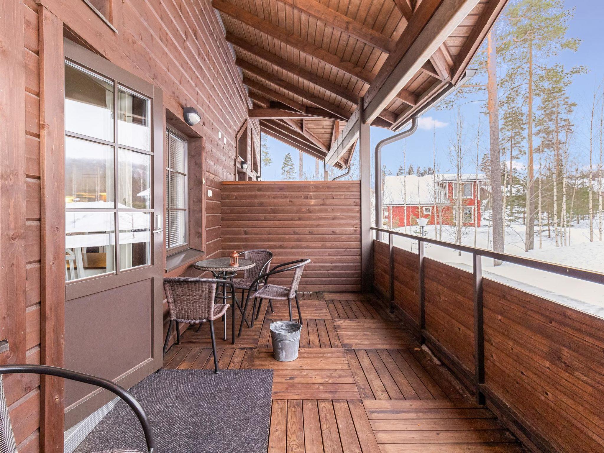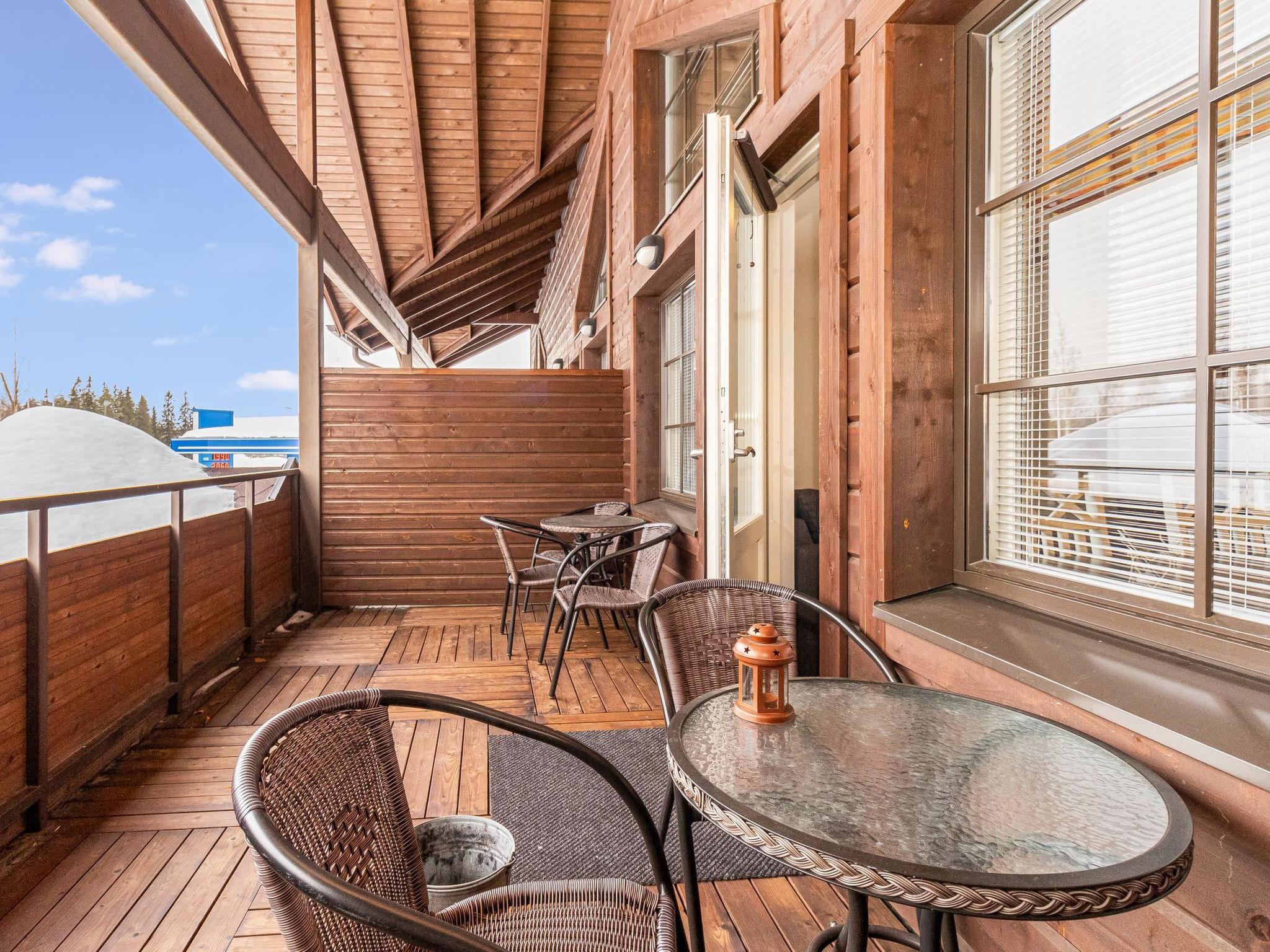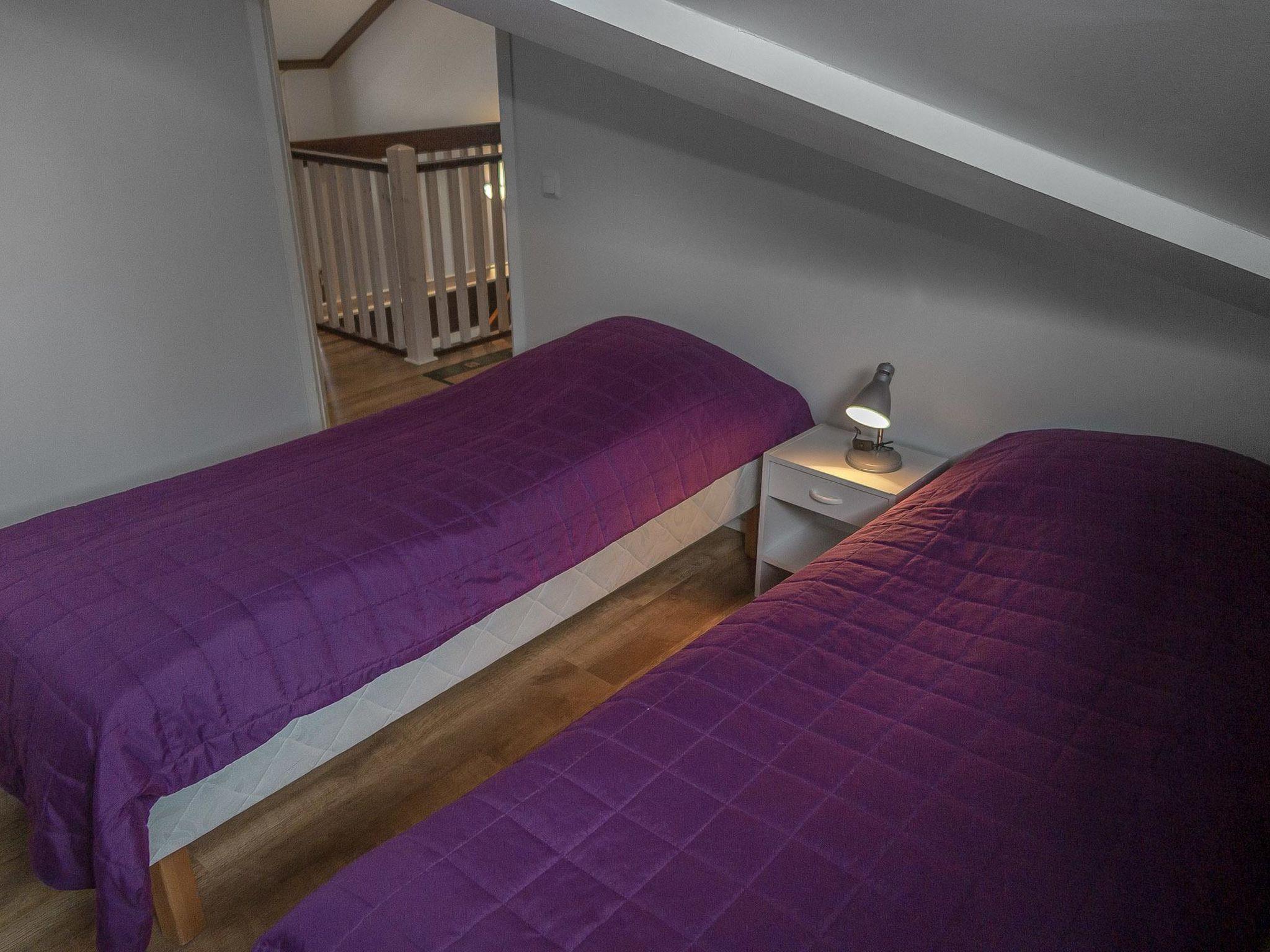 Living room/kitchen, bedroom with double bed. Washing room, WC, sauna (electric stove), hall and from balcony view to the slopes. Upstairs bedroom with 2 beds and a loft with 2 beds, on the upper floor there is another shower and toilet. Ski storage, 2-car plugs for cars. Internet Wifi 5G