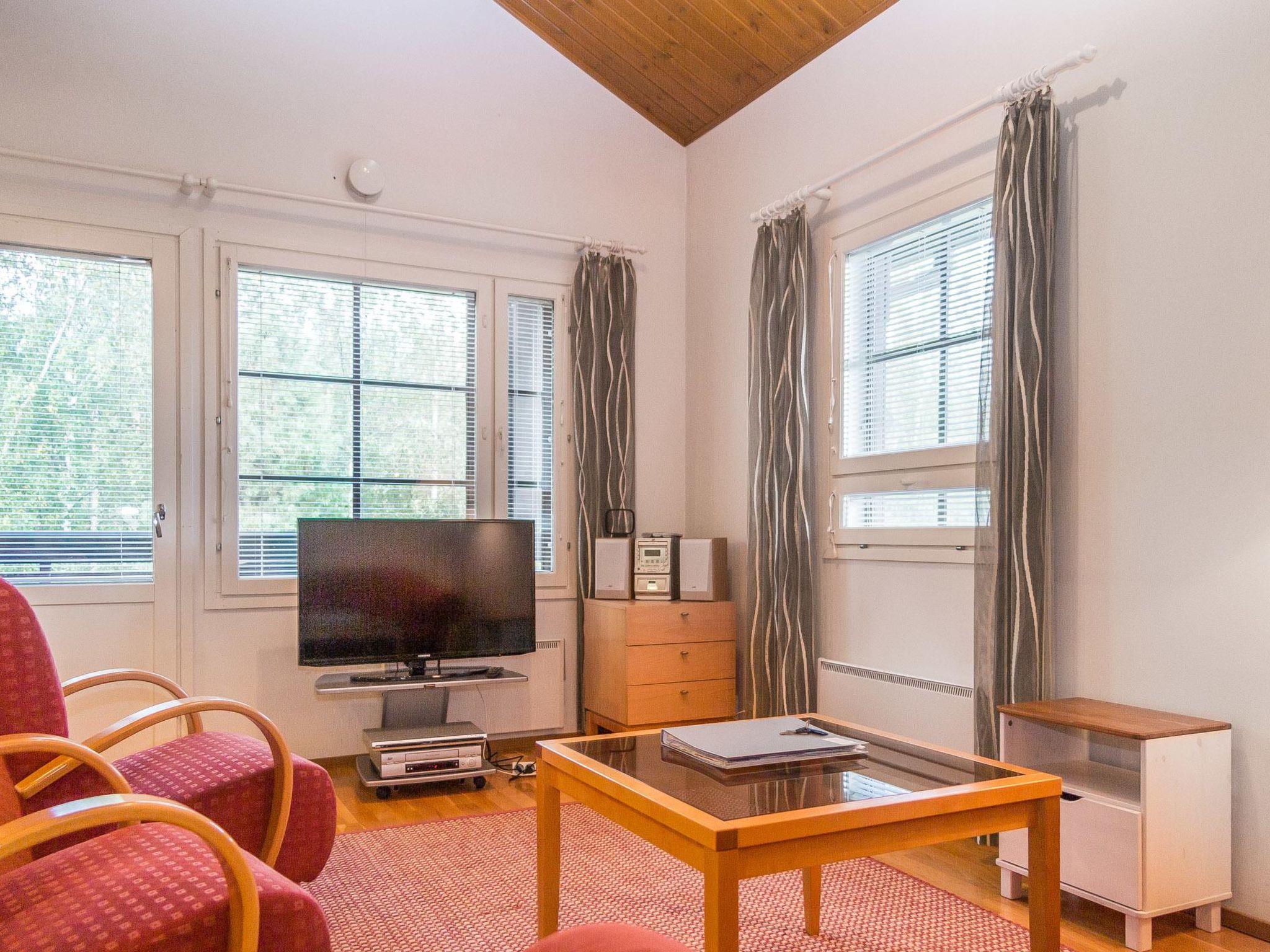 Two-storey chalet 2002, an apartement in the second floor, kitchen-living room, bedroom with 2 beds, upstairs a loft, in which 4 beds, washroom, sauna (electric stove), hall and a big terrace.