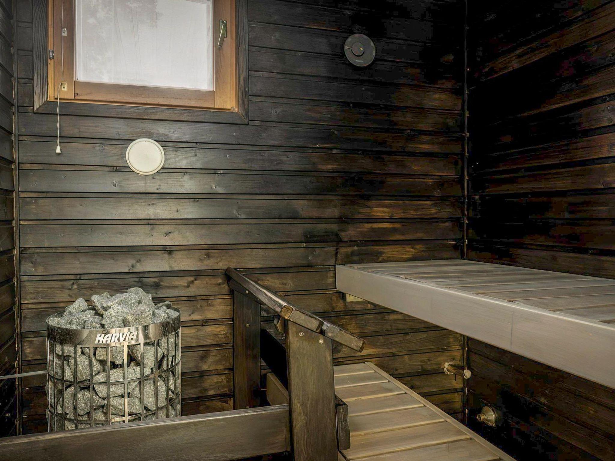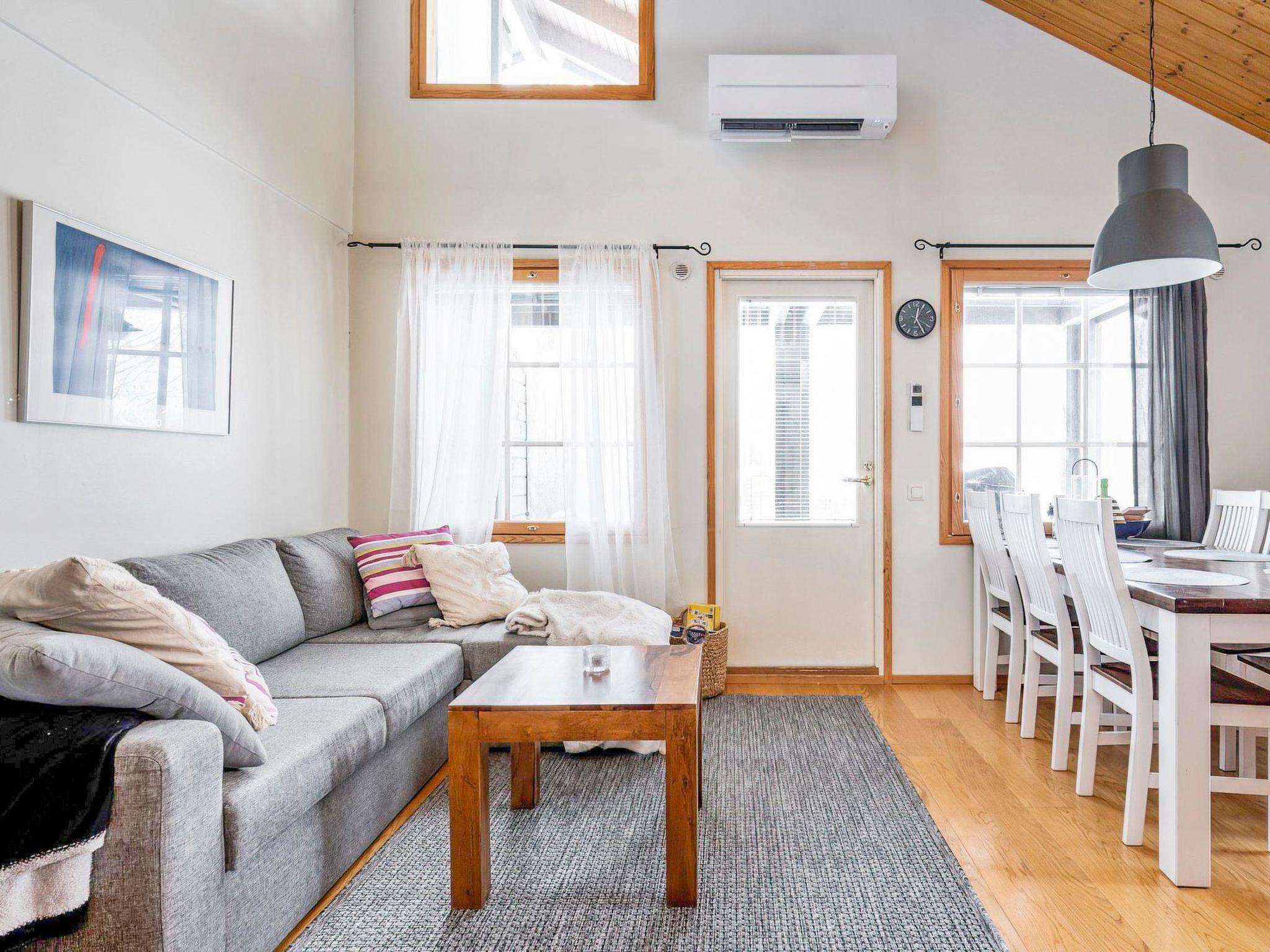 In this semi-detached apartment you have downstairs a living room/kitchen with well equipped kitchen and kitchen appliances renovated on 2021, a bedroom with bouble bed, a washroom, a separate toilet, sauna (electric stove), a hall and a terrace. The loft has a bedroom with 2 beds and 2 extra beds in the lobby lof the loft. Safety gates on top and down stairs. Wifi, JBL speaker, charcoal grill. There is an air source heat pump with cooling and warming functionality on the cabin.