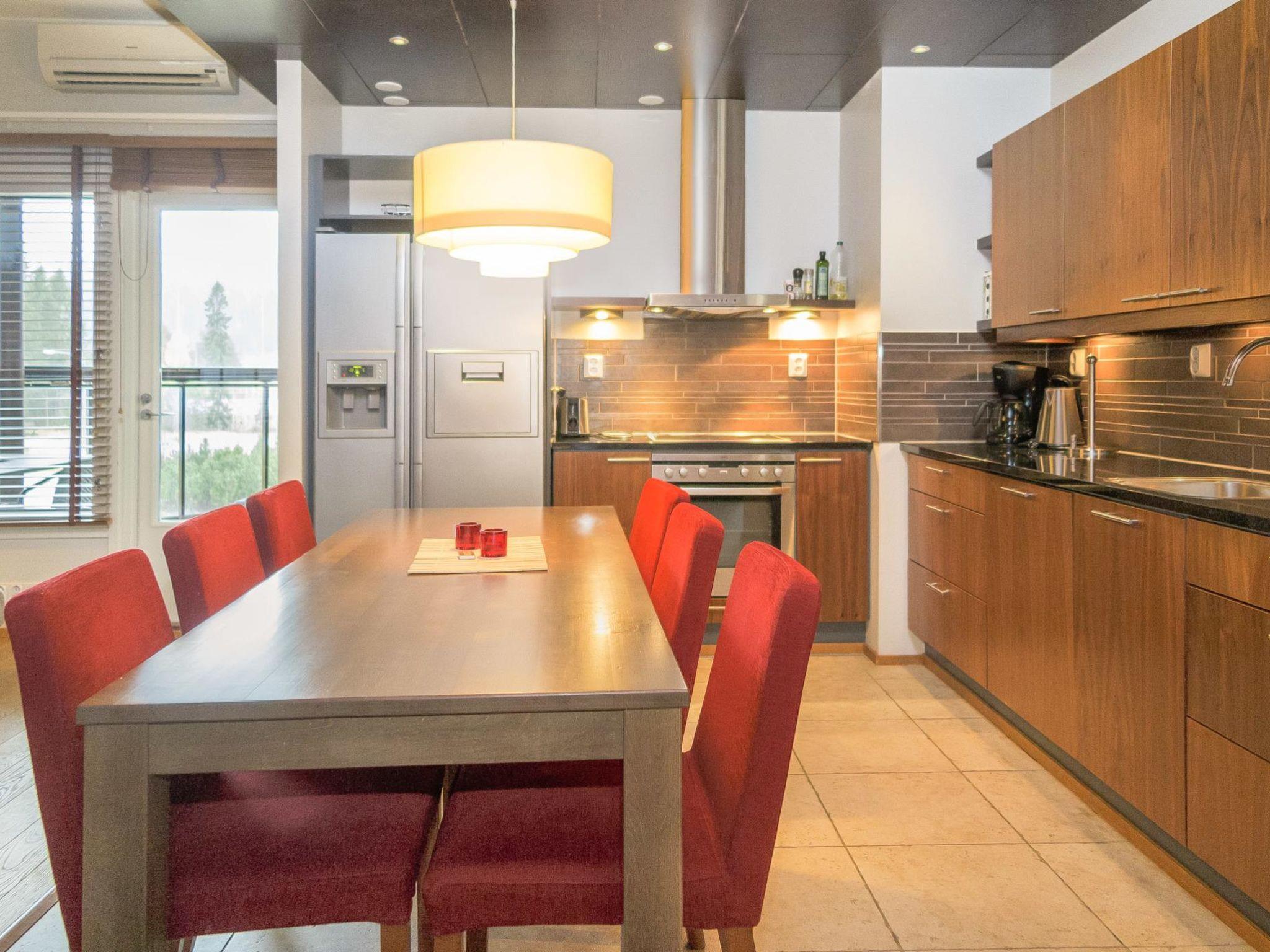 High standard 3rd floor Tahko Spa Suites Orange A 8 apartment located in centre of Tahko Ski Resort, built 2006, surface area 90 m² and 19 m² glazed terrace. Apartment has comfortable living room with open plan kitchen. 2 bedrooms, each with 2 separate beds.
