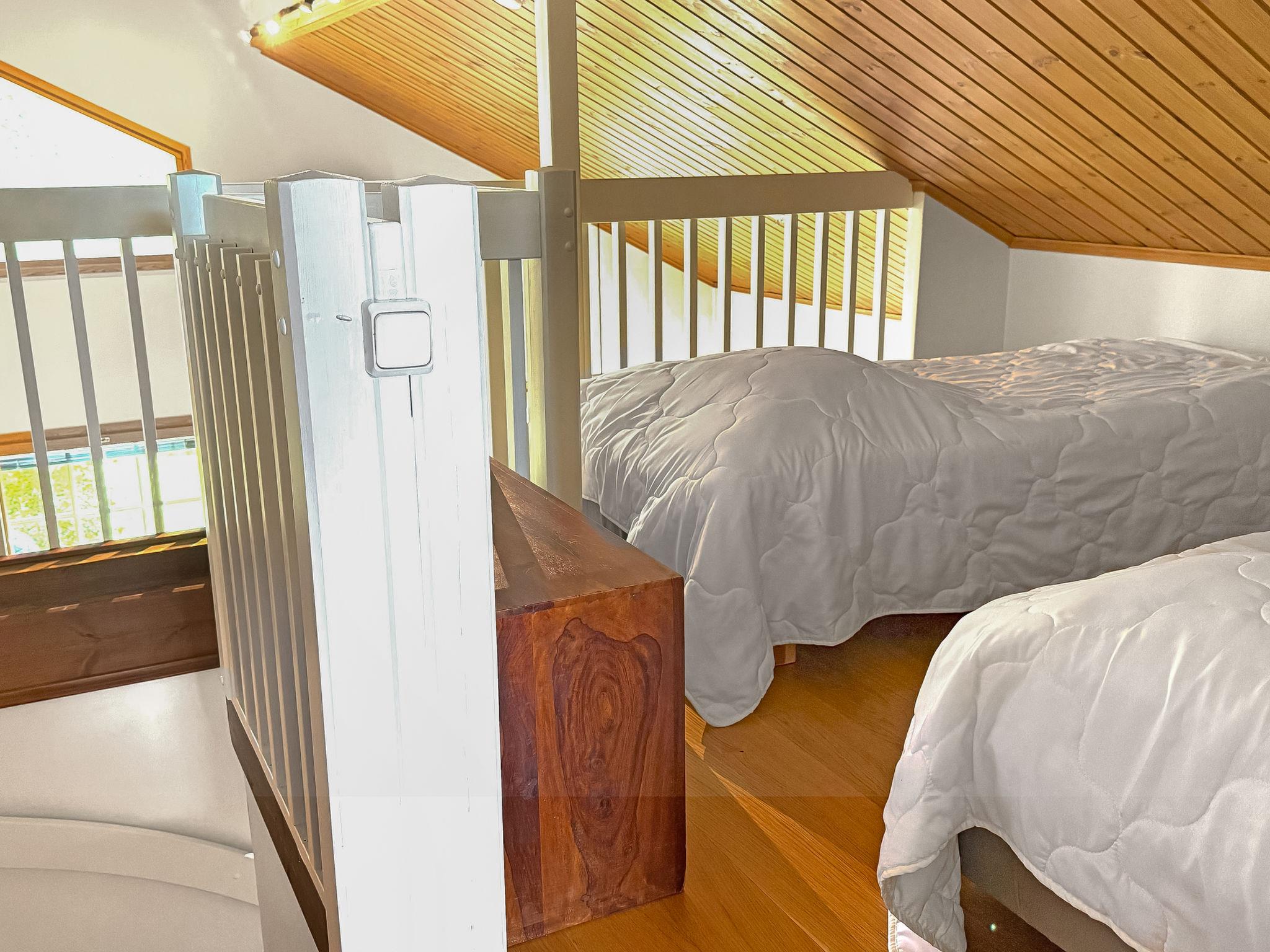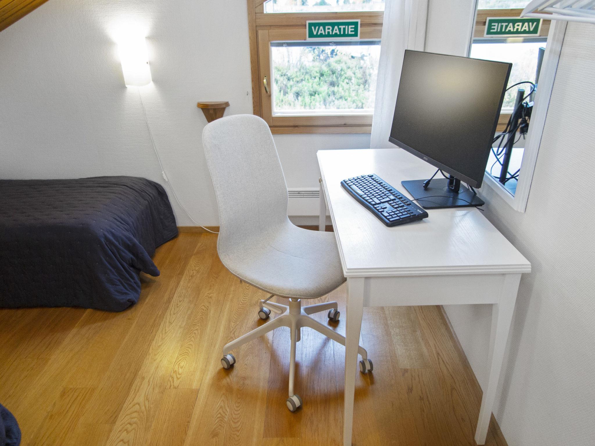 The upstairs bedroom has a workstation with a large screen, keyboard and a comfortable office chair for remote working. The property has good phone reception and a very well-functioning Wifi 4G internet connection. Air-source heat pump with both cooling and heating capabilities.