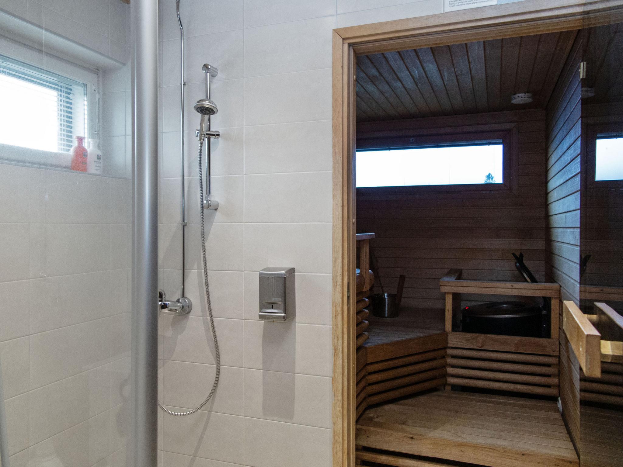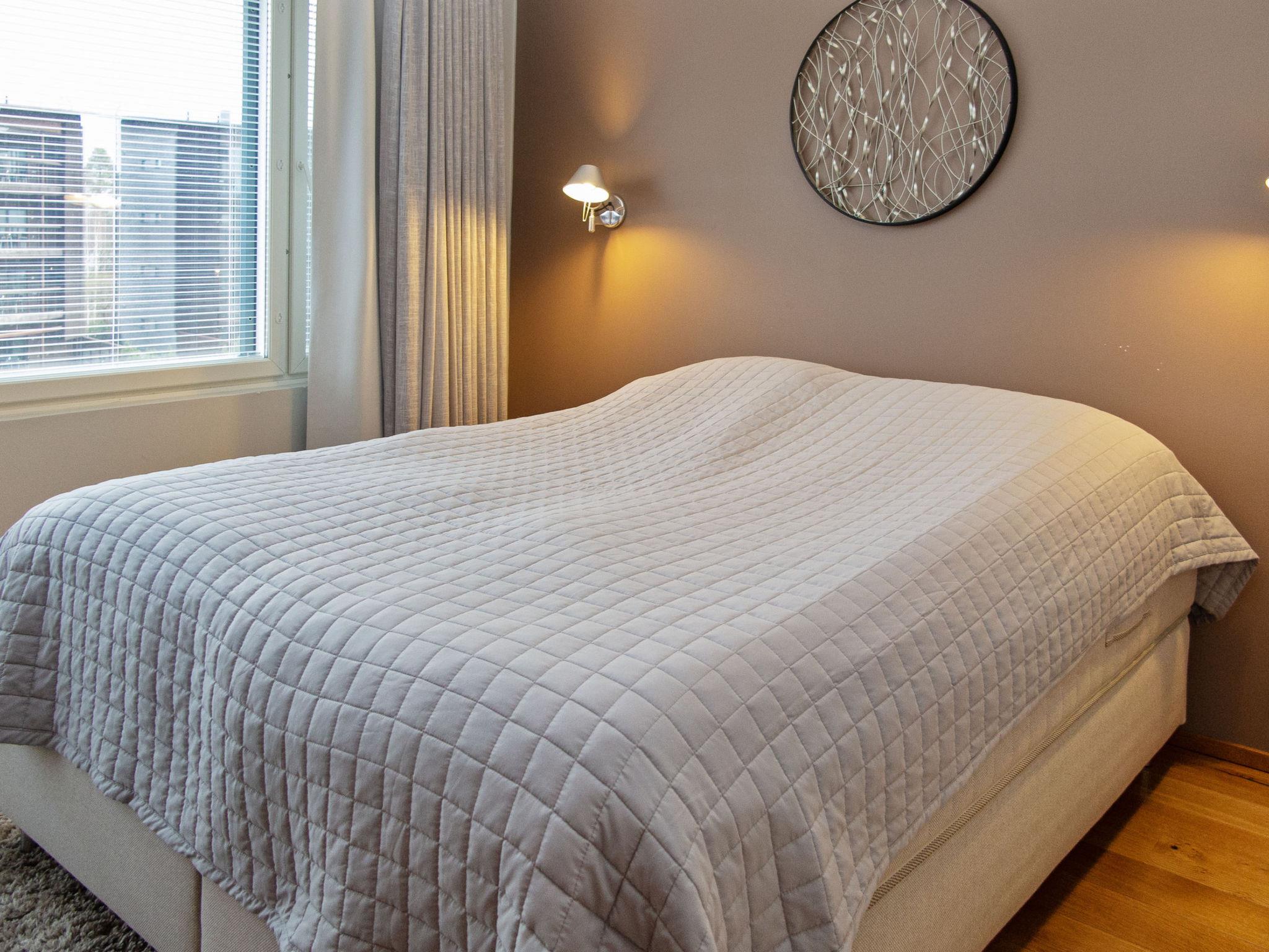 Apartment has comfortable living room with open plan kitchen. Bedroom doubke bed, own shower and WC. Bedroom 2 beds, own shower and WC. Apartment has sauna with electric stove of the ‘ever-ready’ type. Additionally, the sauna and washroom has a shower and WC. Hall has clothes closet. The fireplace in the apartment in not in use.