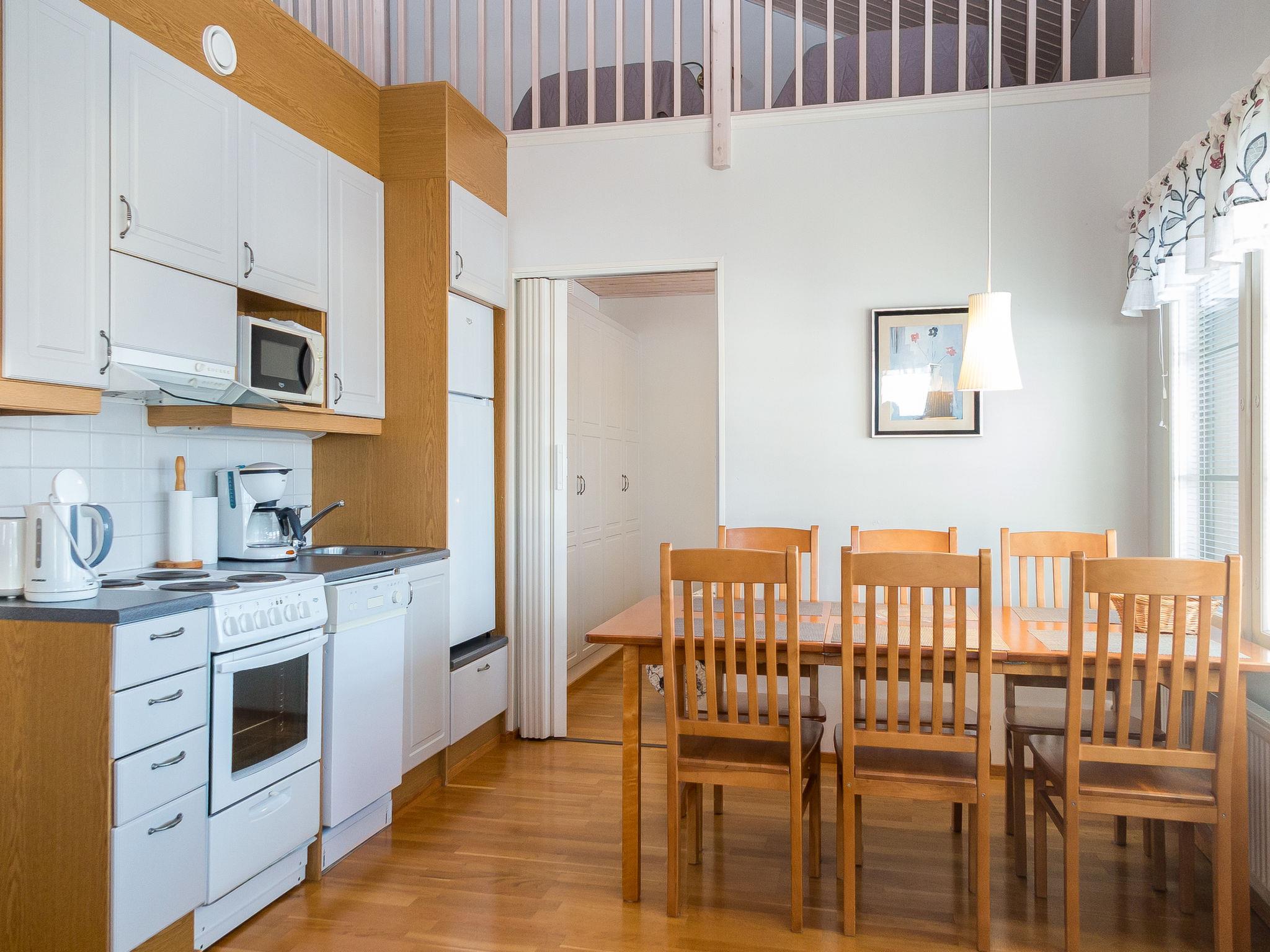 Distances are short: only 400 meters to the spa, 700 meters to the ski resort, and 150 meters to the golf course. Lake Syväri is 500 meters away, and a shared lakeshore is 1.5 kilometers away.
