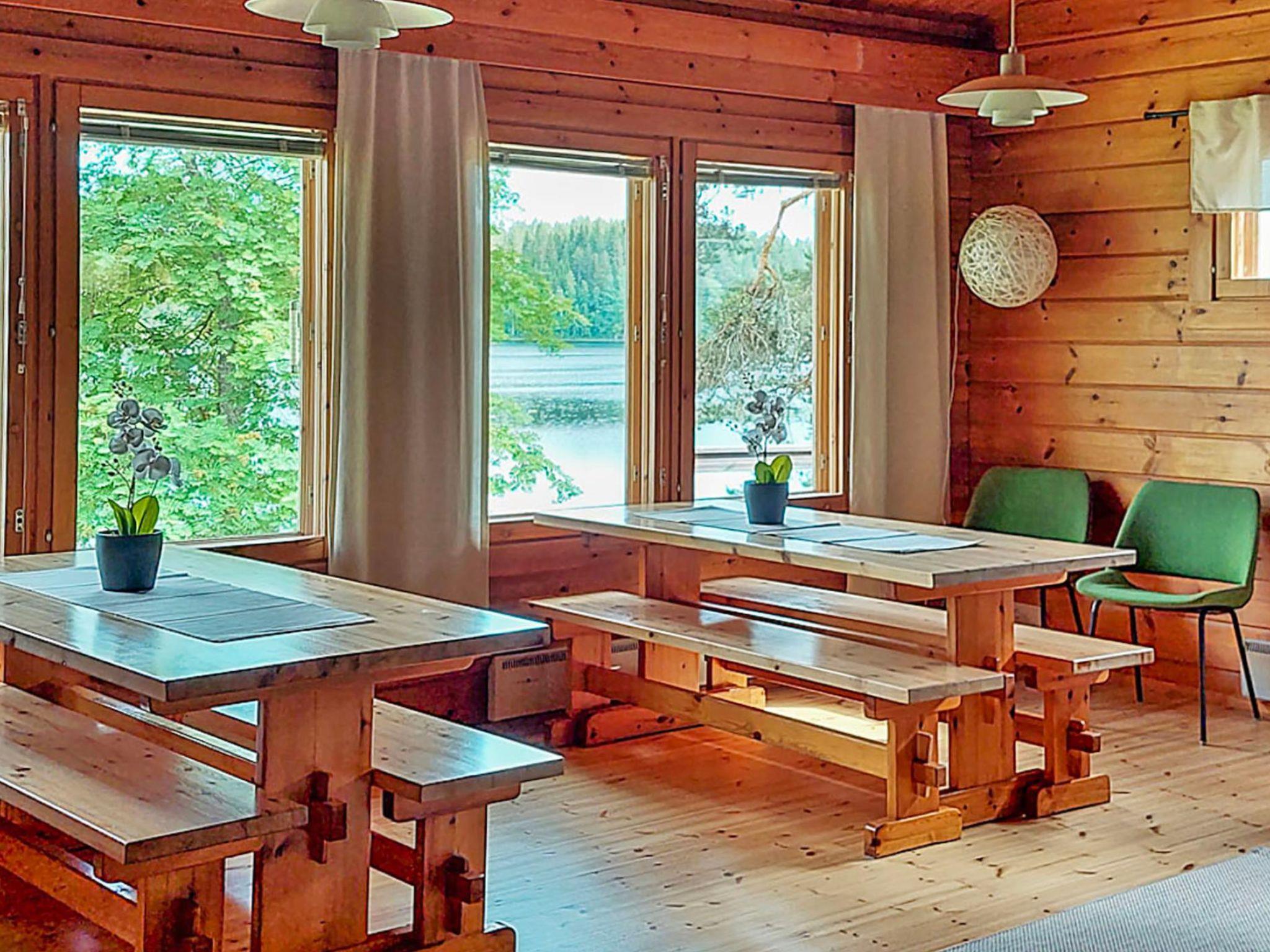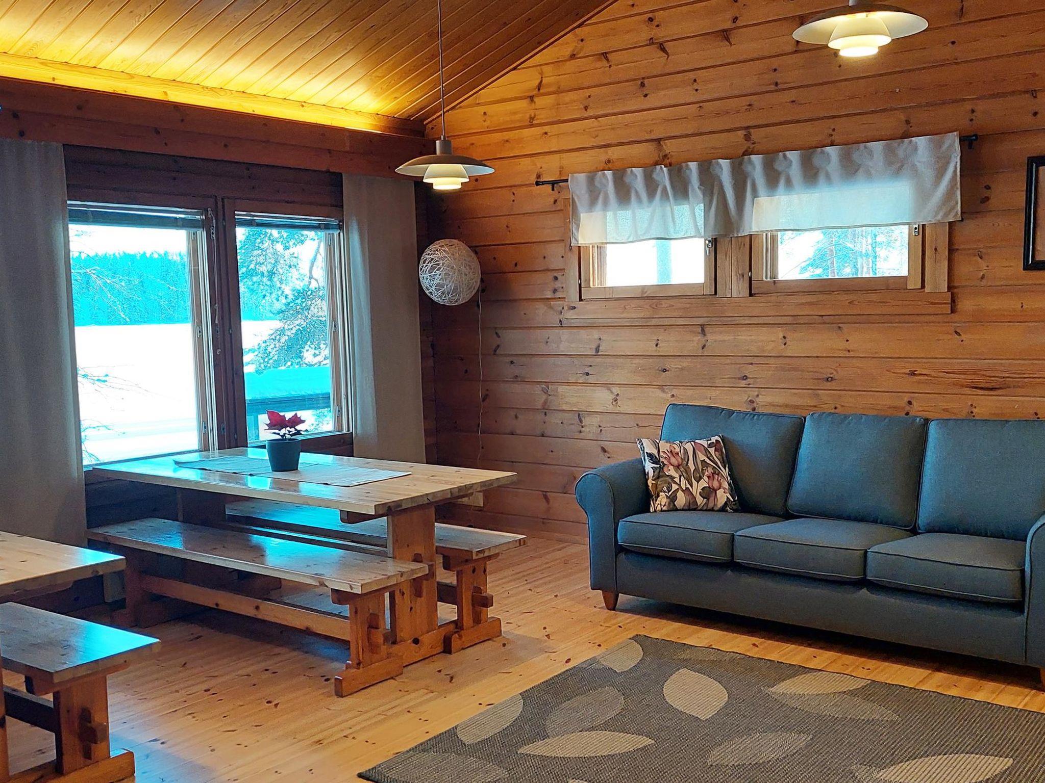 Log building 1987, kitchen, living room with fireplace and 1 convertible sofa bed for 2 persons, upstairs bedroom with 3 beds, alcove with a door 1 bed, in sleeping loft 2 beds and 3 mattresses, dressing room, washroom, sauna (elec. stove), toilets renovated in 2017, open porches.