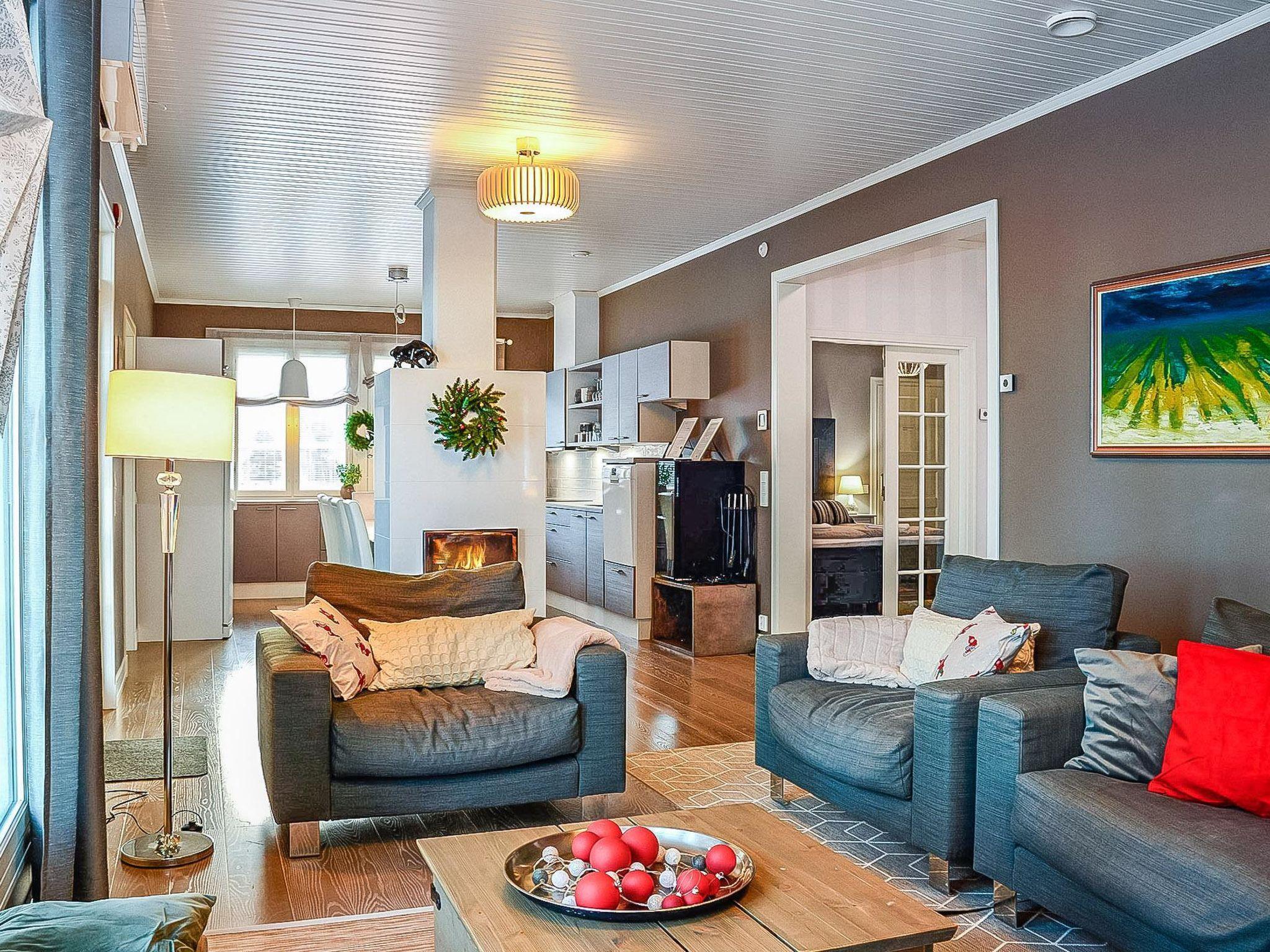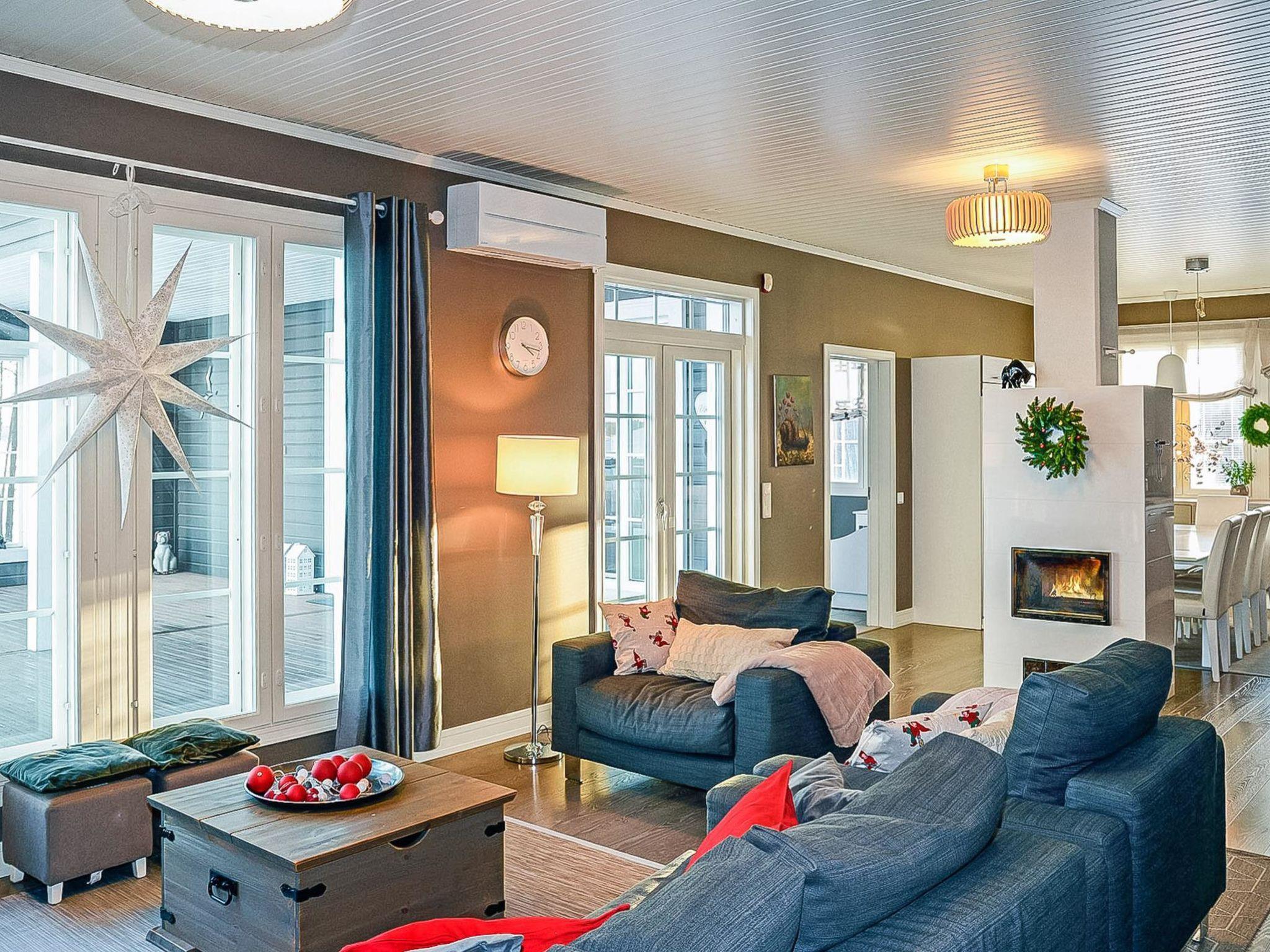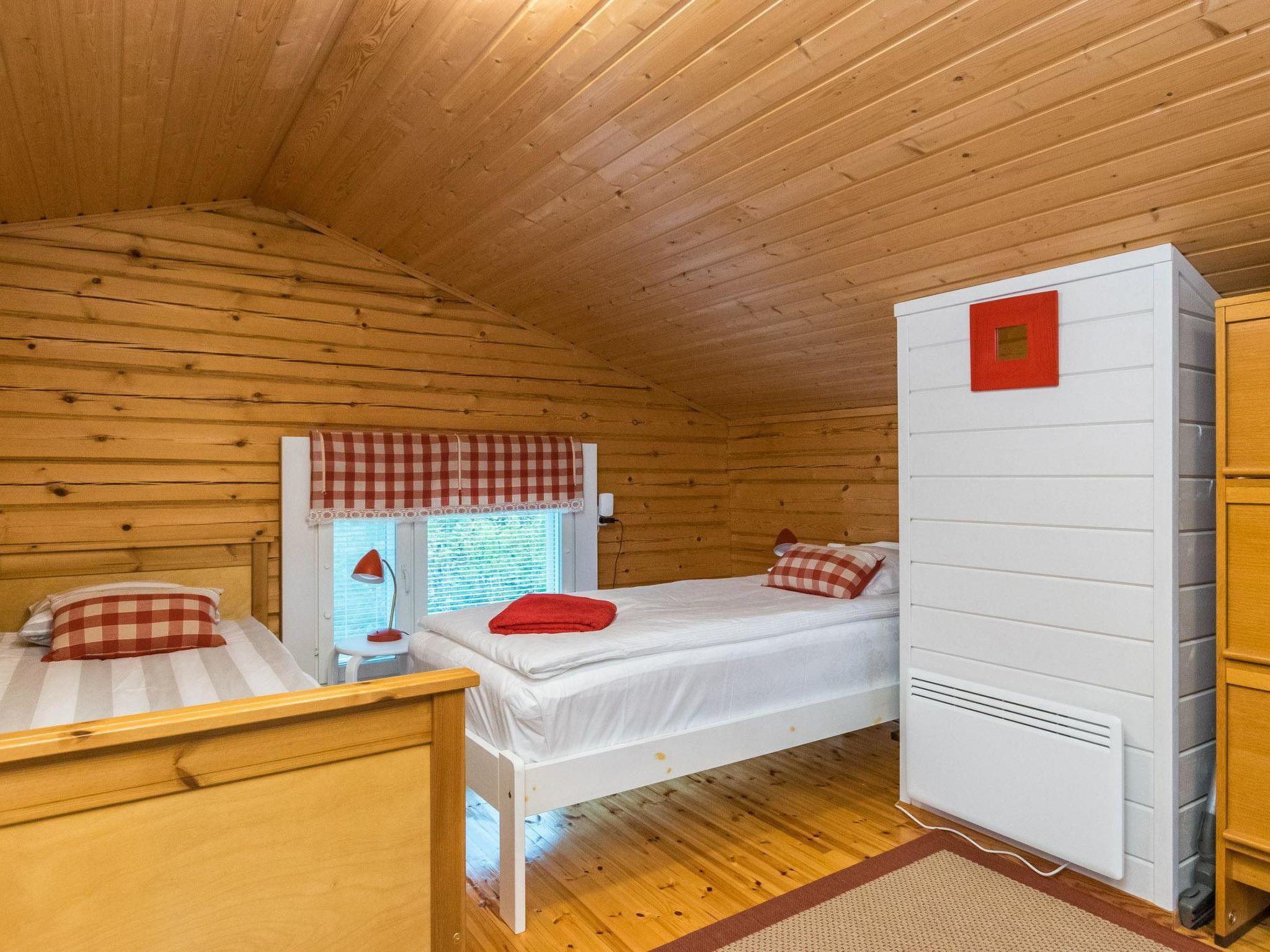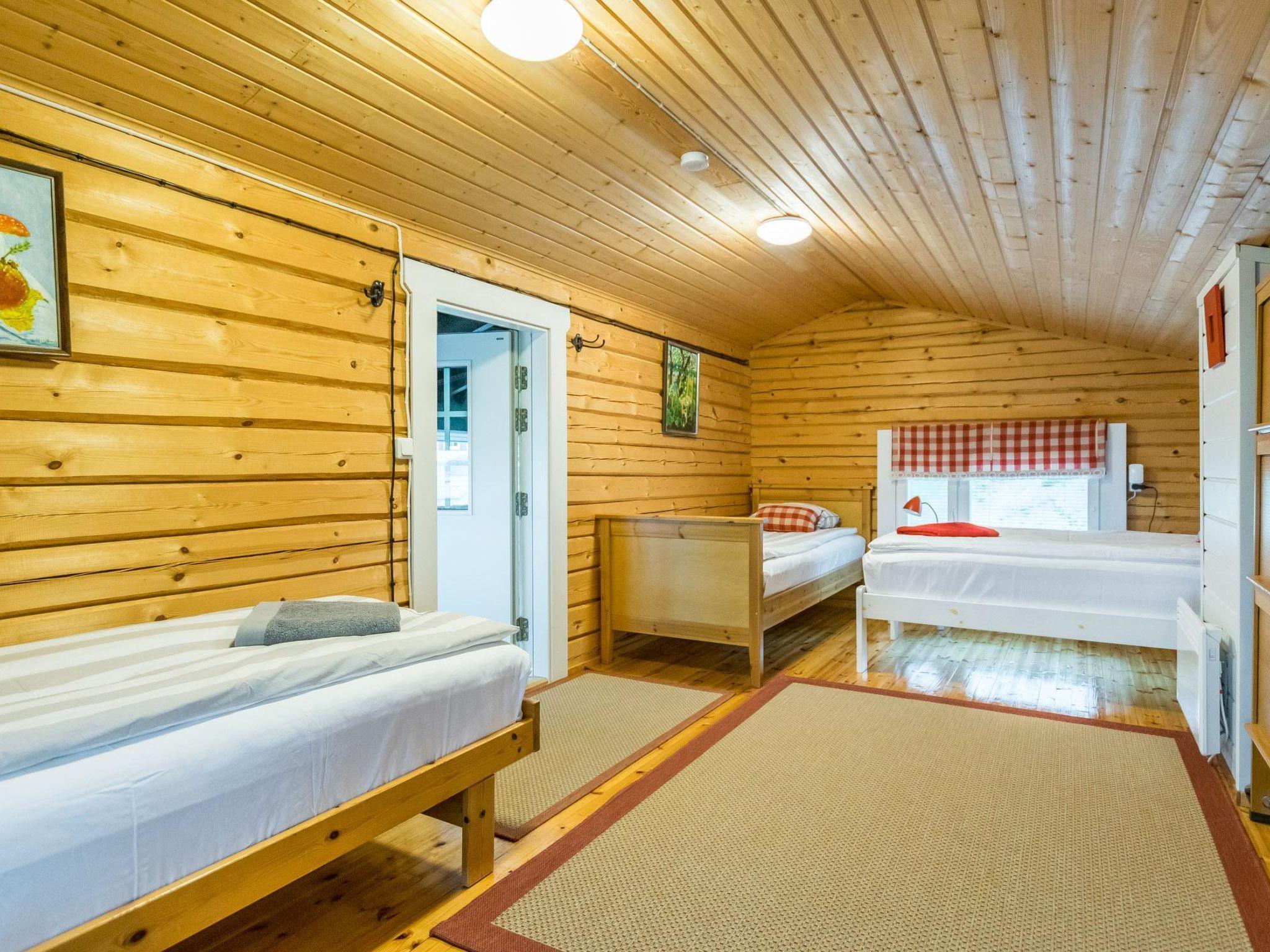 Wooden villa 2015, living room, kitchen, three bedrooms with a double bed, one with two beds, one bed in the living room (passage to the washrooms). Bathroom with two showers and a toilet, sauna with electic stove, a separate toilet. Partially covered large terrace.