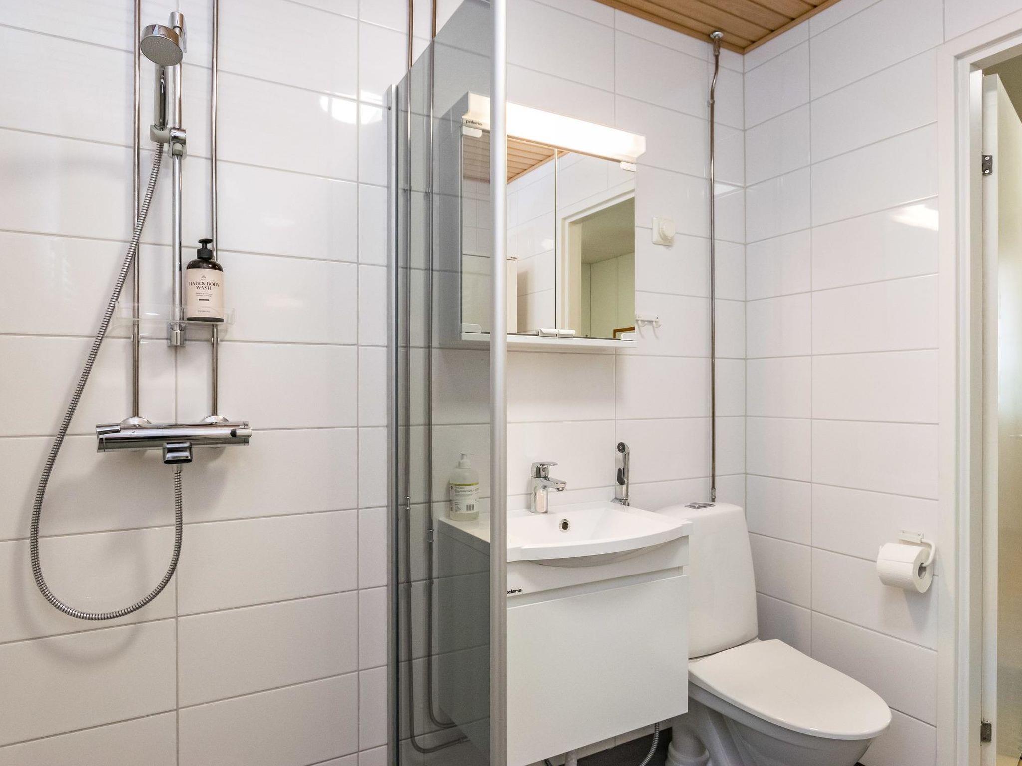 Sauna facilities shared by nine apartments. Sauna facilities includes dressing room, washroom, electric sauna stove, cooling terrace and washing machine. Sauna sessions (included in the price) can be booked at the reception.