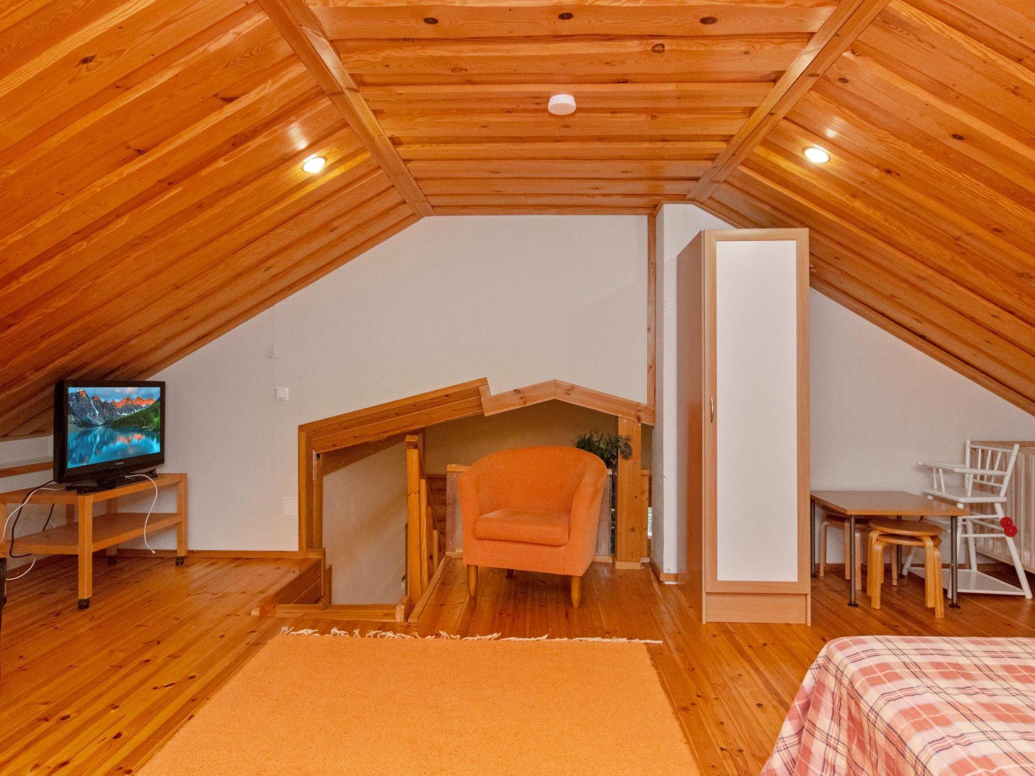 Round log cabin 2002, kitchen, living room, two bedrooms, each with two beds, utility room, washroom, wood-burning sauna stove in the sauna, separate WC. Two beds on the upper floor. Covered terrace 28 m².