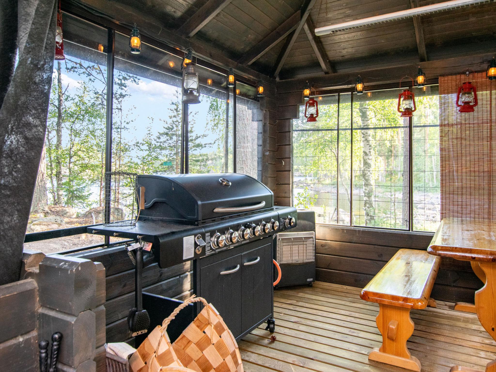 In the lakeside sauna (available all year round) in the fireplace lounge sofa bed for two, refrigerator. Shower in the bathroom, wood stove in the sauna, covered porch. Glazed barbecue shed with gas grill.