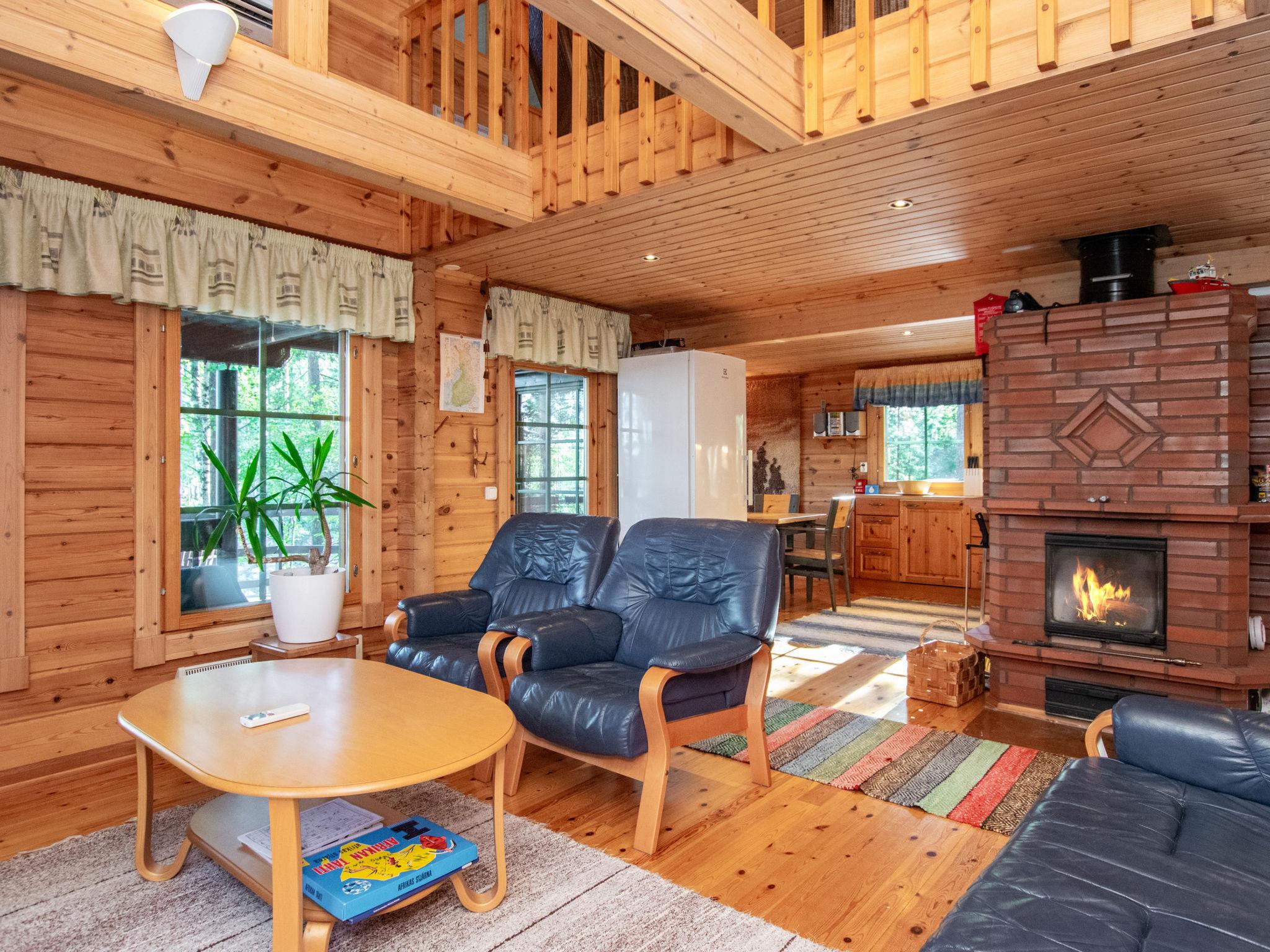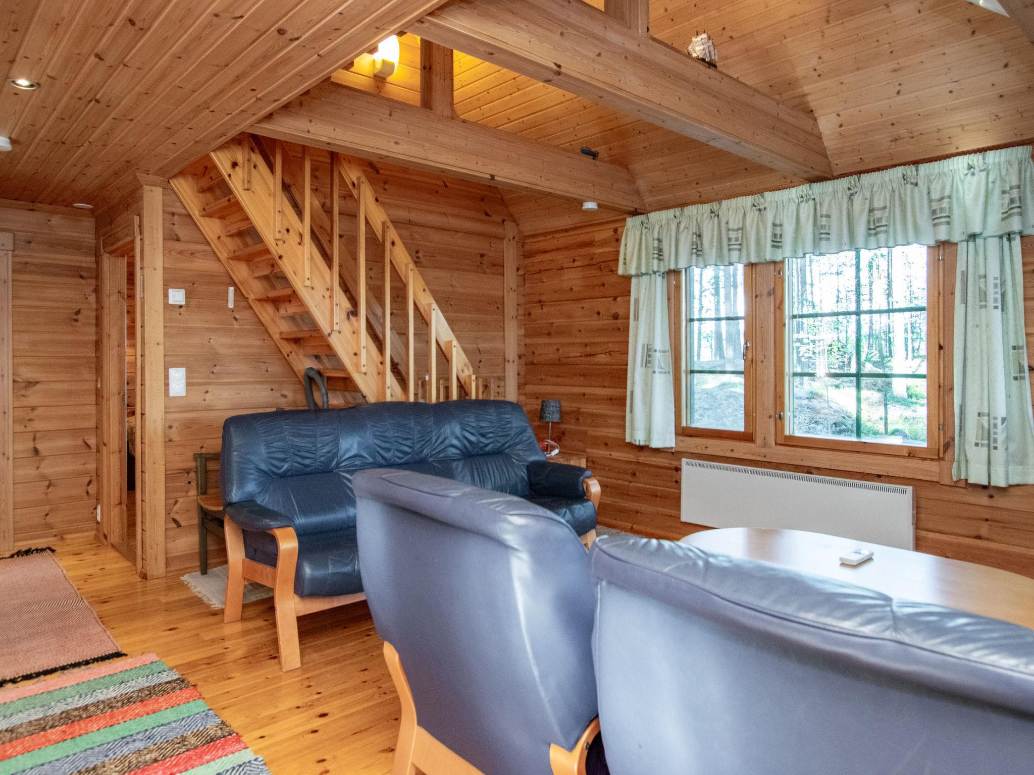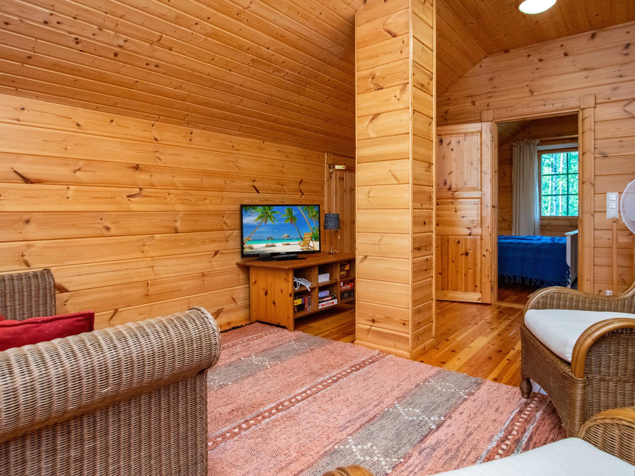 Log cottage 2001, living room, kitchen, double bed in the bedroom, two beds in the second bedroom, shower and toilet in the bathroom, covered porch. Upstairs hall, balcony, double bed in the bedroom, baby gate downstairs and upstairs.
