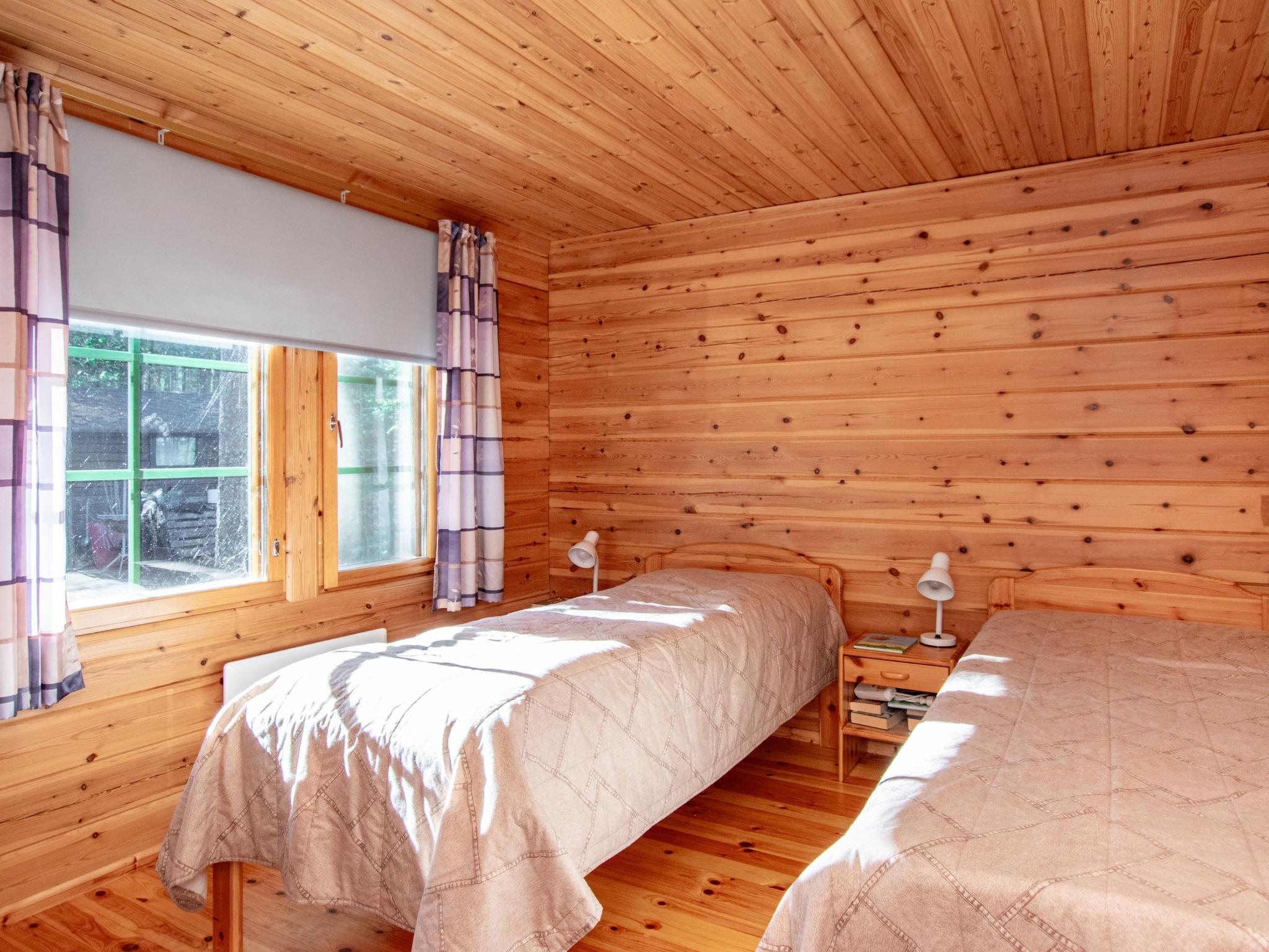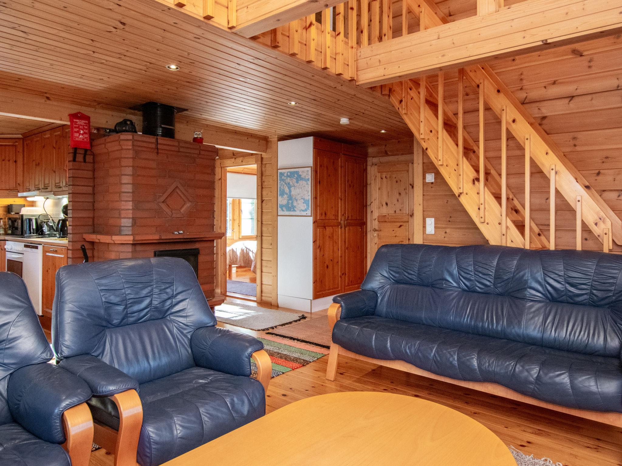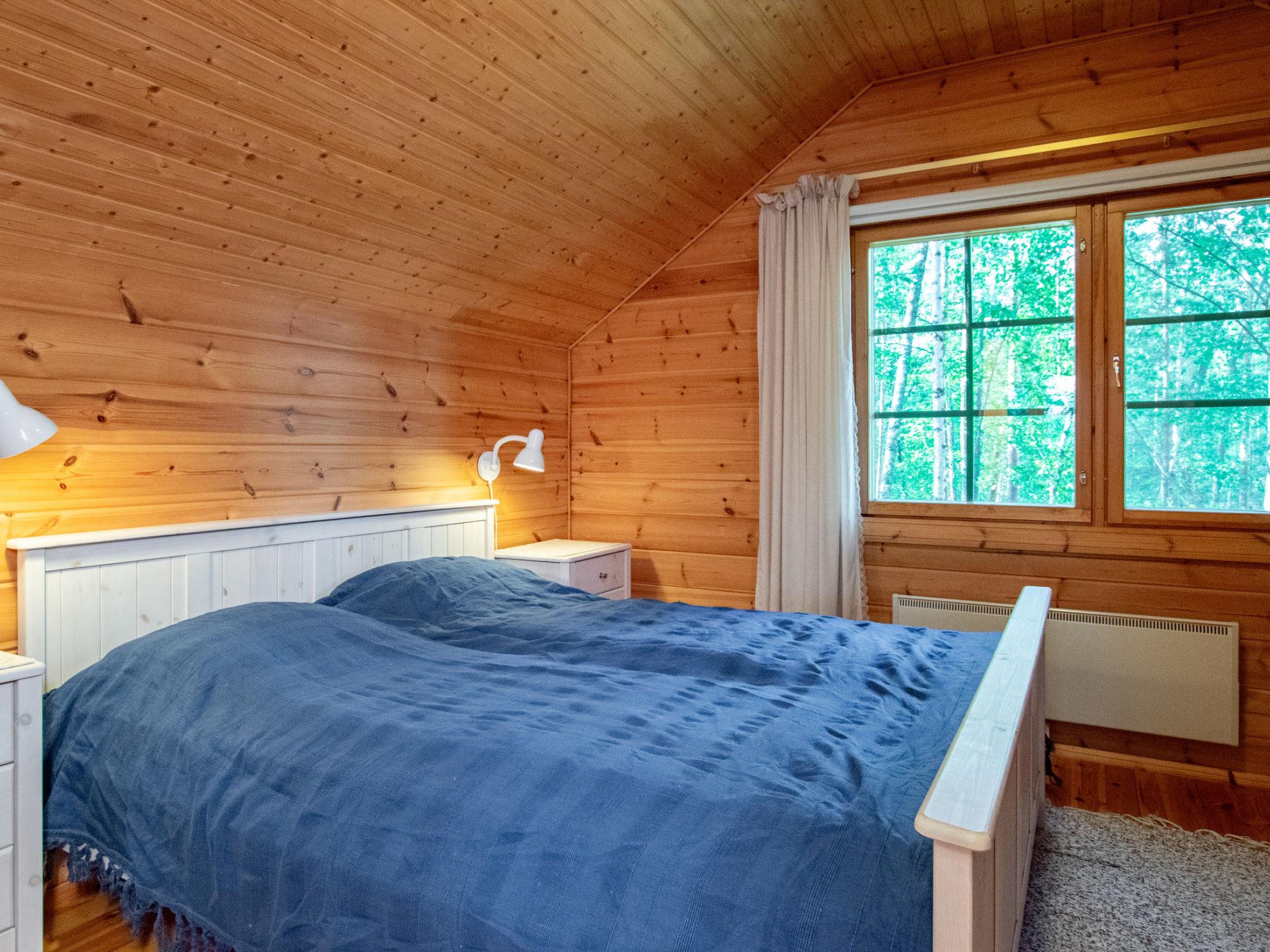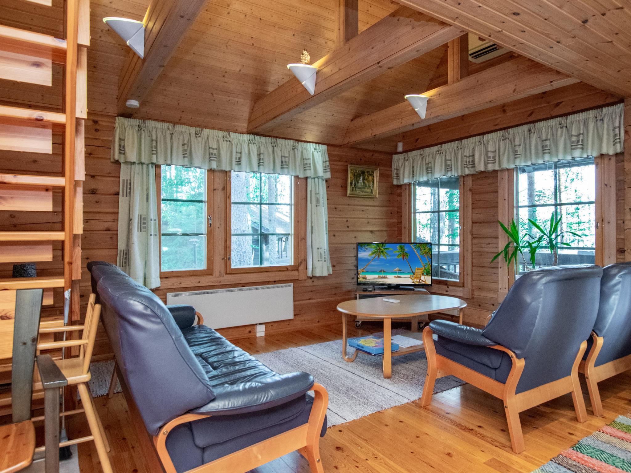 Log cottage 2001, living room, kitchen, double bed in the bedroom, two beds in the second bedroom, shower and toilet in the bathroom, covered porch. Upstairs hall, balcony, double bed in the bedroom, baby gate downstairs and upstairs.