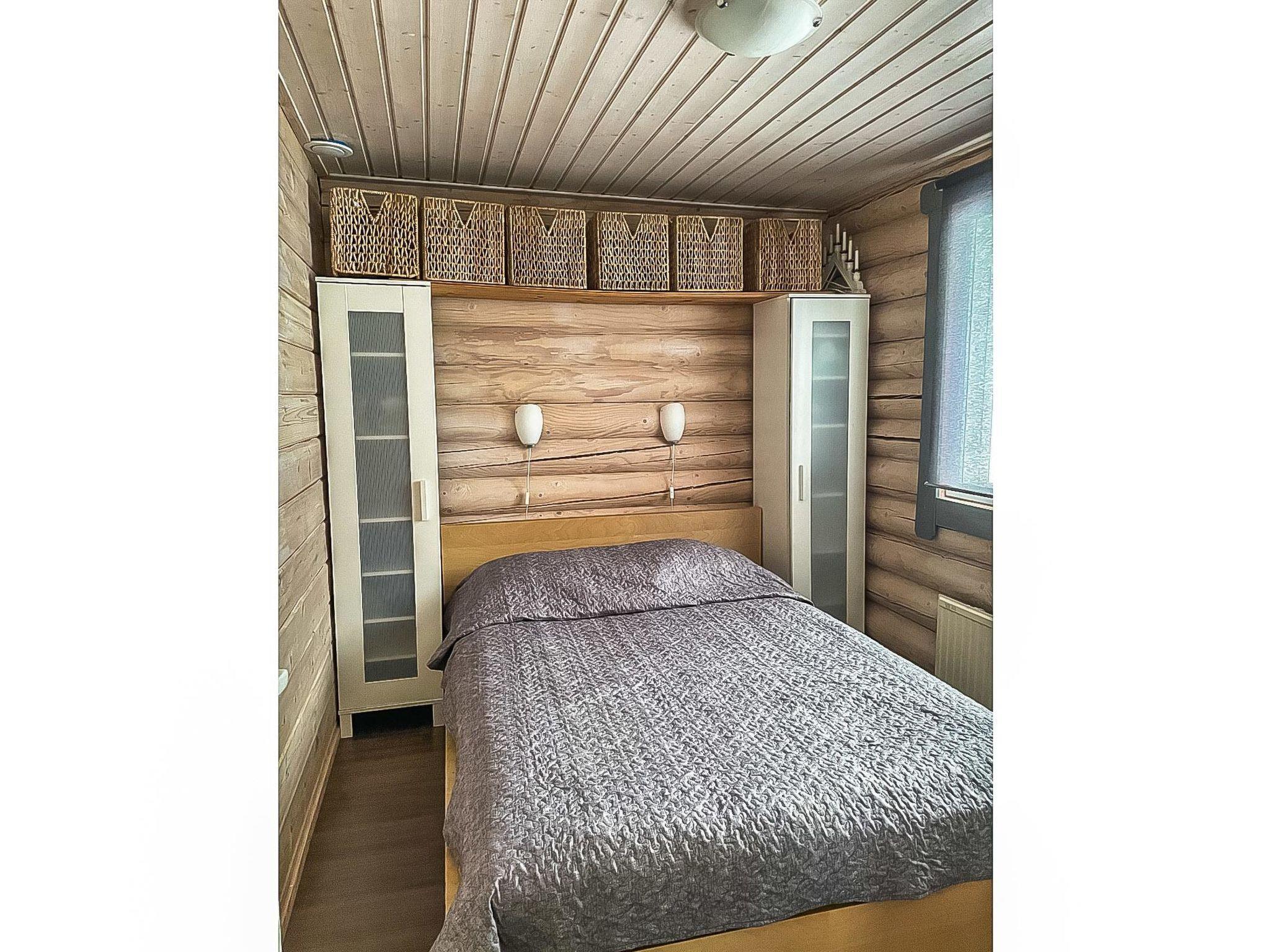 Sofa (not spreadable) in the living room/kitchen, double bed (width 140 cm) in the bedroom, 3 box springs beds 2 mattresses in the loft, sauna, washroom, separate WC and small open terrace.