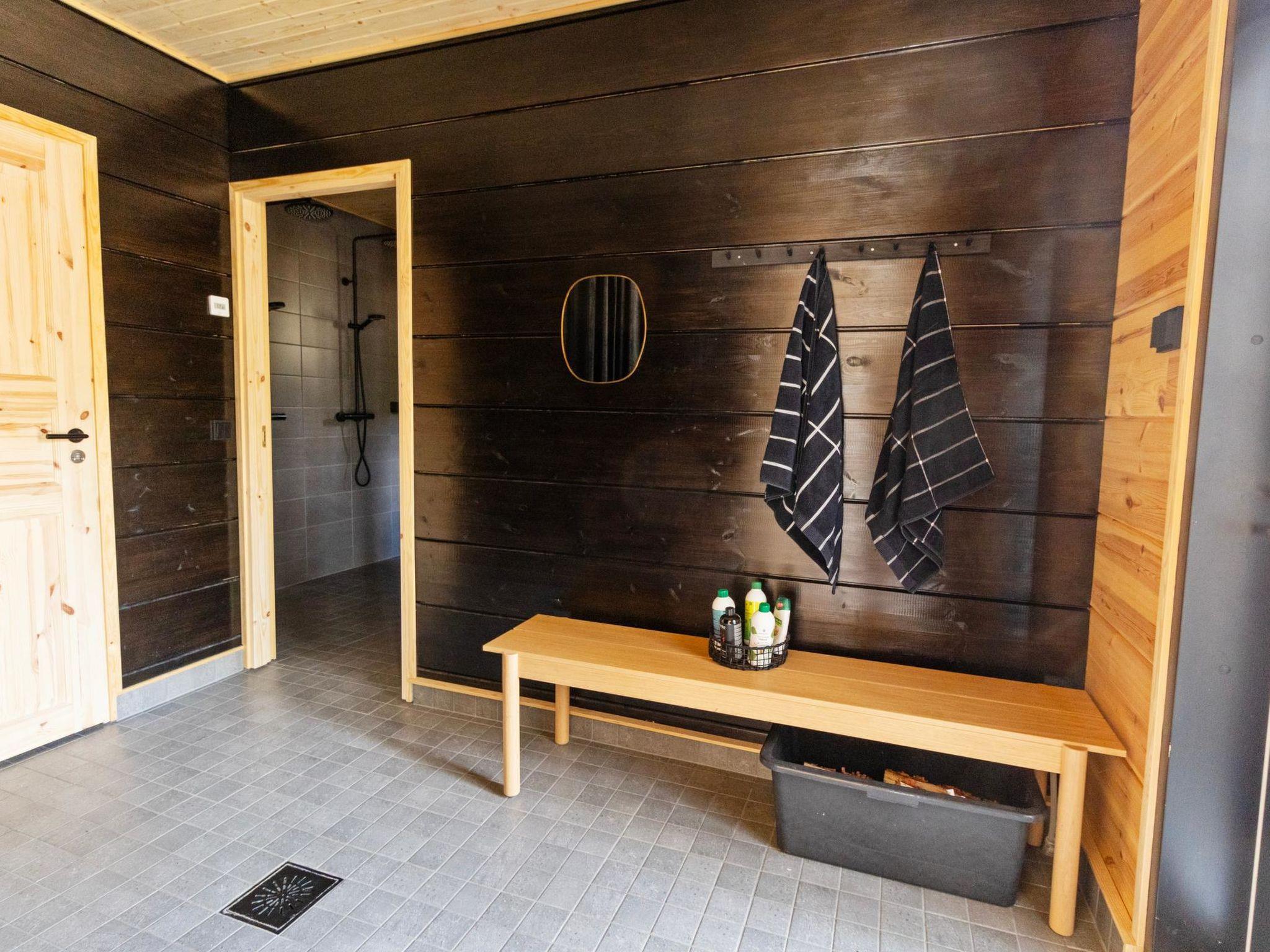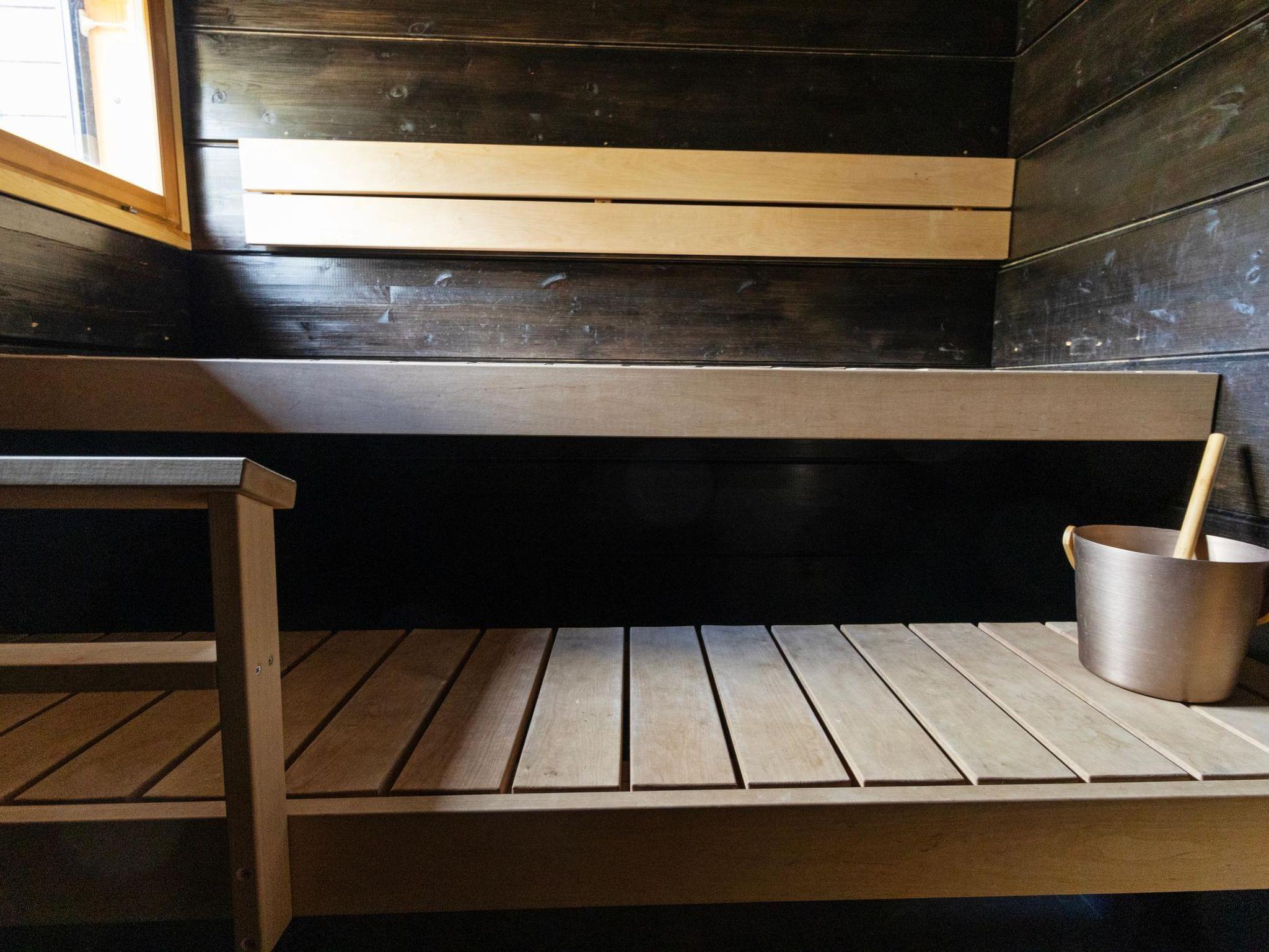 The facilities are designed to enable active holidays as well as complete relaxation: the hall has enough space for ski shoes and outerwear, as well as a drying cabinet for wet hats and gloves; the living room has a large sofa for enjoying the view and the fireplace. Even large group can enjoy dinner at the dining table; the sauna warms up slowly and is wood-heated. From the sauna, there is direct access to the terrace. The bedrooms can be conveniently combined or separated from the common spaces by using sliding doors.