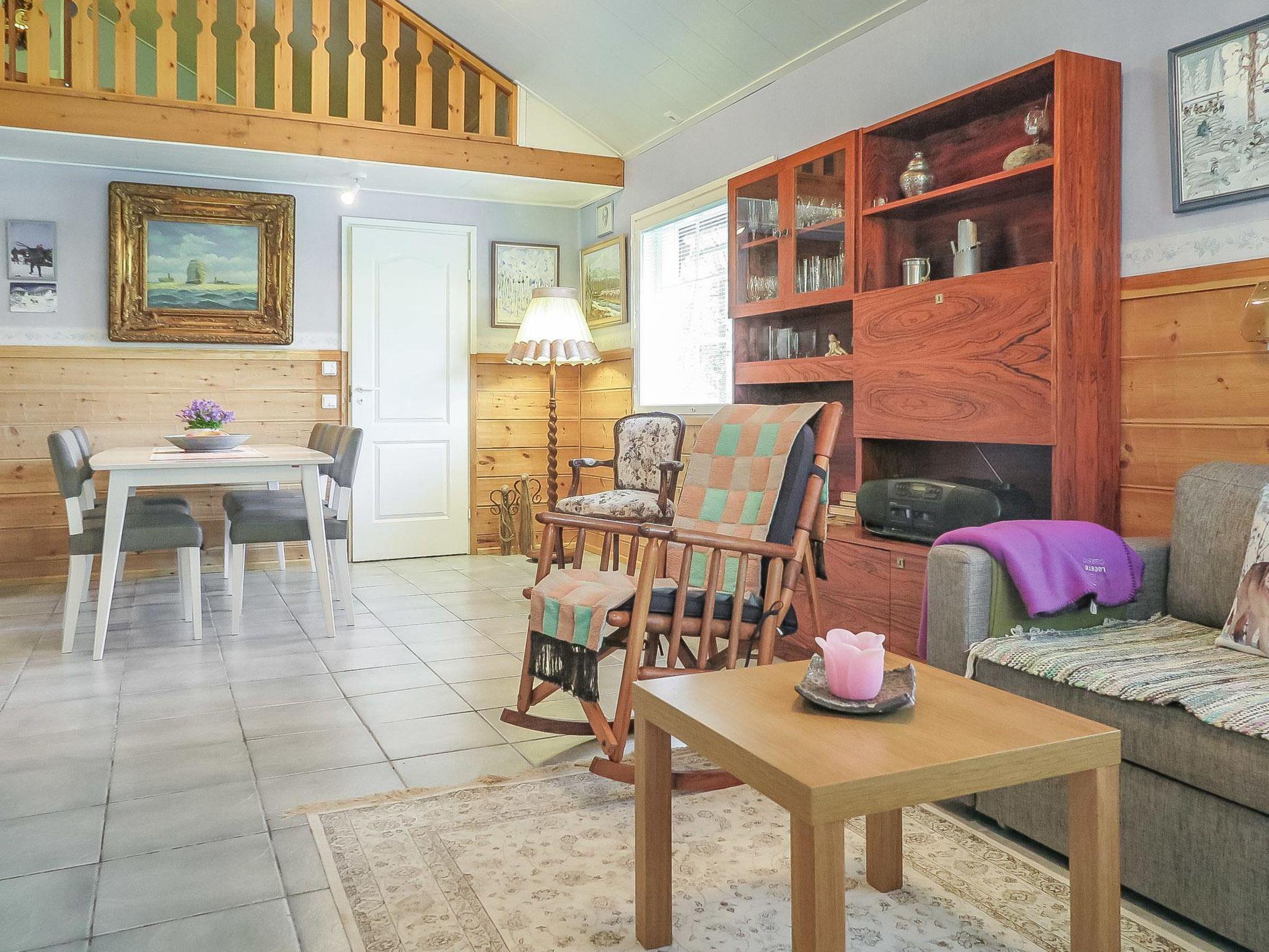 Log cabin, paneled inside, built in 2003. Living room/kitchen, 2 bedrooms with a double bed in each, 2 lofts with a total of 2 single beds, steep stairs to lofts. 2 toilets, one of them is in connection of bedroom. Sauna, bathroom / toilet, veranda, balcony and terrace.