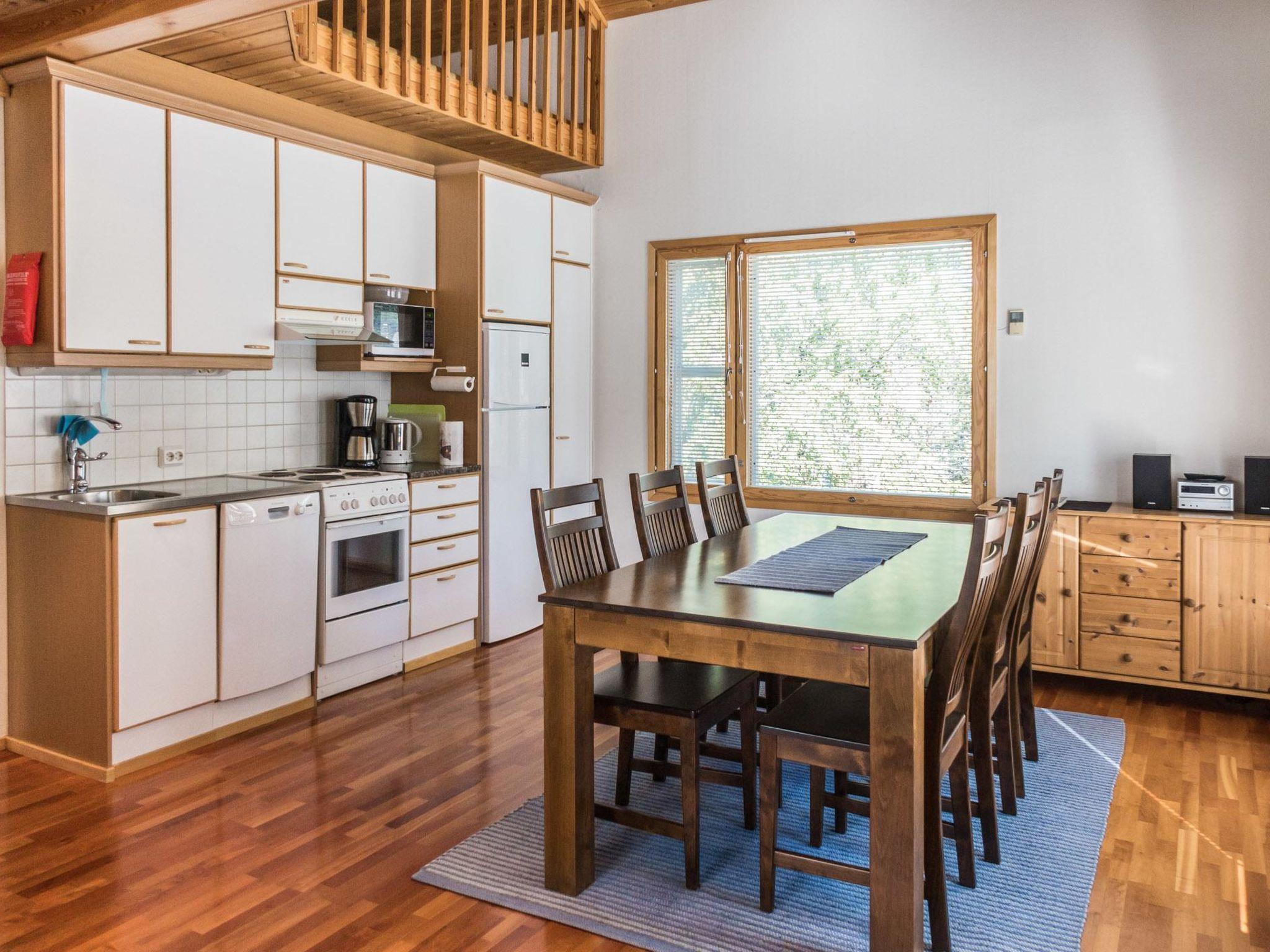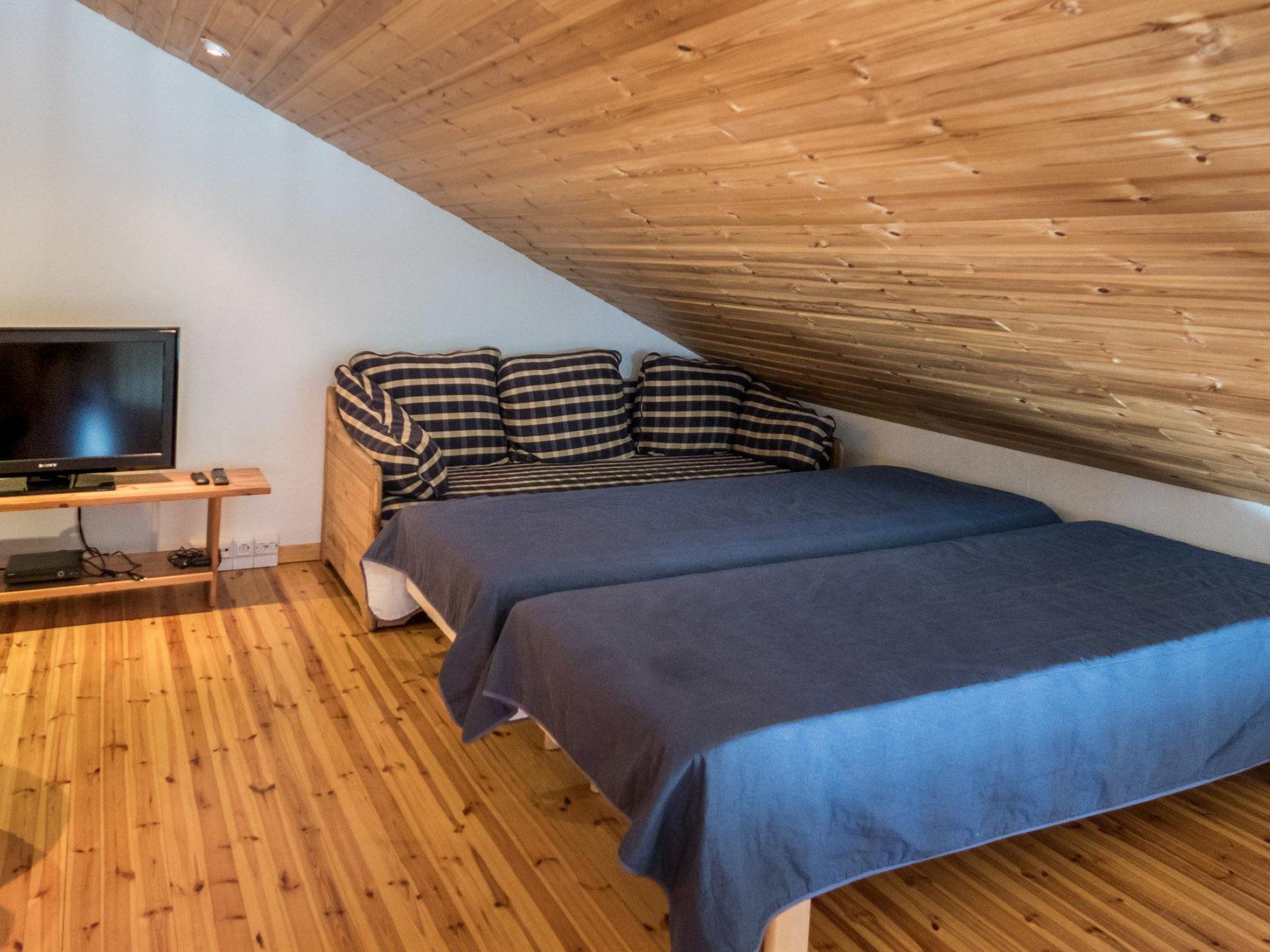 Latukatti apartment floor area is 50 m², loft 20 m². On the ground floor there is combined living room & kitchen and one bedroom with twin bed. Upstairs there are 2 x twin beds, wc. Sauna (electric heating), washroom (2 shower s) and wc.