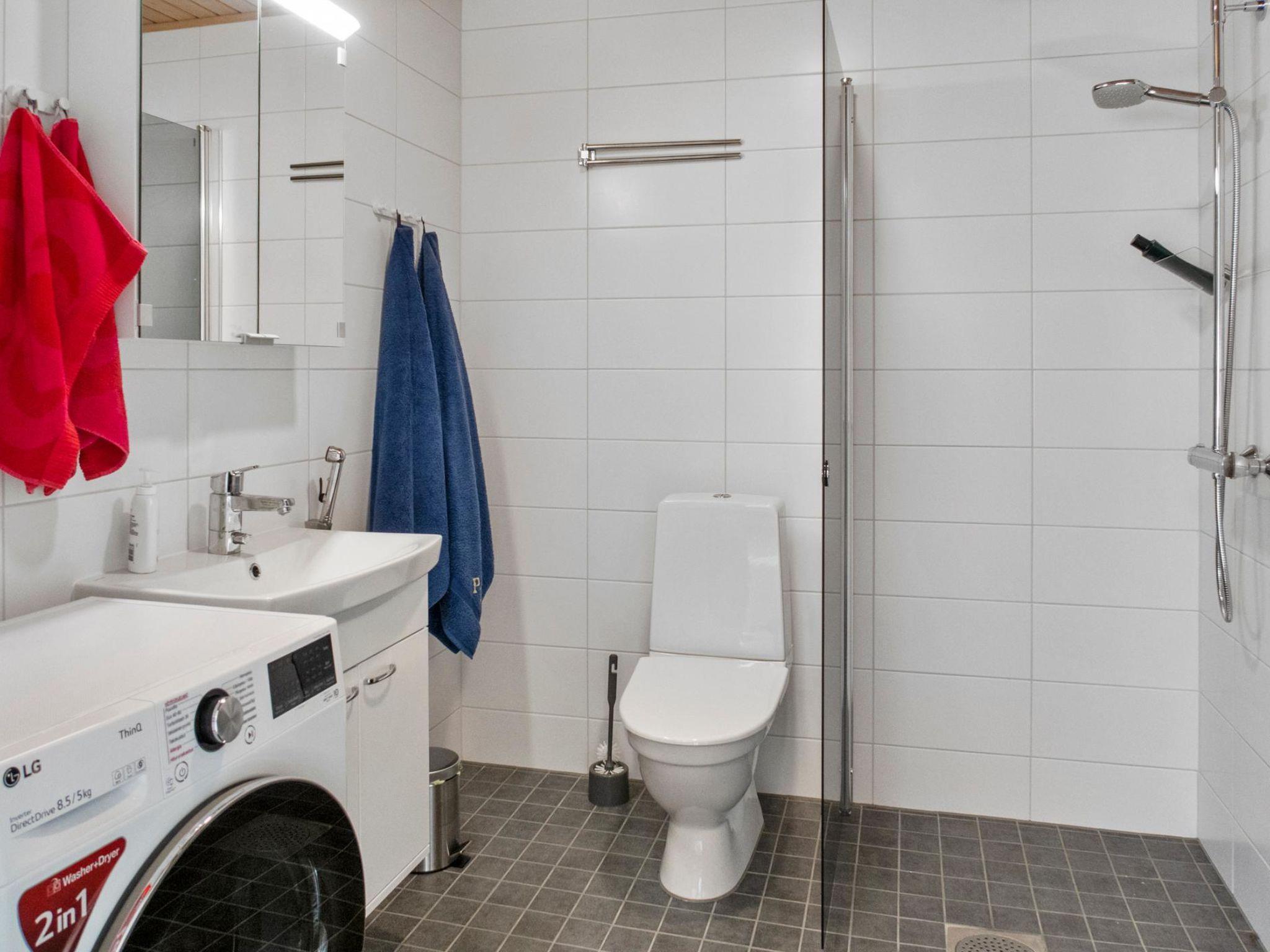 Sauna (electric sauna stove), washroom/WC. Access from the kitchen to spacious terrace. Glazedt 8,5 m² terrace with furnitures. There is also warm ski maintenance room on the ground floor (for shared use). Washing machine with drying function. Children's equipment will be delivered if necessary.