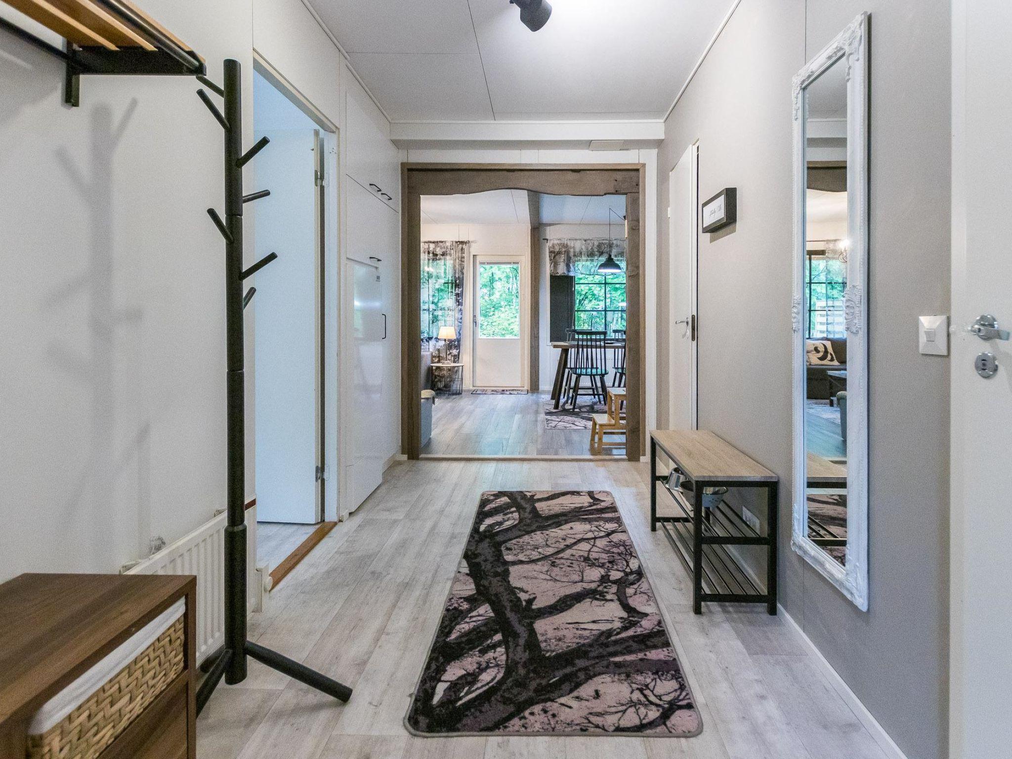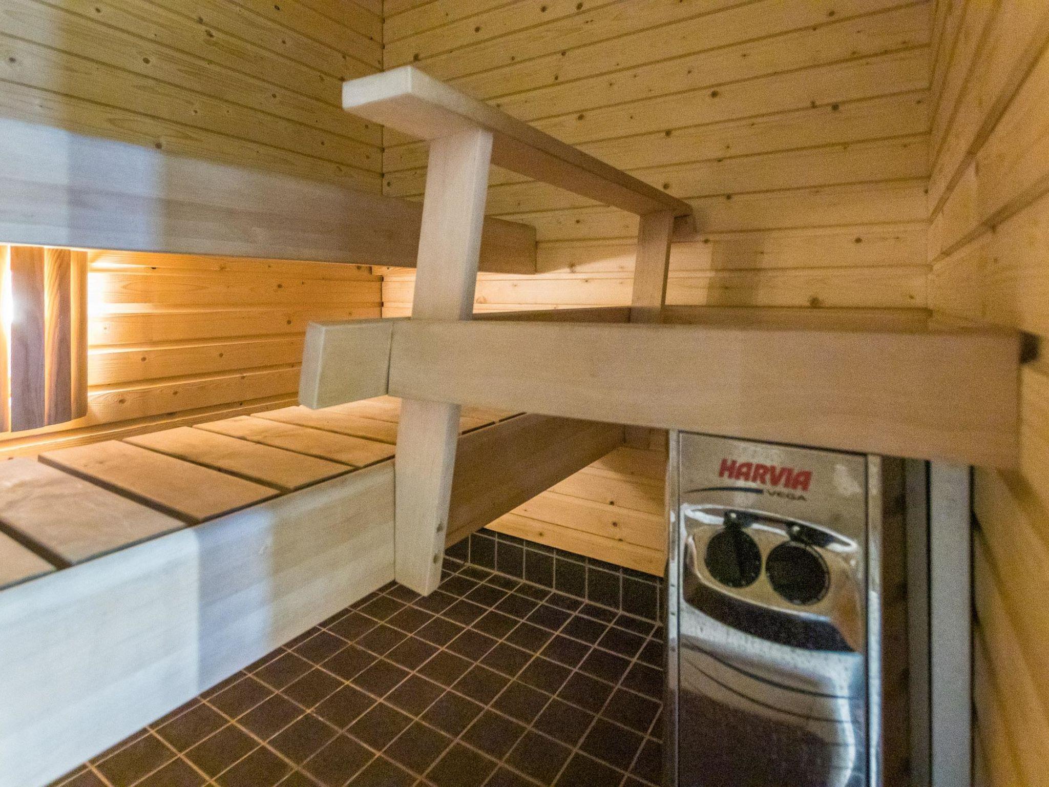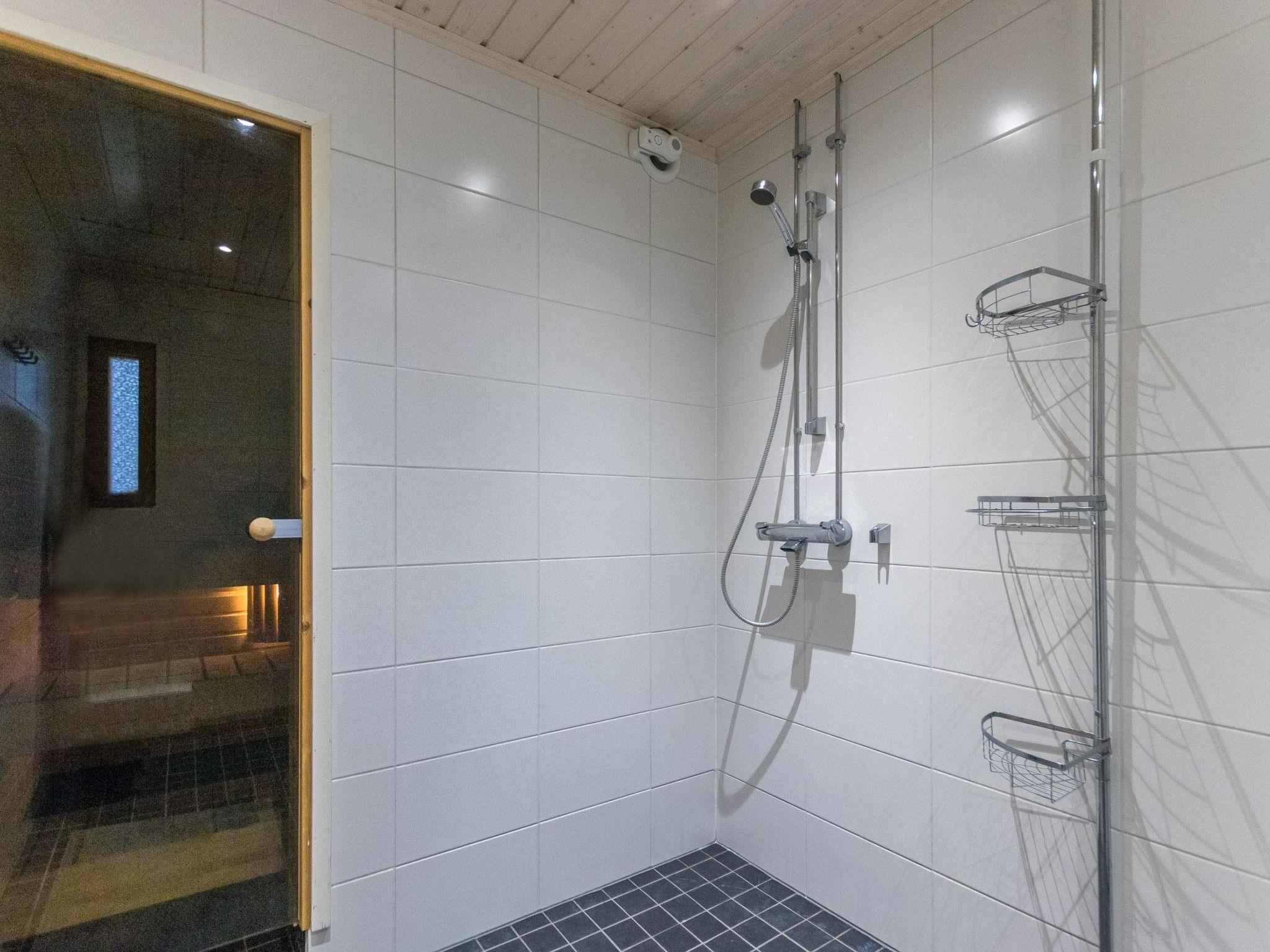 Separate toilet, washroom, sauna (with electric stove). There is a washing machine and a drying cabinet. The dressing room connected to the bedroom has storage space, and in addition, the spacious hallway has plenty of space for outdoor equipment.