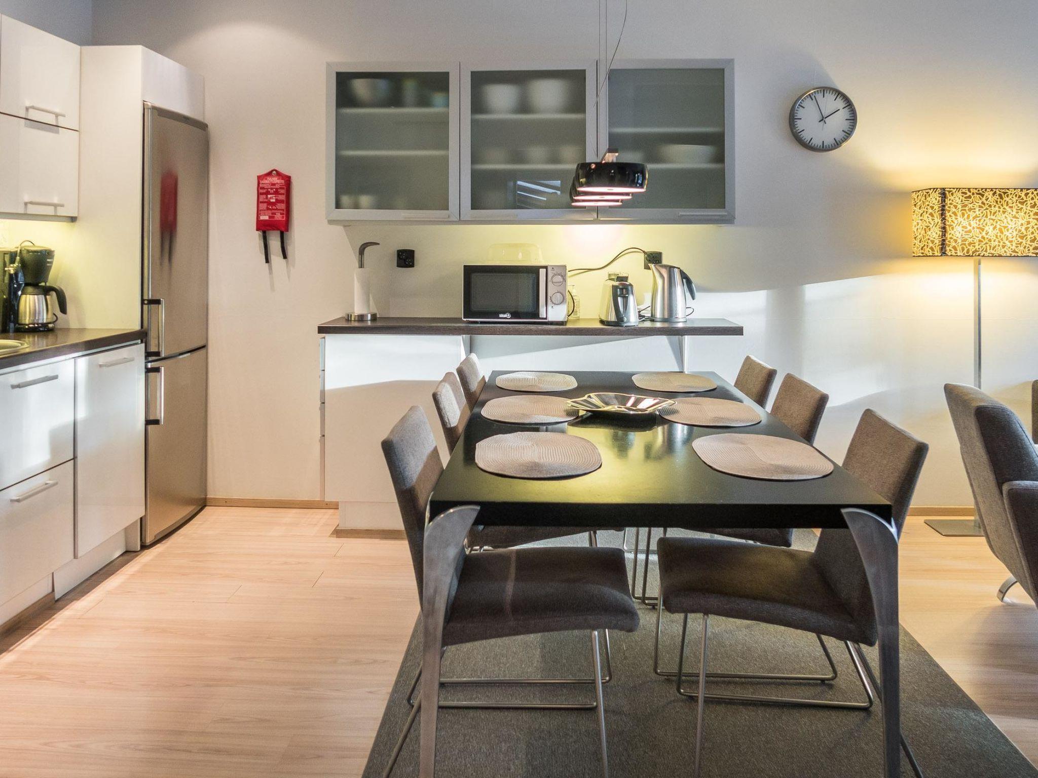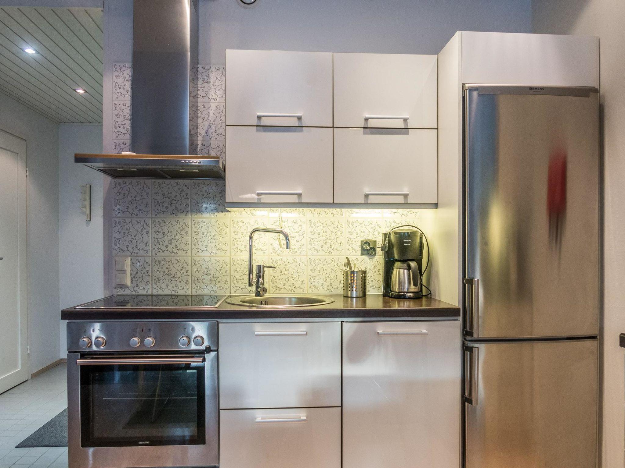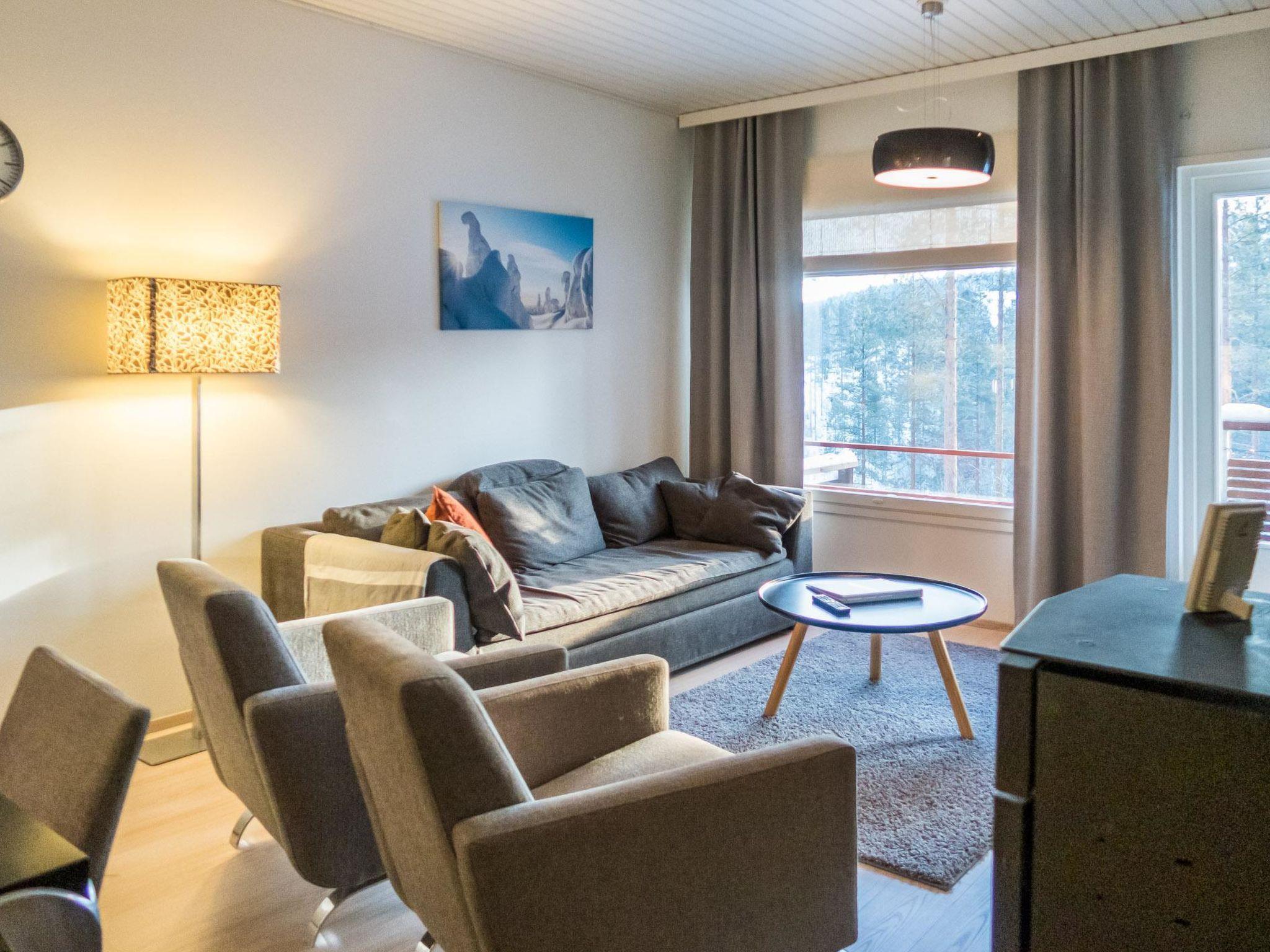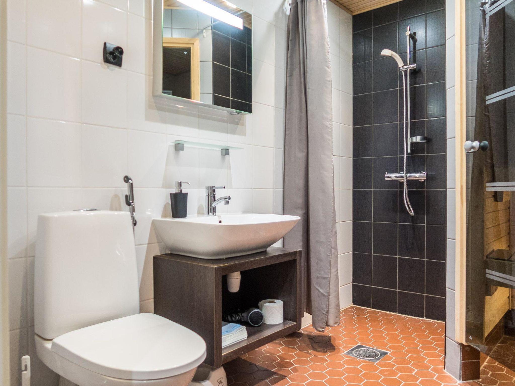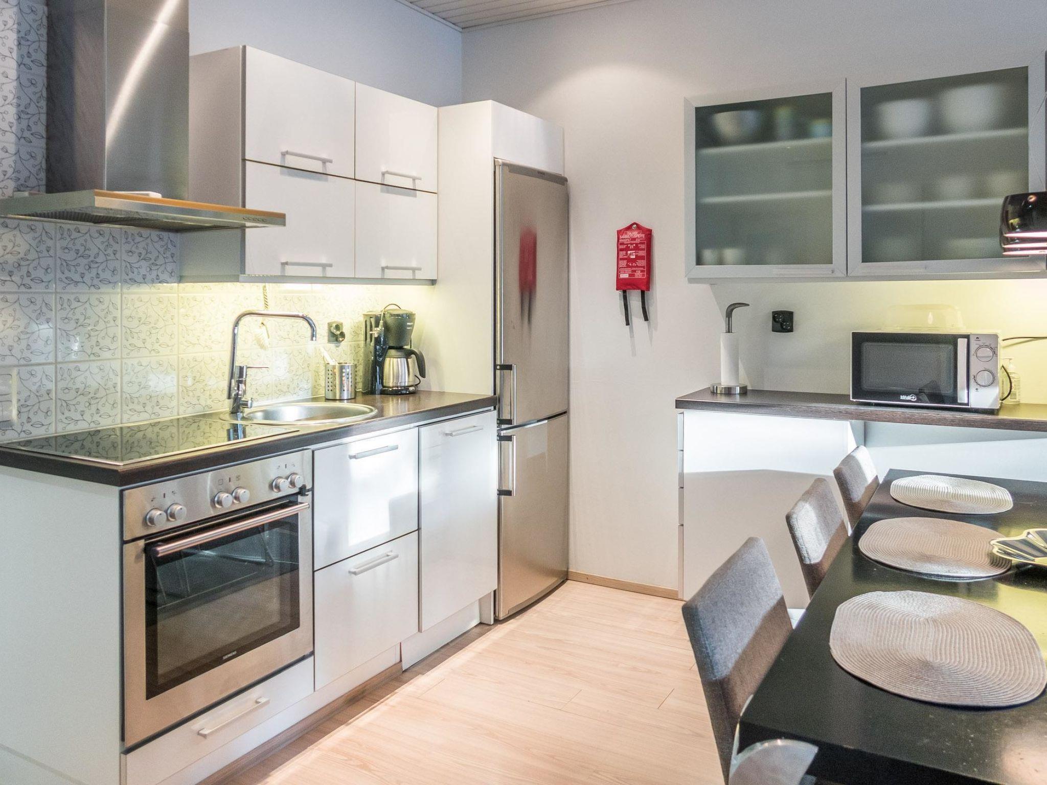 A cozy holiday apartment built in -08 in a two-story cabin house located in the center of Vuokatti. The apartment is located on the lower floor (balcony at ground level). The area of ??the apartment is 62 m² on one level - a kitchen-living room with a sofa bed for 1-2 guests, a dining area for 6 and a light fireplace. Sleeping areas in two bedrooms, one with a double bed (180cm), and the other with separate beds for two (90cm). Sauna (electric stove), shower/toilet and separate toilet. Access to the balcony from the living room, with patio furniture for 4. The apartment has a view of the slopes of Vuokatti, facing the forest.