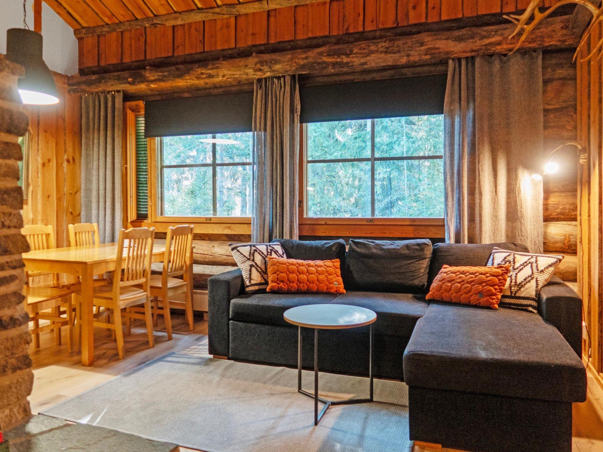 This log row house apartment is located in Vuokatti ski centre. Floor area 48 m², loft 15 m² (sloping ceilings, low room height, steep stairs). Combined living room & kitchen, with sofabed for two persons. Loft with separate beds for four . Sauna (electric heating), washroom/toilet. Lockable ski storage.
