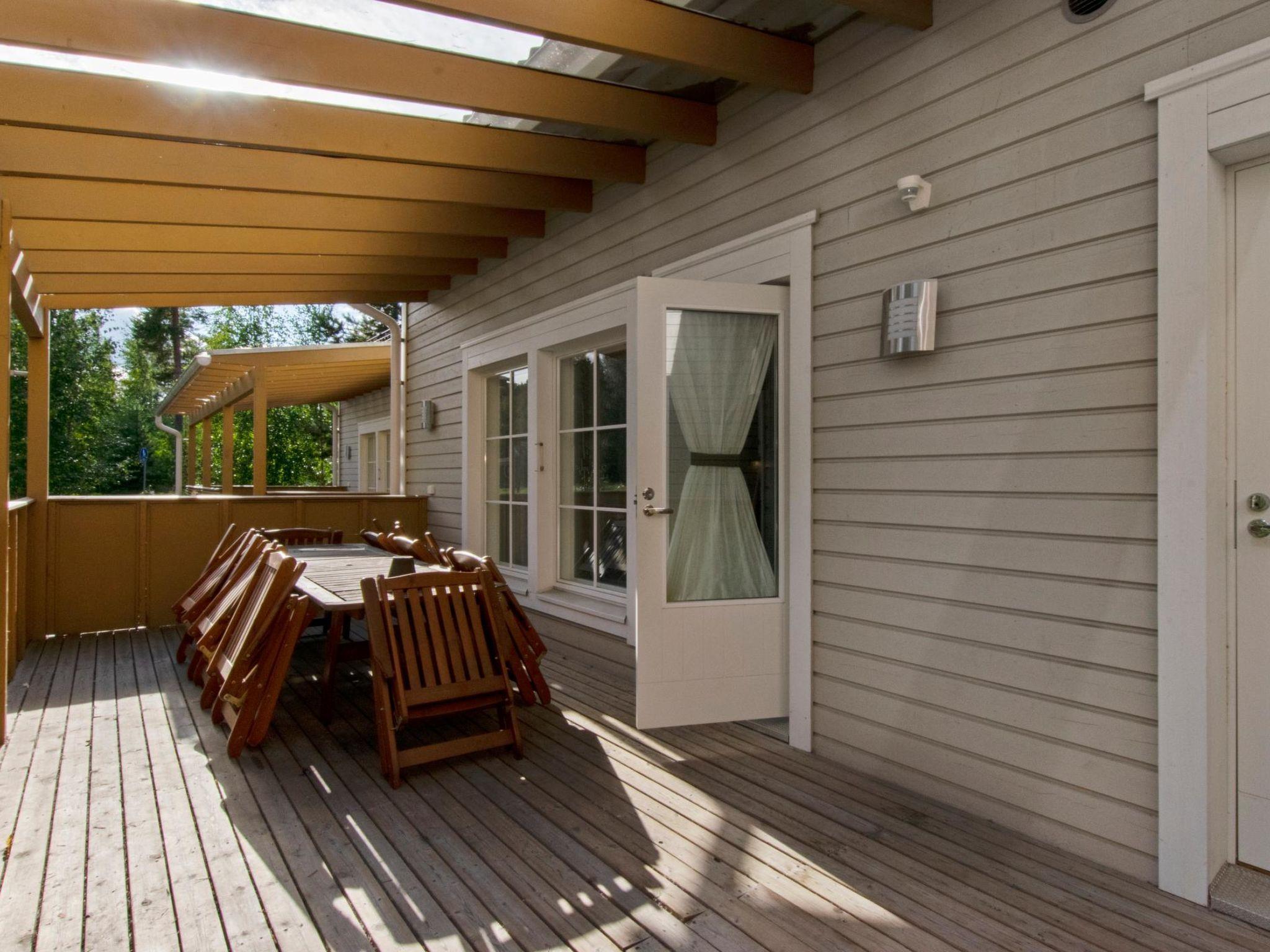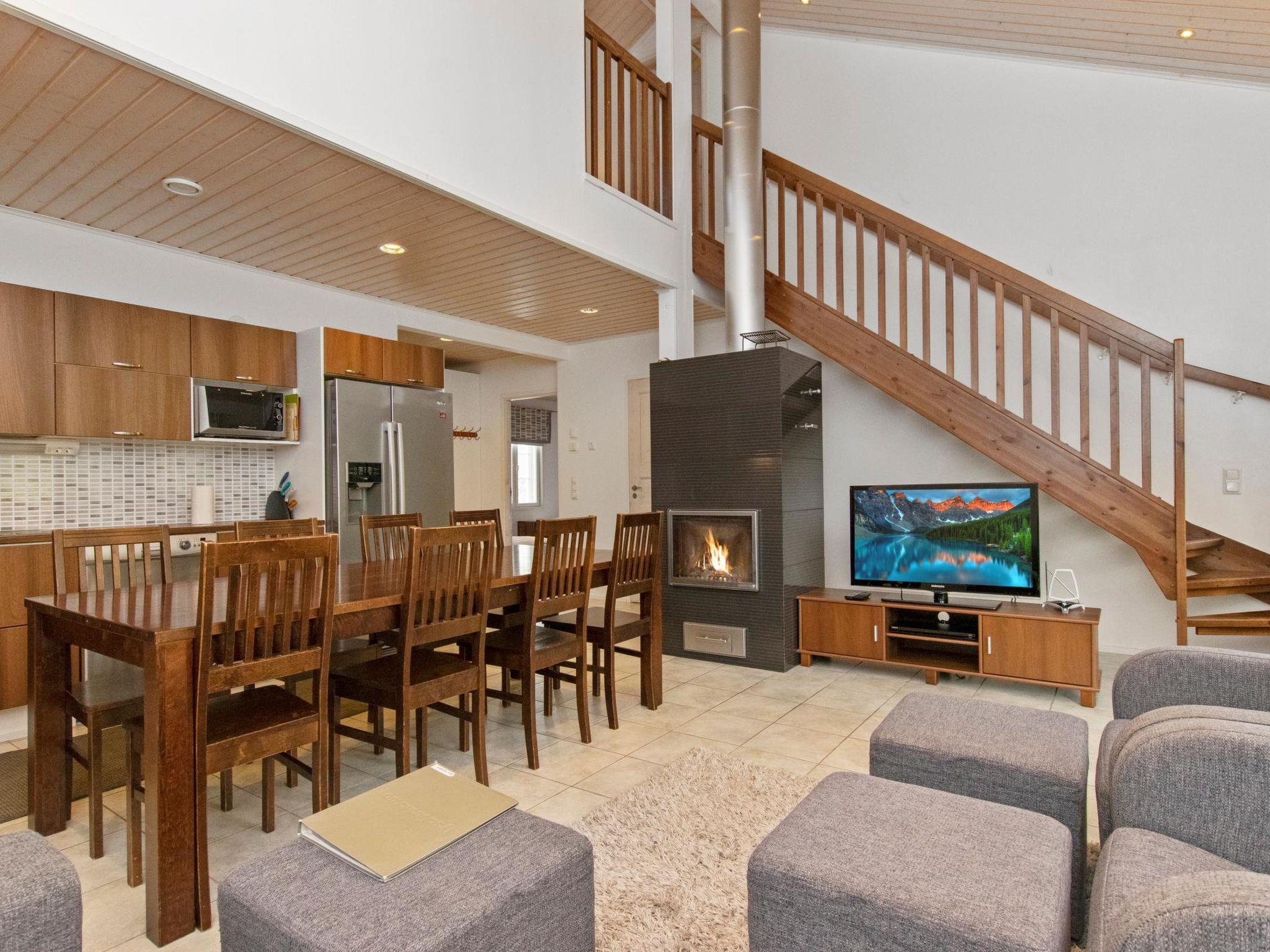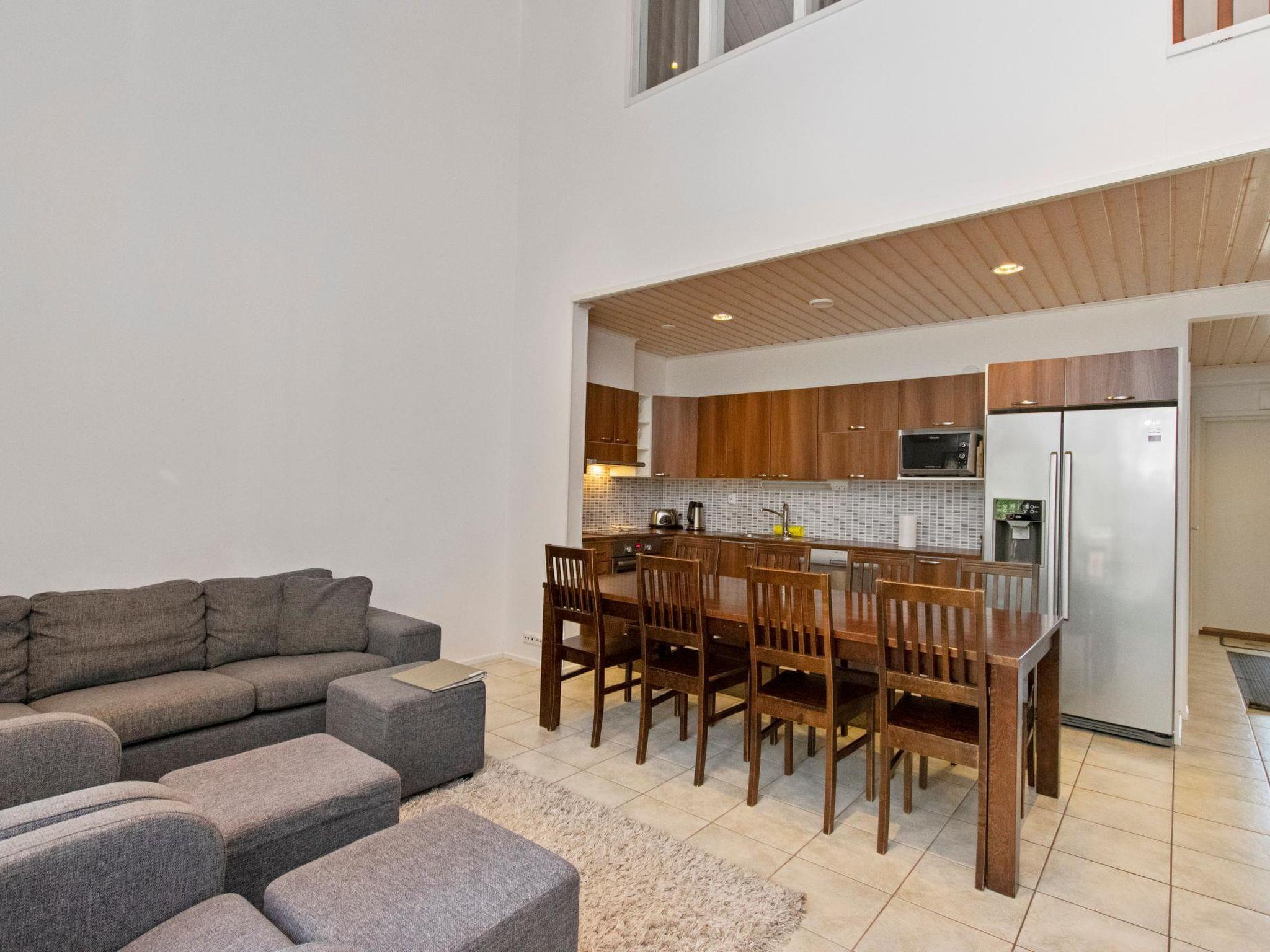 This row house apartment was completed in December 2010. Located near the Vuokatti skislopes. Floor area 110 m². On the ground floor there is living room, kitchen, 2 bedrooms, sauna (electric heating), washroom, hydro massage bath, toilet, household room with toilet. Upstairs; 2 bedrooms, loft, toilet, shower. Terrace. Dvd/Blyray player. Equipment for a baby: travel bed and canvas chair.