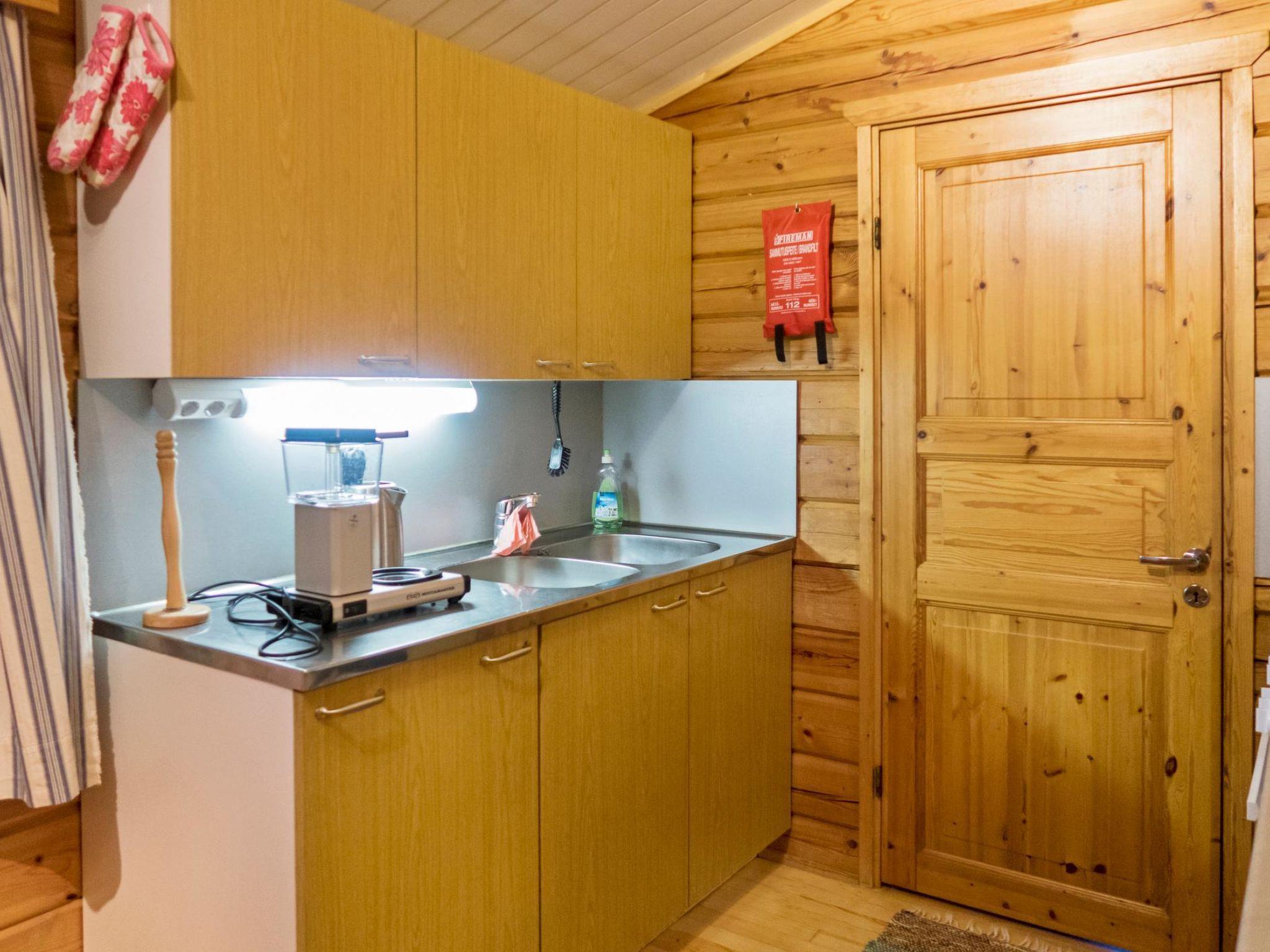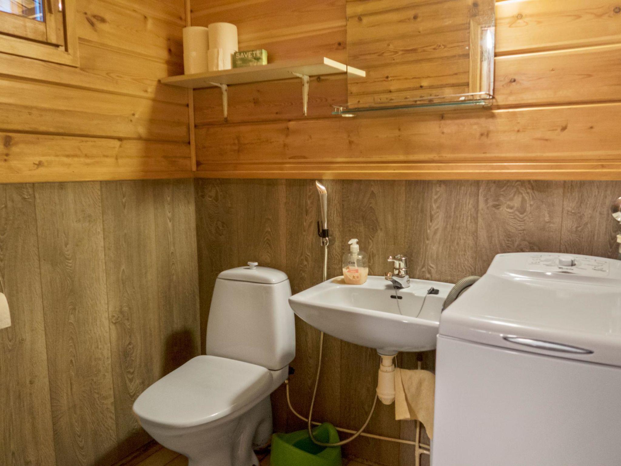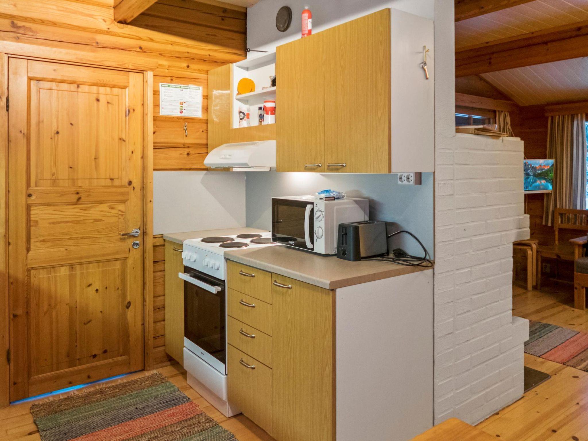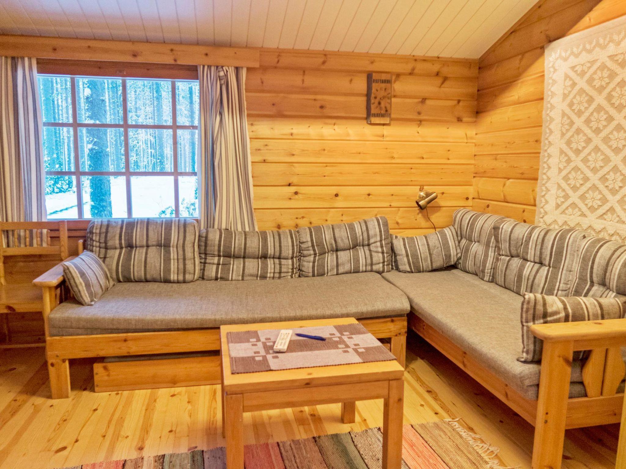 This log cottage by the Lake Pikku-Valkeinen in Välikoski area in Sotkamo was completed in 1993. Floor area 57 m². Kitchen, living room with beds for three, bedroom with separate beds for two. Sauna (electric heating), washroom, separate toilet.