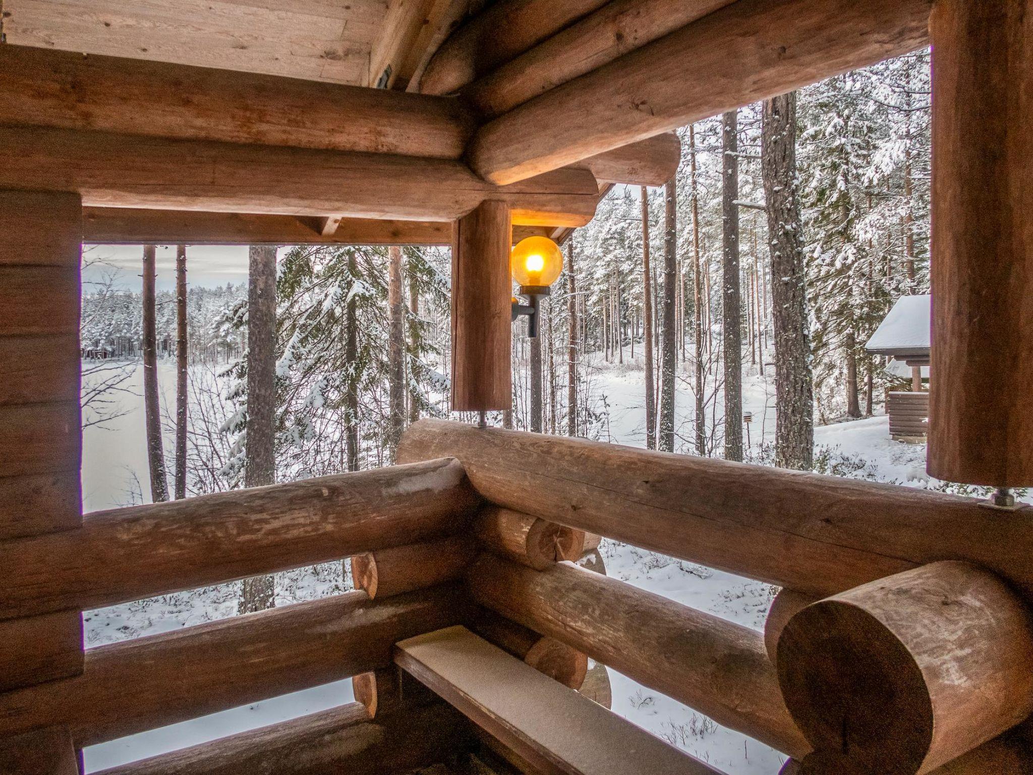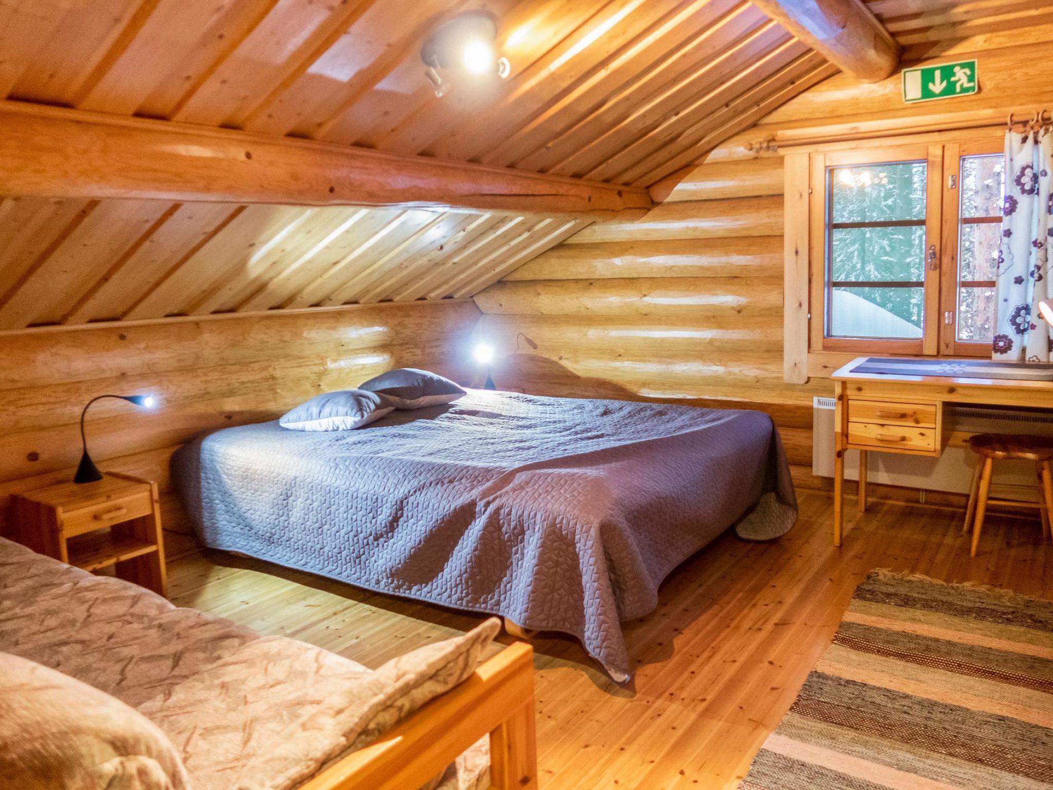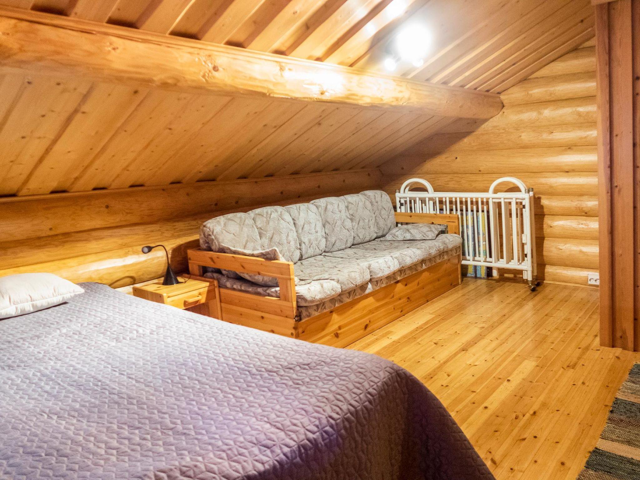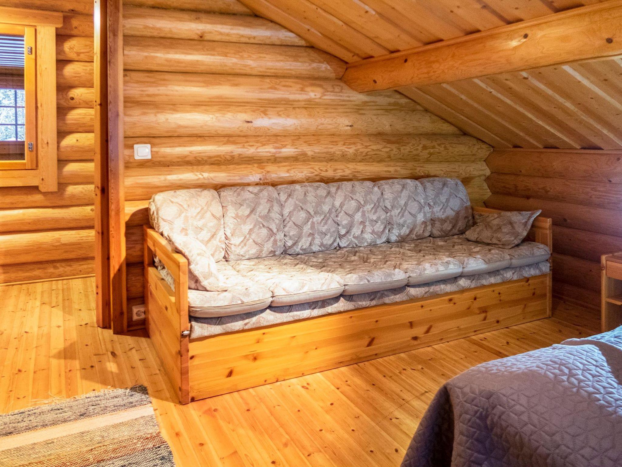 This log cottage by the small Lake Ylä-Valkeinen in Välikoski area in Sotkamo was completed in 1993. Floor area 120 m². Combined living room & kitchen, with sofa bed for 1-2 person, loft with two bedrooms, both with 2 beds + sofa bed for 1-2 persons. Sauna (electric heating), washroom, dressing rom, toilet. Porch.