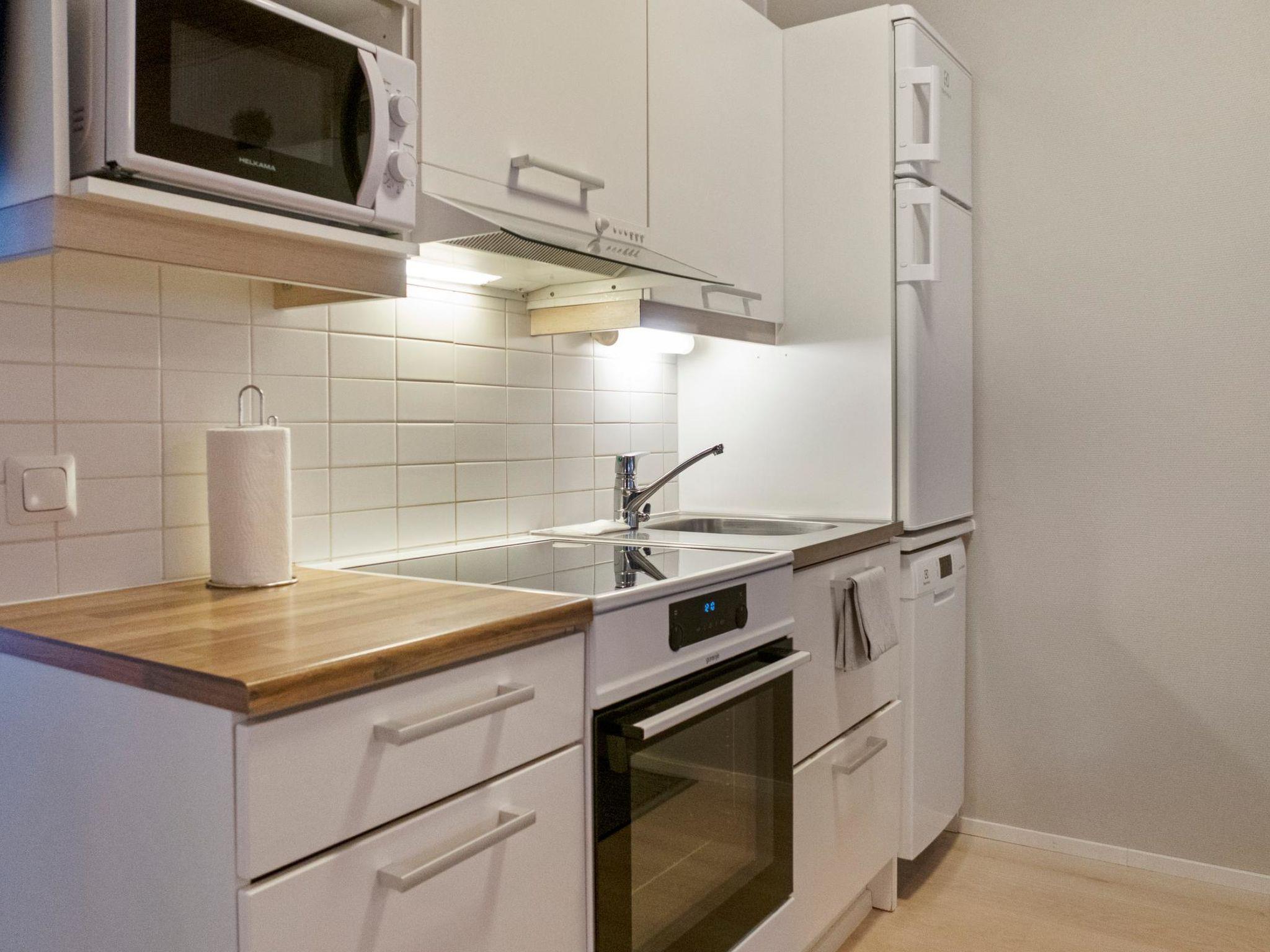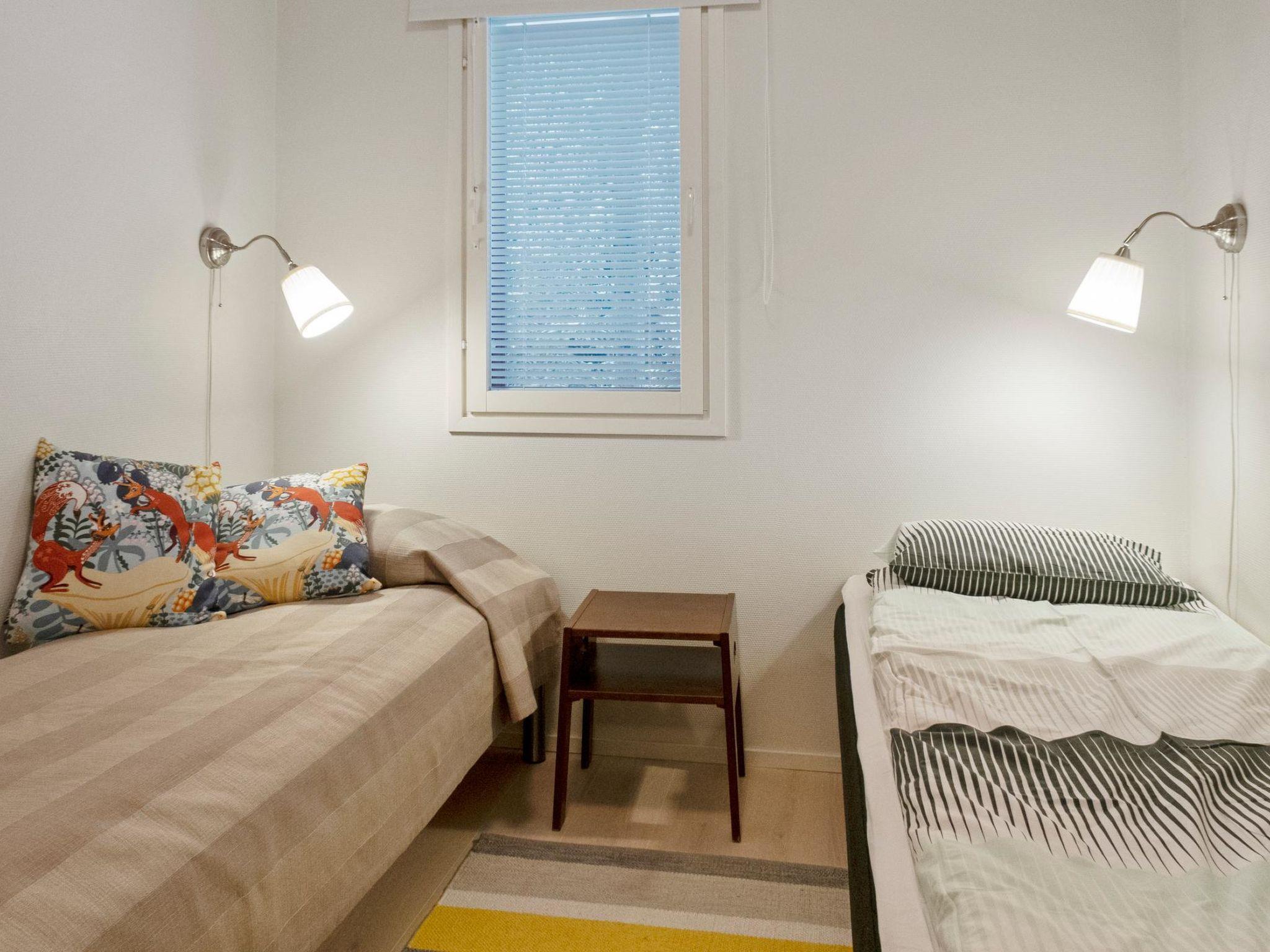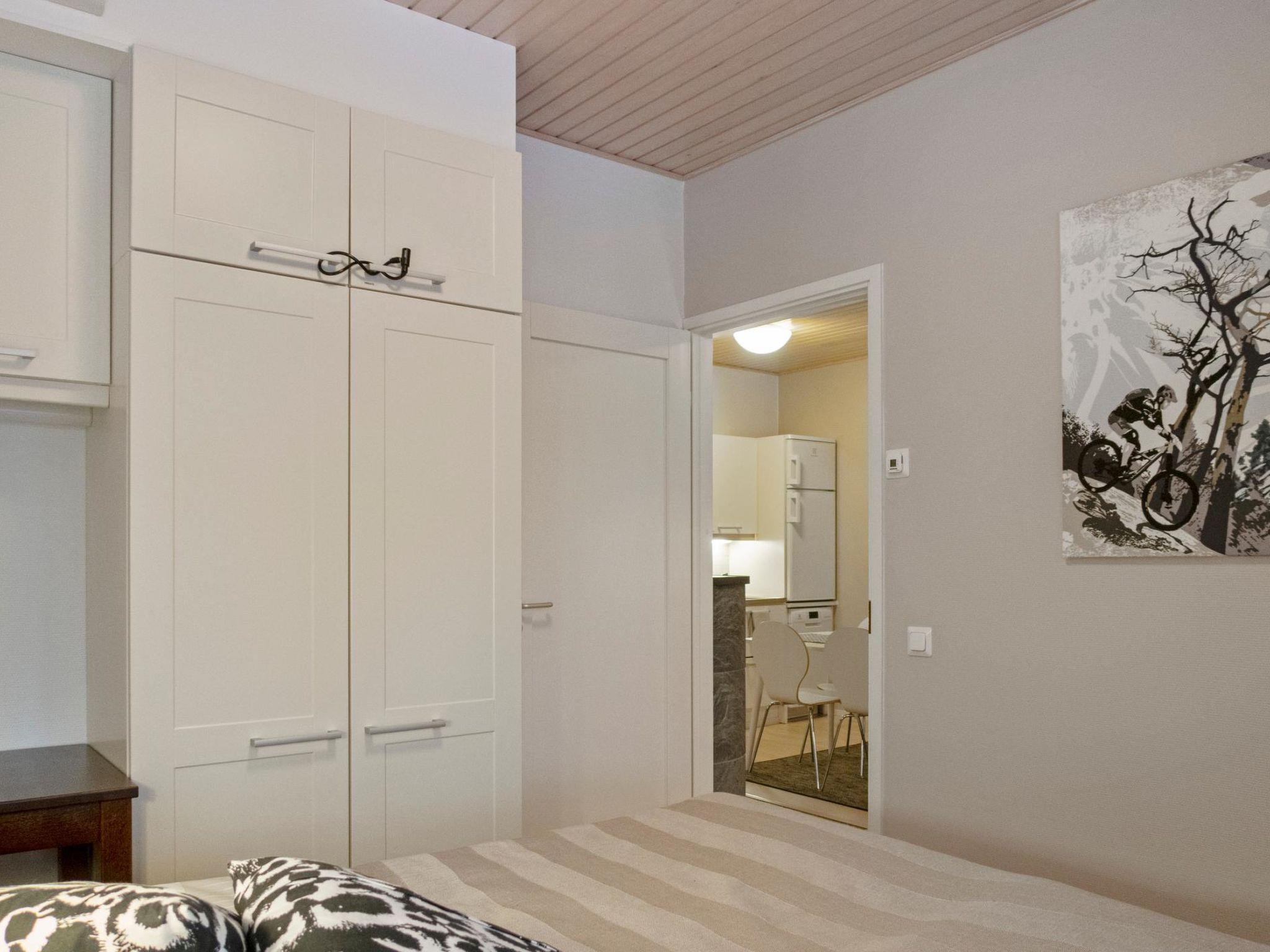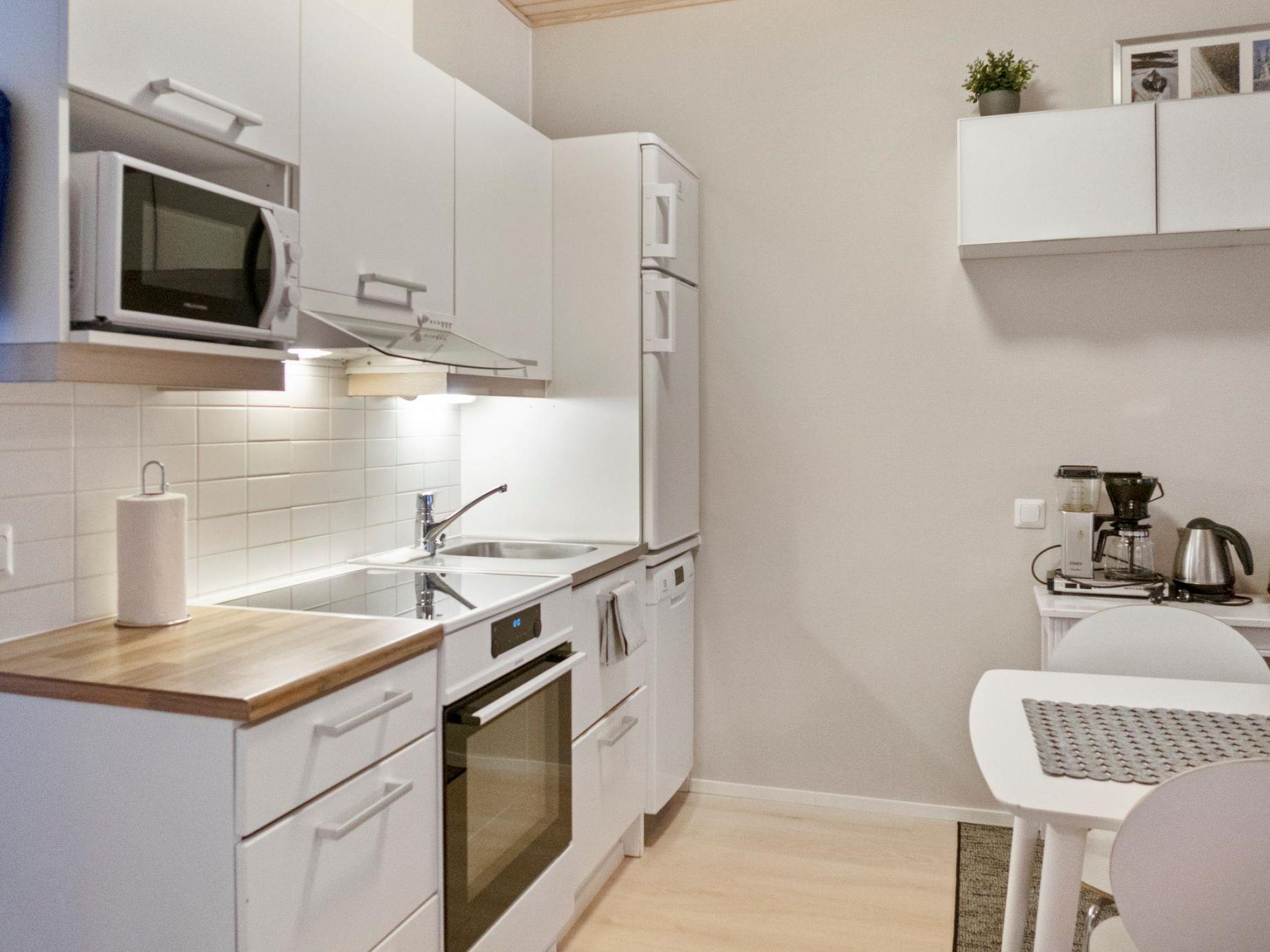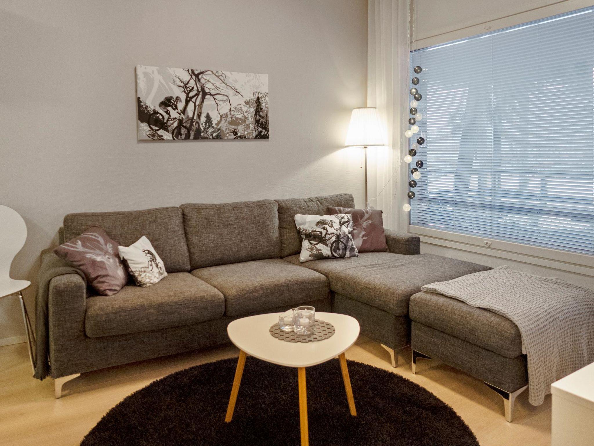 AINO apartment is 50 m² on one level. Bright living room/kitchen, windows and balcony facing the slopes of Vuokatti. Two bedrooms, one bedroom has a double bed and the other has separate beds for two. Washroom/toilet, sauna (electric stove). Balcony with furniture for 4 and a gas grill in use during the summer season.