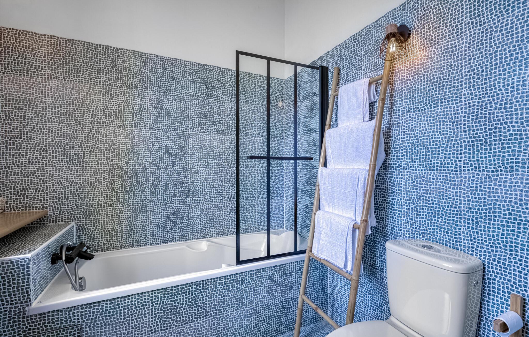 Slå er ner på terrassen med direkt havsutsikt. Ät frukost under parasollet eller luta er tillbaka i en av solstolarna. Den stora trädgården sträcker sig till kusten, där en liten grind ger direkt tillgång till stranden. Använd den murade grillen för en utomhusmiddag med utsikt över vattnet.