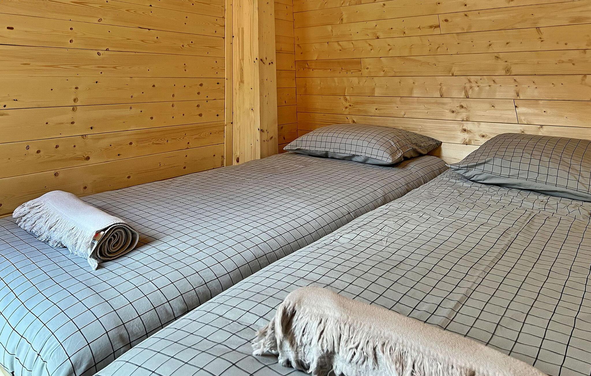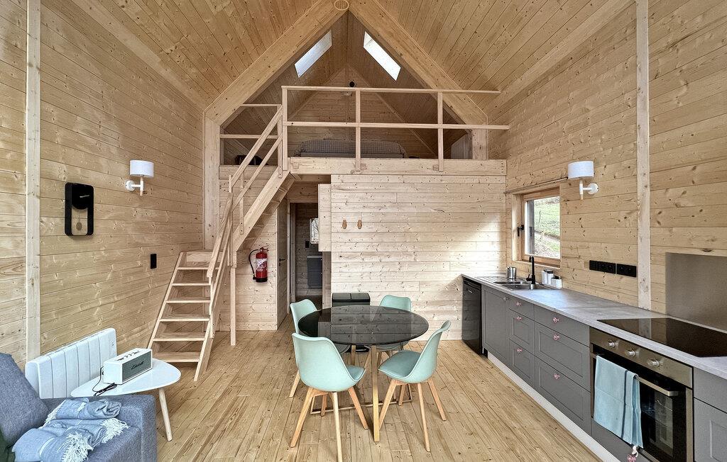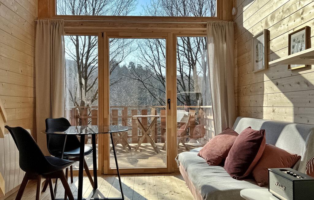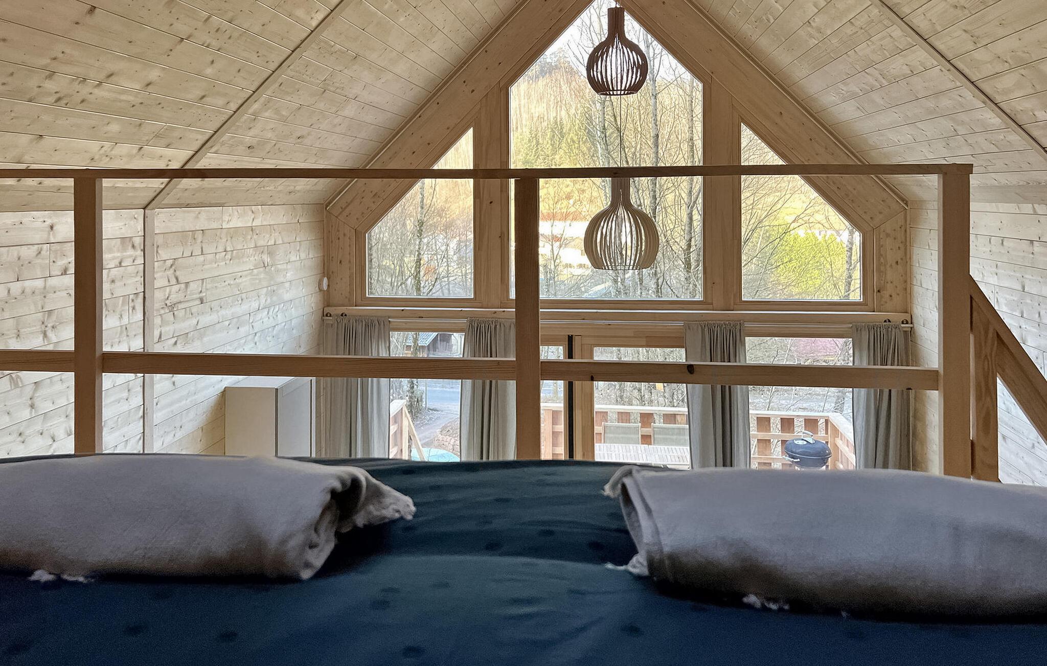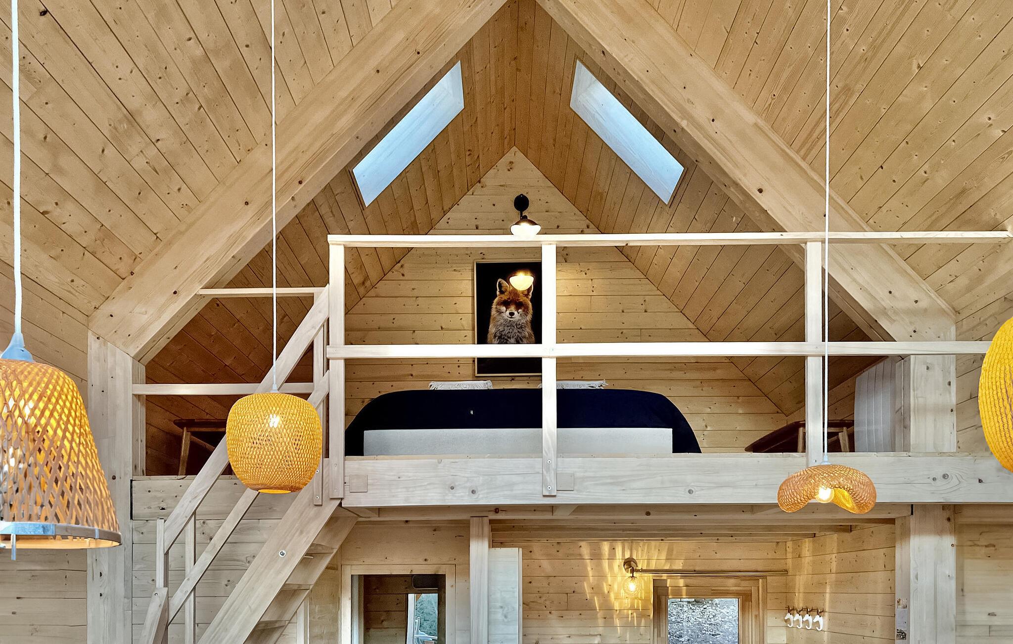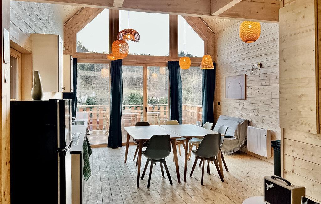 Upptäck den lugna charmen med en semester i trälodge i Saint-Quirin, inbäddat i Moselle Vosges, där natur möter komfort. Boendet består av tre olika lodger i skogsbrynet med fantastisk utsikt över dalen. Lodge 1 fungerar som huvudlodge för två personer. Den rymliga matsalen och terrassen inbjuder till umgänge. Den är ca 47 m² stor och har ett vardagsrum med bäddsoffa, ett välutrustat kök, ett duschrum och ett sovrum med öppen planlösning på mezzaninvåningen med panoramautsikt. Lodge 2 är också ca 47 m² stor och kan bekvämt rymma fyra gäster. Vardagsrummet har en förtrollande utsikt, medan det finns ett sovrum på bottenvåningen och ett andra sovrum på mezzaninvåningen med fantastisk utsikt över dalen. Lodge 3 är 23 m² stor och har plats för två gäster. Köket, vardagsrummet med tillgång till en terrass med fantastisk utsikt över dalen, ett duschrum och en mezzanin erbjuder komfort och fantastisk utsikt. Varje lodge har en privat terrass med grill och är den perfekta platsen att njuta av det pittoreska landskapet och äta middag utomhus. Observera att Lodge 1 har en öppen mezzanin utan skiljeväggar mellan vardagsrummet och sovrummet. I logerna 2 och 3 finns säkra trappor till mezzaninerna utan trappsteg. Upplev lugnet och skönheten i Moselle Vosges i dessa ljusa, rymliga och oberoende trälodger, som alla erbjuder ett unikt perspektiv på den lugna omgivningen i dalen. Byn och dess restauranger ligger inom gångavstånd. I grannstaden Sarrebourg kan du upptäcka Mosels historiska arv. Naturälskare kan besöka den enastående djurparken Sainte Croix eller hyra cyklar i byn för att utforska skogsstigarna. Stugorna är också utgångspunkten för många promenader och vandringar. Bröddepå, delikatessaffär och cykeluthyrning i byn. Sommarevenemang och julmarknader i de omgivande byarna får du inte missa.