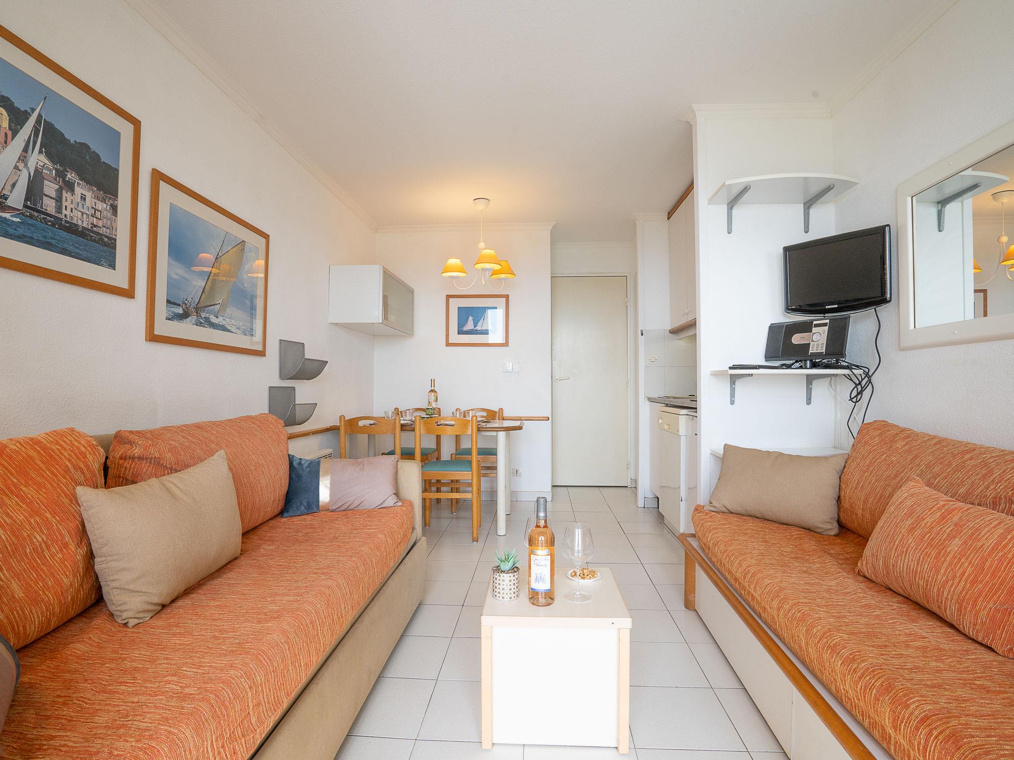 "Le Belvédère(R3 221)", 1-room studio 28 m2. Object suitable for 2 adults + 2 children. Living room with 1 pull-out bed (2 x 80 cm, length 190 cm), TV (flat screen), CD-player. Exit to the terrace. Sleeping alcove with 1 x 2 bunk beds (80 cm, length 190 cm). Kitchenette (4 hot plates, dishwasher, toaster, kettle, microwave, electric coffee machine). Bathroom, sep. WC. Electric heating. Terrace 8 m2. Terrace furniture. Beautiful view of the sea. Facilities: Internet (WiFi, extra). Parking (1 car). Please note: non-smokers only. Smoke alarm. Instead of an enclosed bedroom, some sleeping areas are located in an open-plan area (gallery, alcove, etc.). Offer by a private individual according to Art. 155, IV of CGI.