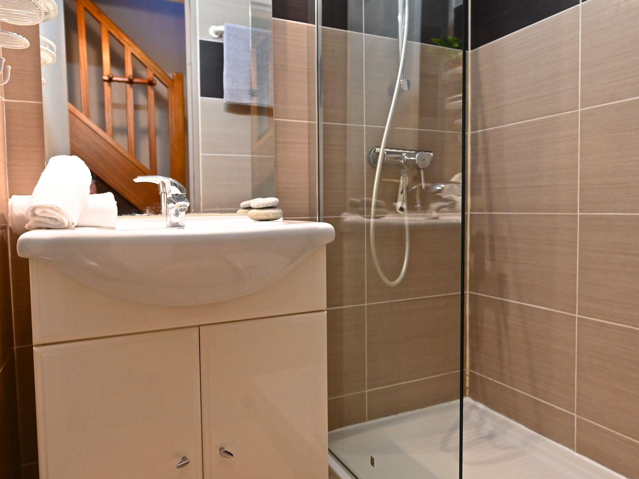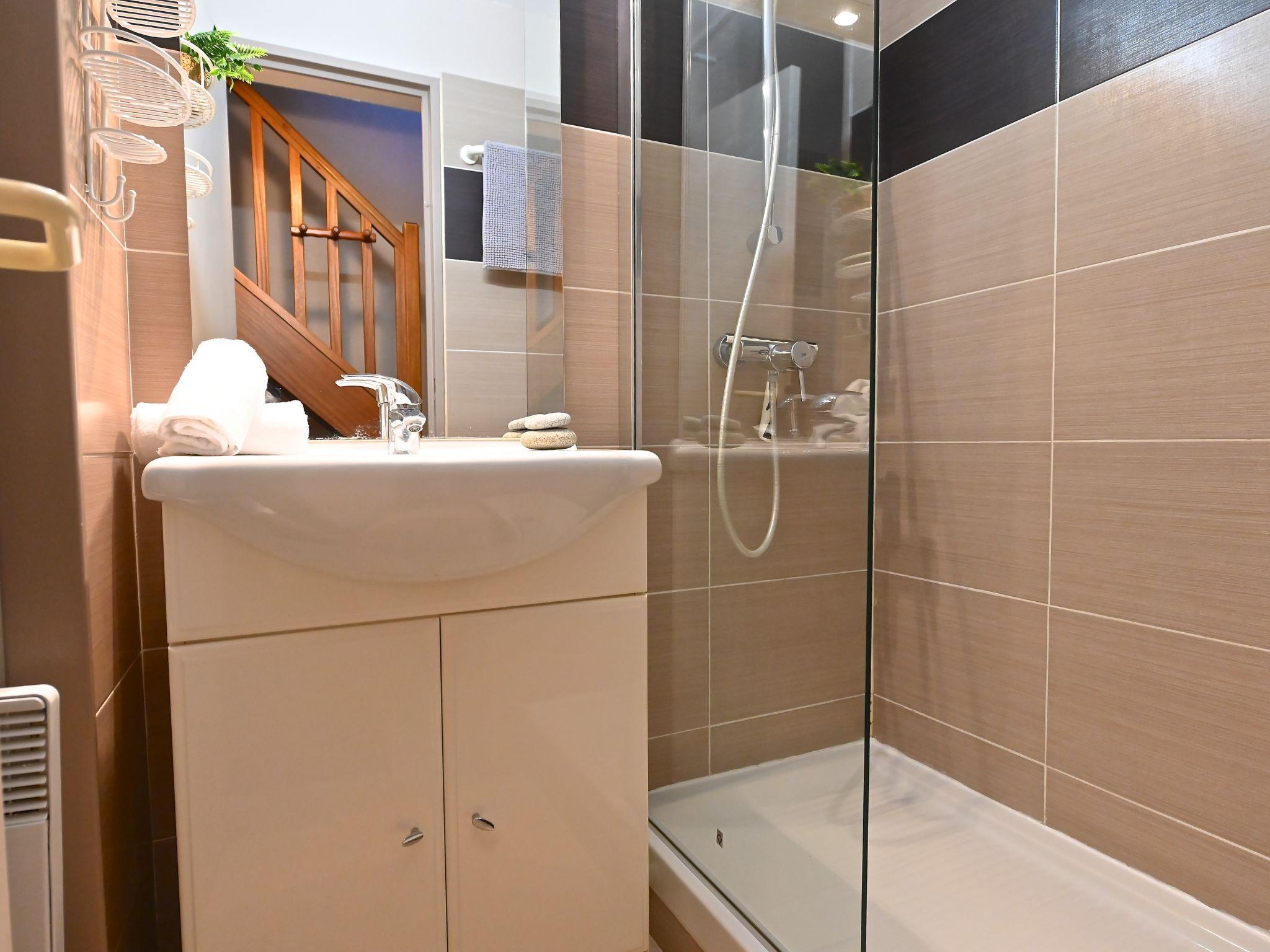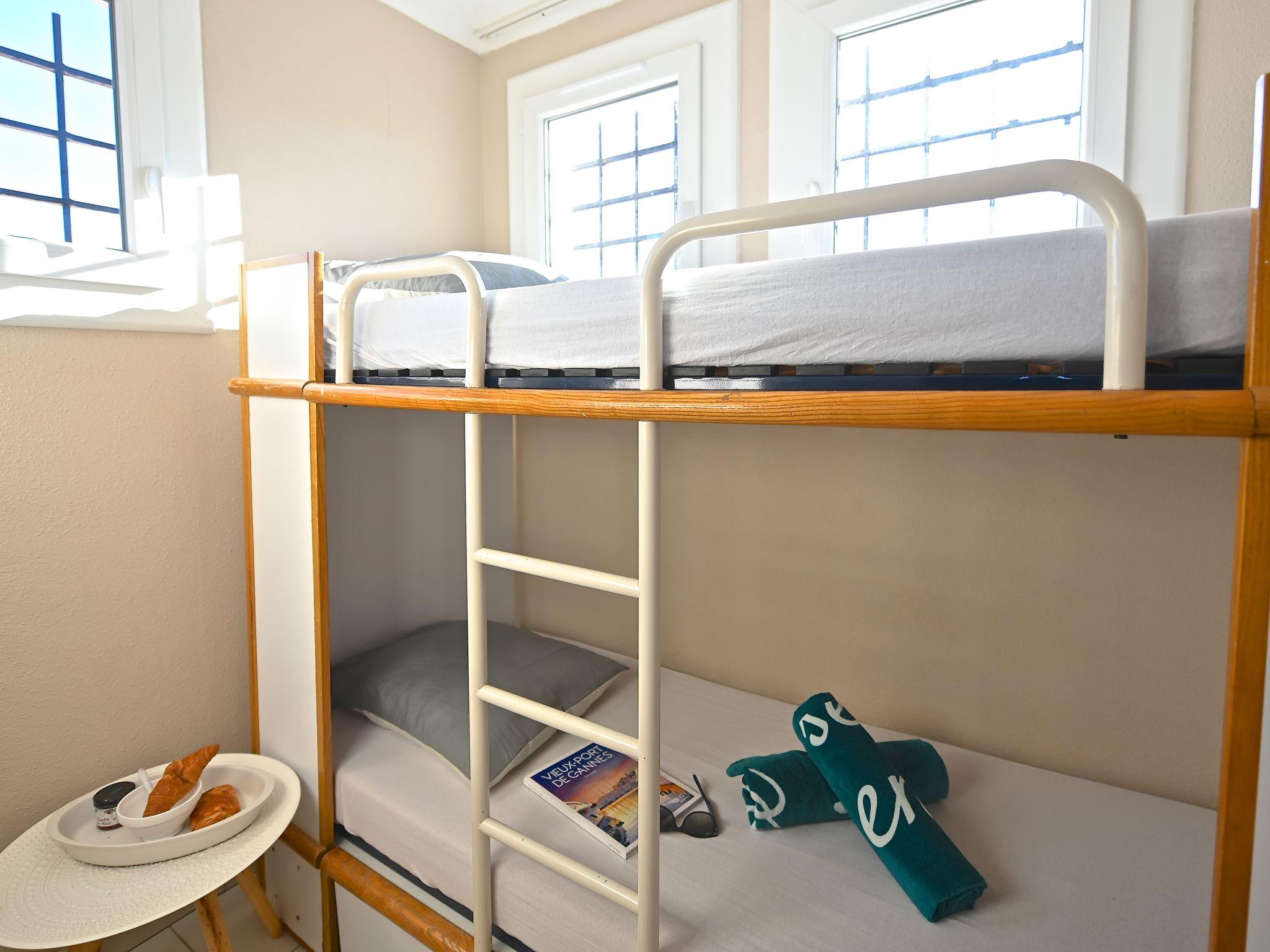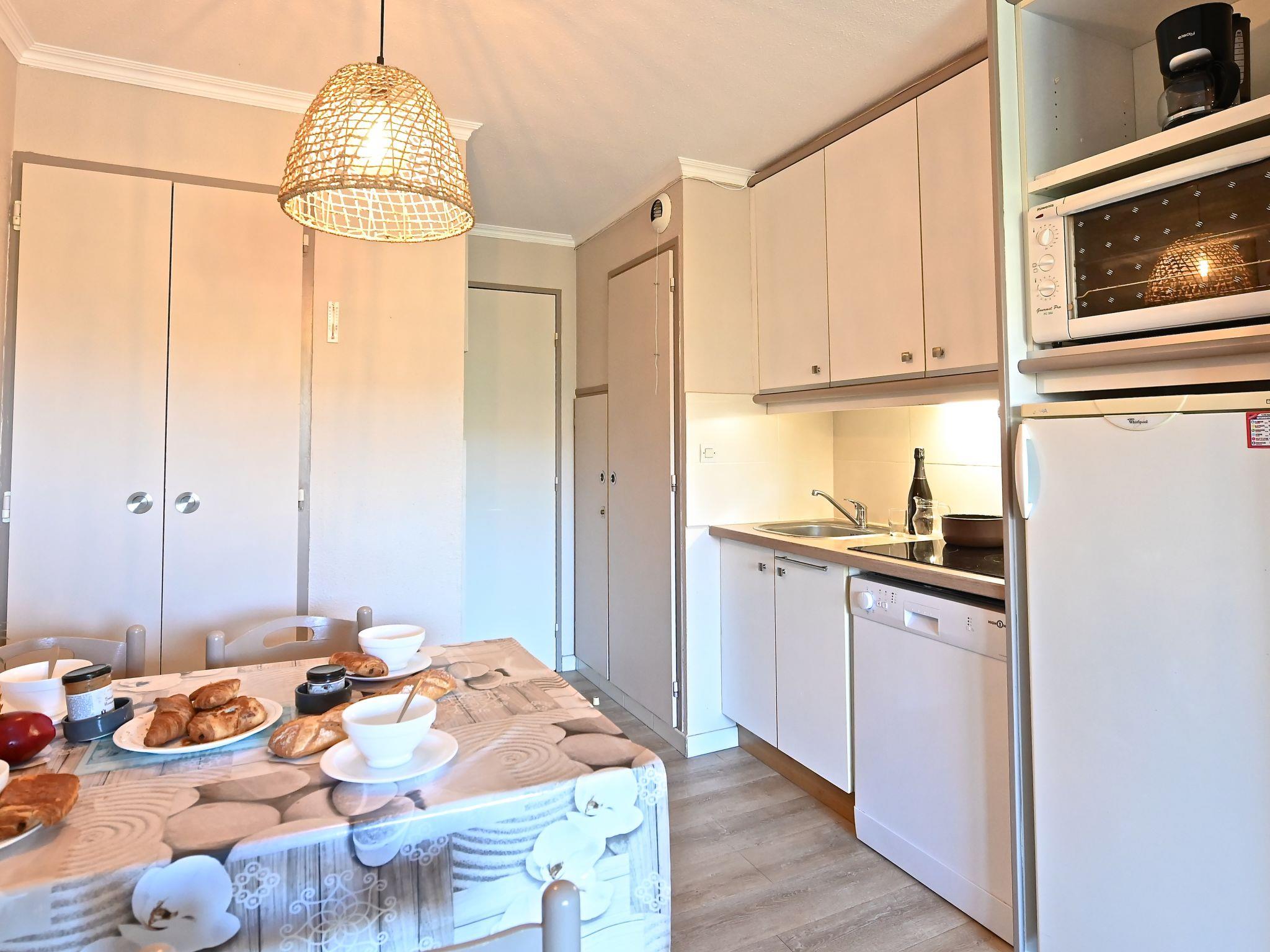 "Le Belvédère V1 202", 3-room apartment 37 m2 on 2 levels on 1st floor. Partly renovated in 2025, comfortable furnishings: living room with 1 double sofabed (2 x 80 cm, length 190 cm), TV (flat screen), air conditioning. Exit to the terrace. Kitchenette (dishwasher, 4 ceramic glass hob hotplates, toaster, kettle, microwave, freezer, electric coffee machine). Shower/WC. Upper floor: 1 room with 1 french bed (140 cm, length 190 cm). Exit to the terrace. Sleeping alcove with 1 x 2 bunk beds (80 cm, length 190 cm). Bath/WC. Terrace 15 m2, roofed, east facing position, small terrace 4 m2. Terrace furniture. Side view of the sea and the mountains. Facilities: washing machine. Internet (WiFi, free). Parking space n 2040 (roofed, 1 car), height 180 cm. Please note: non-smokers only. Smoke alarm. Offer by a private individual according to Art. 155, IV of CGI.