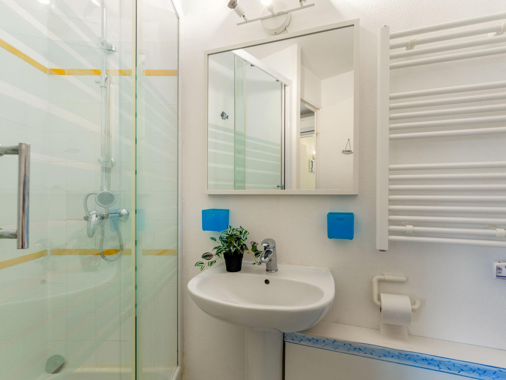 "Le Belvédère (V2 009)", 3-room apartment 43 m2, on the ground floor. Living room with 2 sleeping facilities (80 cm, length 190 cm), TV (flat screen), CD-player, DVD and air conditioning. Exit to the terrace, to the patio. 1 room with 1 french bed (140 cm, length 190 cm), fan. Exit to the terrace, to the patio. 1 room with 1 bed (90 cm, length 190 cm). Kitchenette (4 hot plates, oven, dishwasher, toaster, kettle, microwave, freezer, electric coffee machine). Bathroom, shower/WC. Electric heating, air-conditioning. Terrace 20 m2, patio. Terrace furniture. View of the sea. Facilities: washing machine. Internet (WiFi, extra). Parking space n 2132 (roofed, 1 car), height 180 cm. Please note: non-smokers only. Maximum 1 small pet/ dog allowed. Smoke alarm. Offer by a private individual according to Art. 155, IV of CGI.