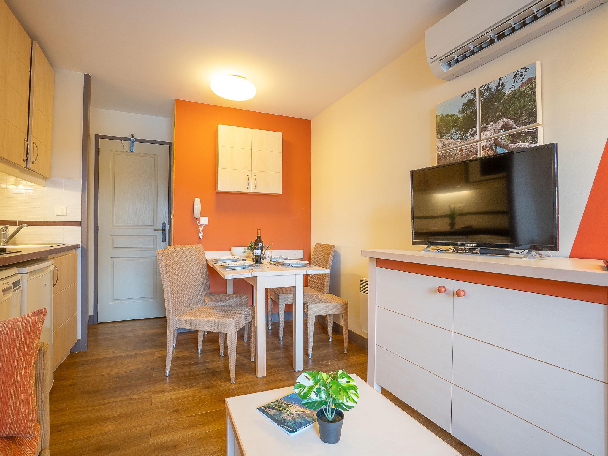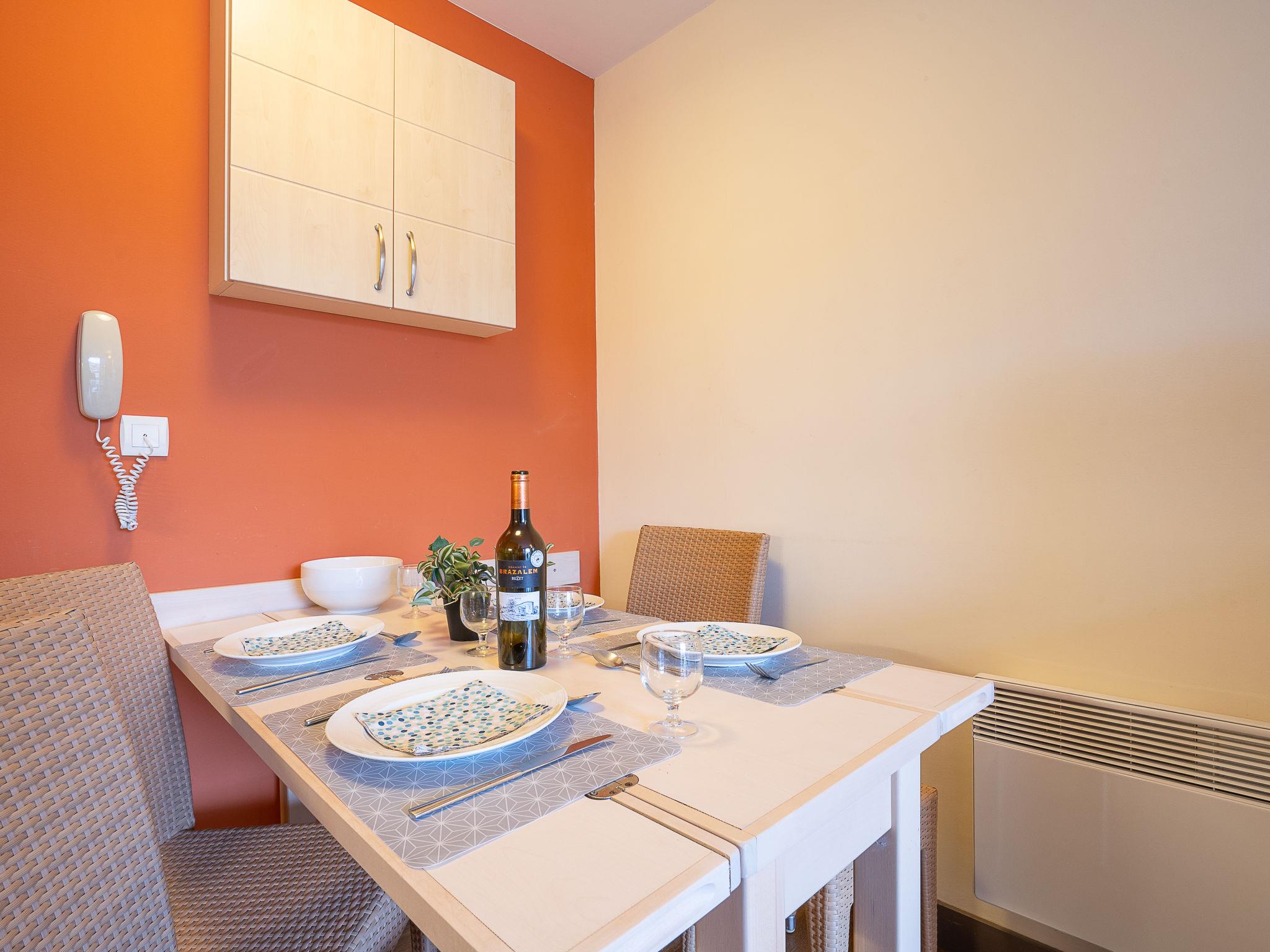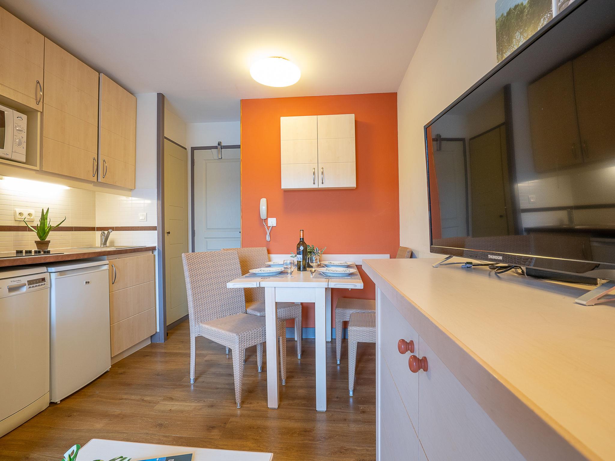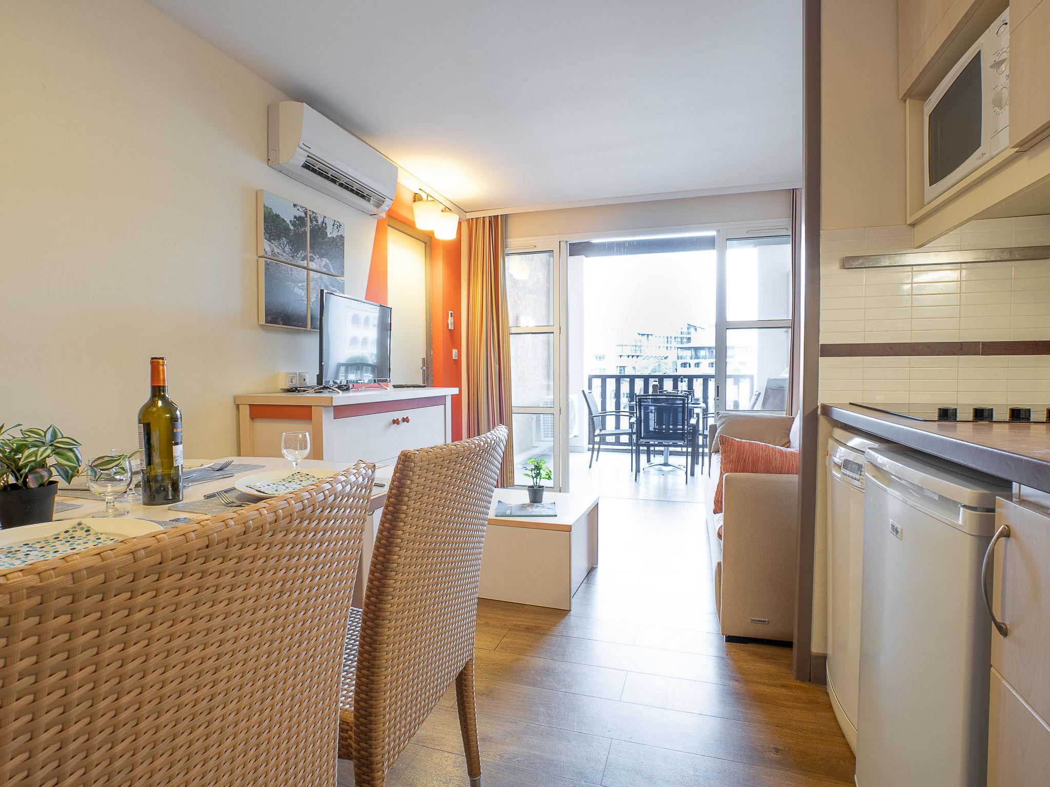"Le Village (B1 419)", 1-room studio 23 m2 on 2nd floor. Object suitable for 2 adults + 2 children. Living room with 1 sofabed (140 cm, length 190 cm), TV (flat screen), air conditioning. Exit to the terrace. Sleeping alcove with 1 x 2 bunk beds (80 cm, length 190 cm). Kitchenette (4 hot plates, dishwasher, toaster, kettle, electric coffee machine, combination microwave). Bathroom, sep. WC. Electric heating. Terrace 8 m2. Terrace furniture. Facilities: Internet (WiFi, extra). Parking space n 2333 (roofed, 1 car), height 180 cm. Please note: non-smokers only. Maximum 1 small pet/ dog allowed. Smoke alarm. Instead of an enclosed bedroom, some sleeping areas are located in an open-plan area (gallery, alcove, etc.). Offer by a private individual according to Art. 155, IV of CGI. 118R03670A